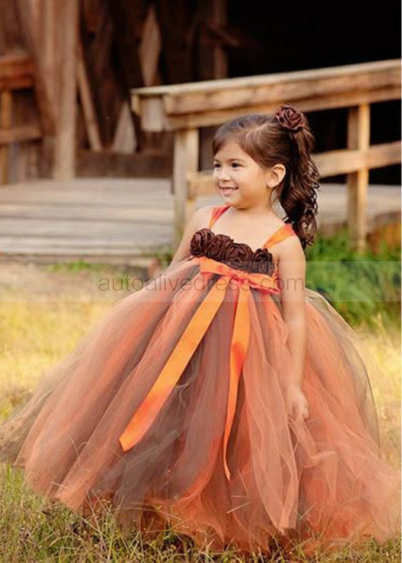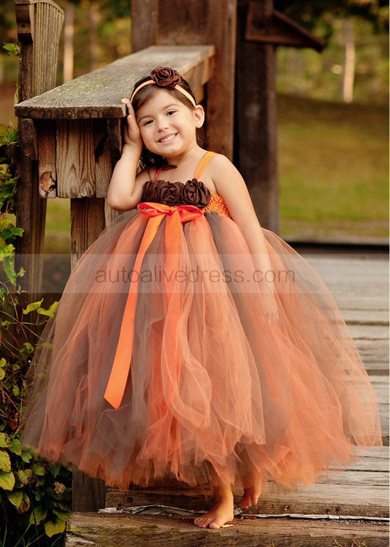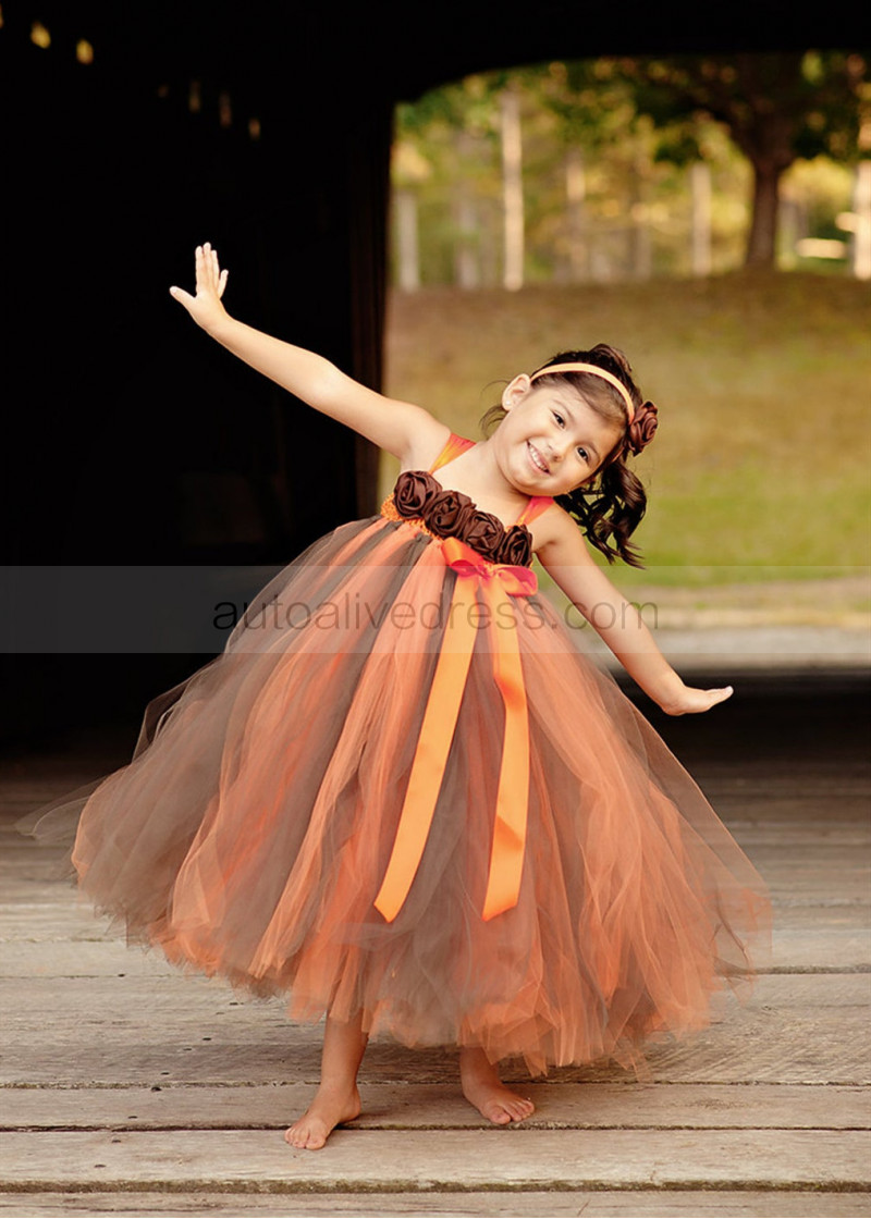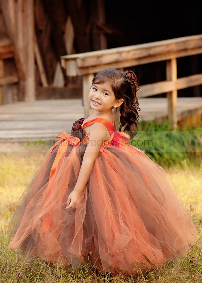 Orange Brown Fall Flower Girl Dress Baby Tutu Dress
