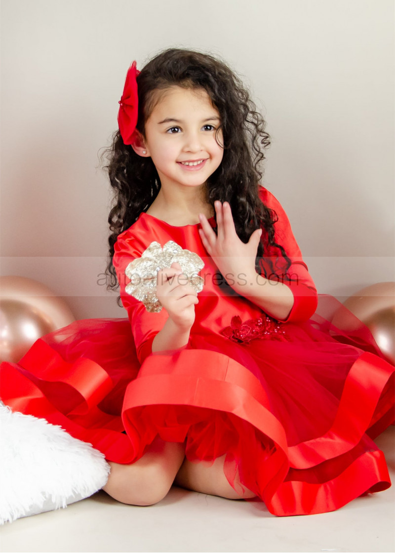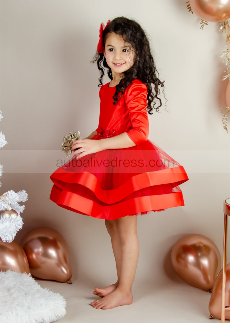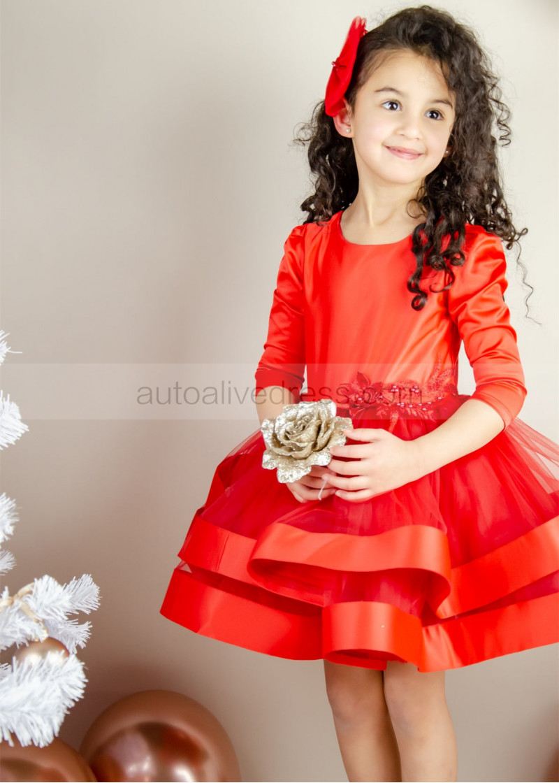 Orange Red Satin Tulle Fashion Flower Girl Dress