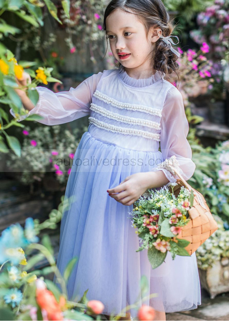 Pearl Embellished Soft Yarn Flower Girl Dress