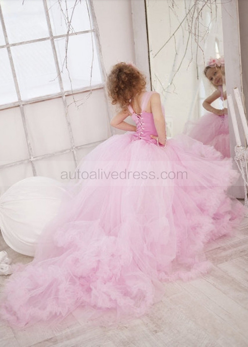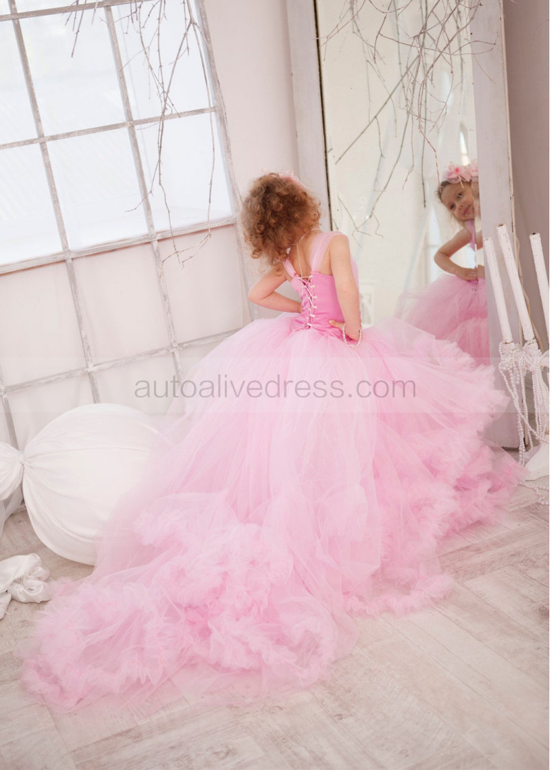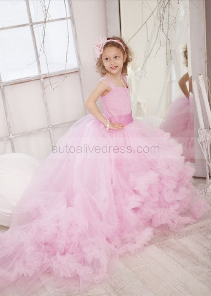 Pink Tulle Pleated Clouds Ruffled Flower Girl Dress