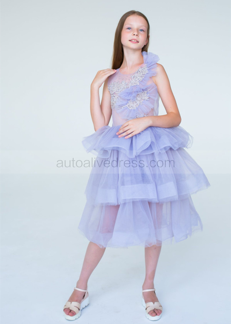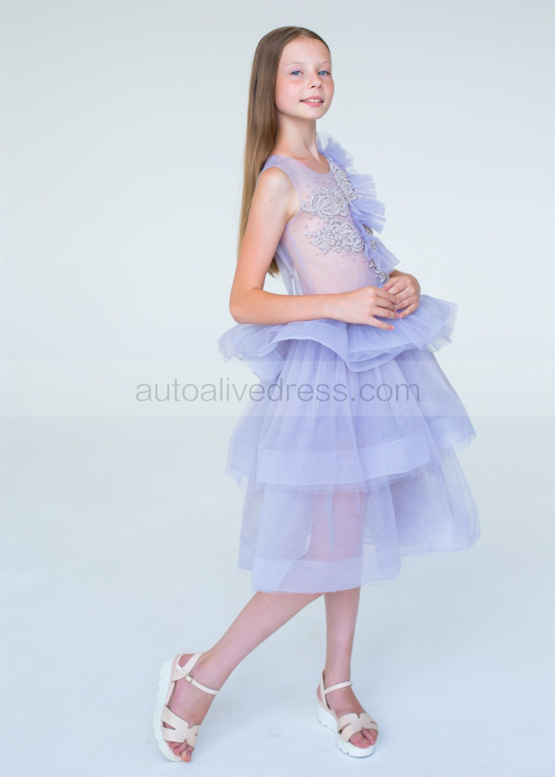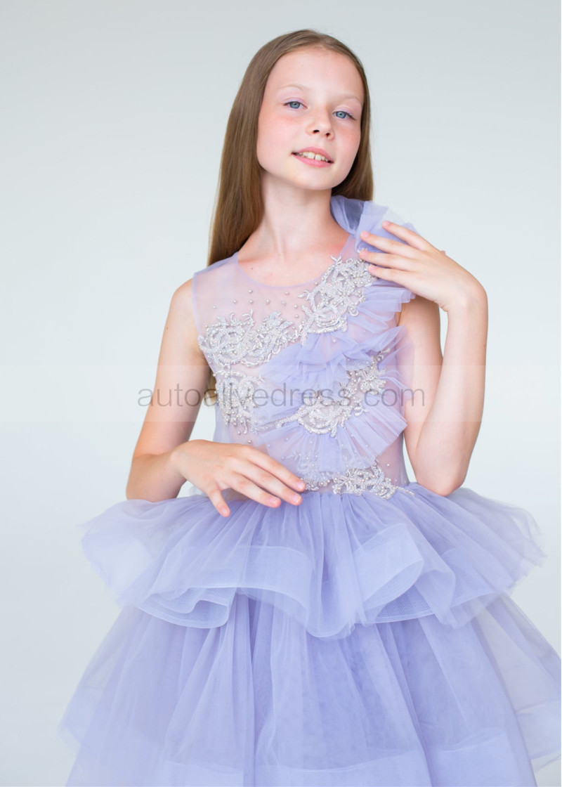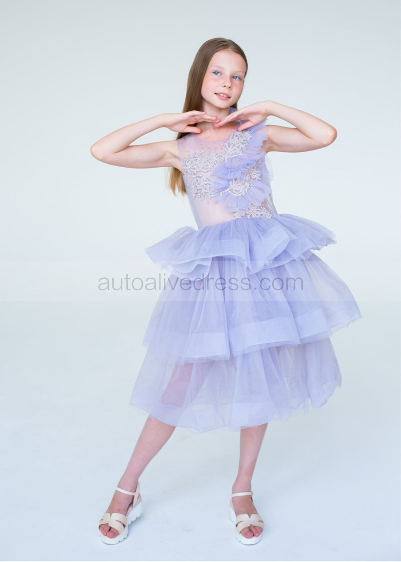 Purple Enchanting Multi-layered Tulle Flower Girl Dress