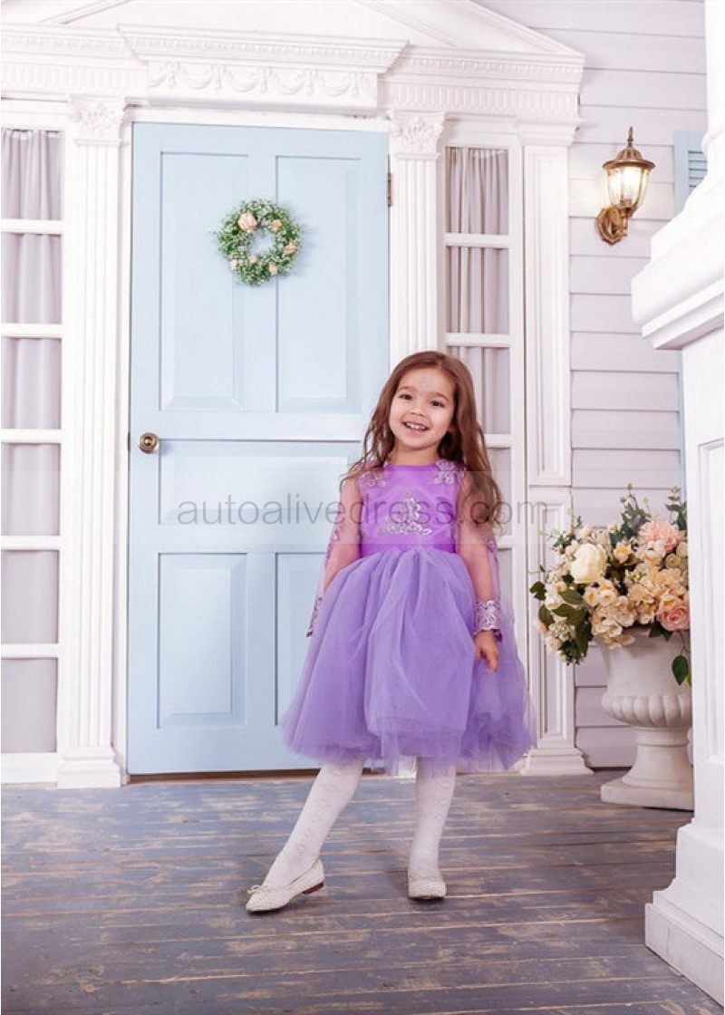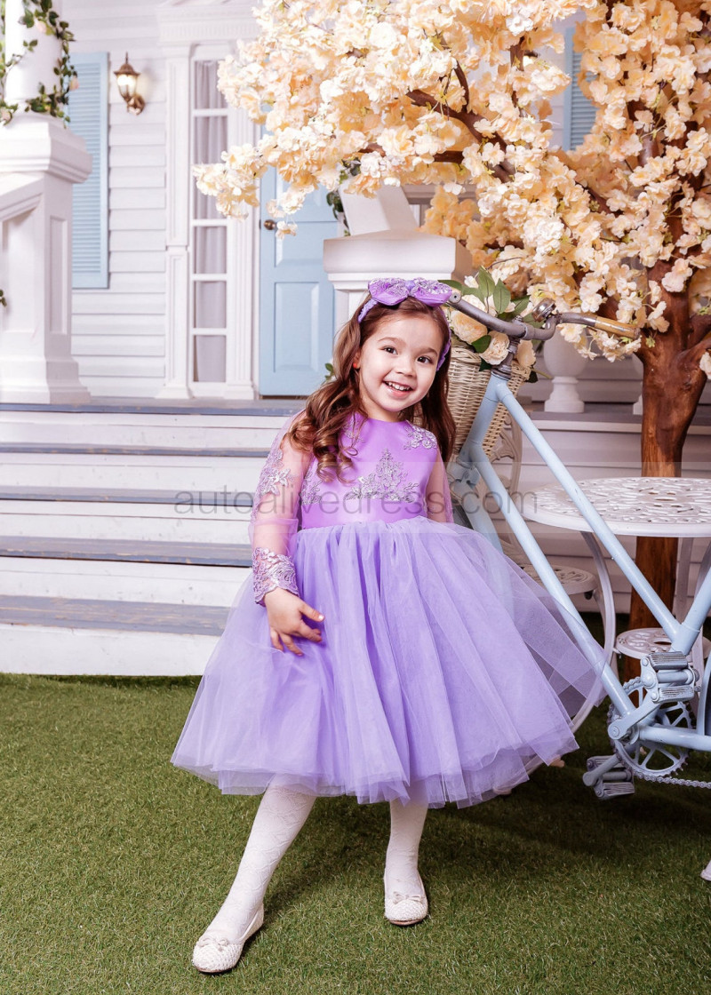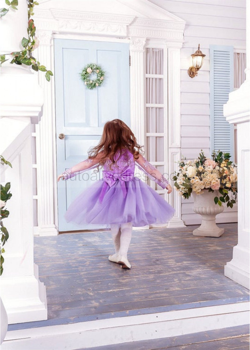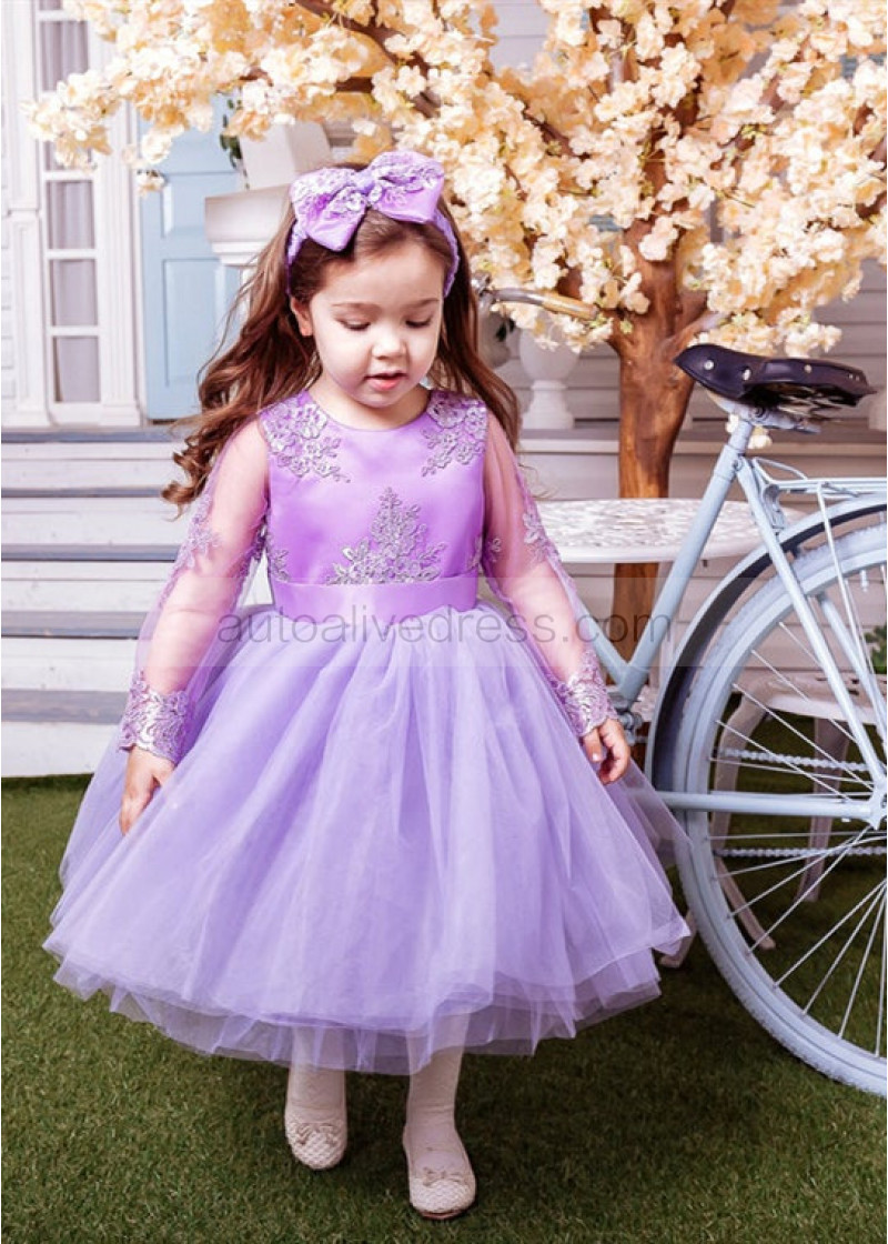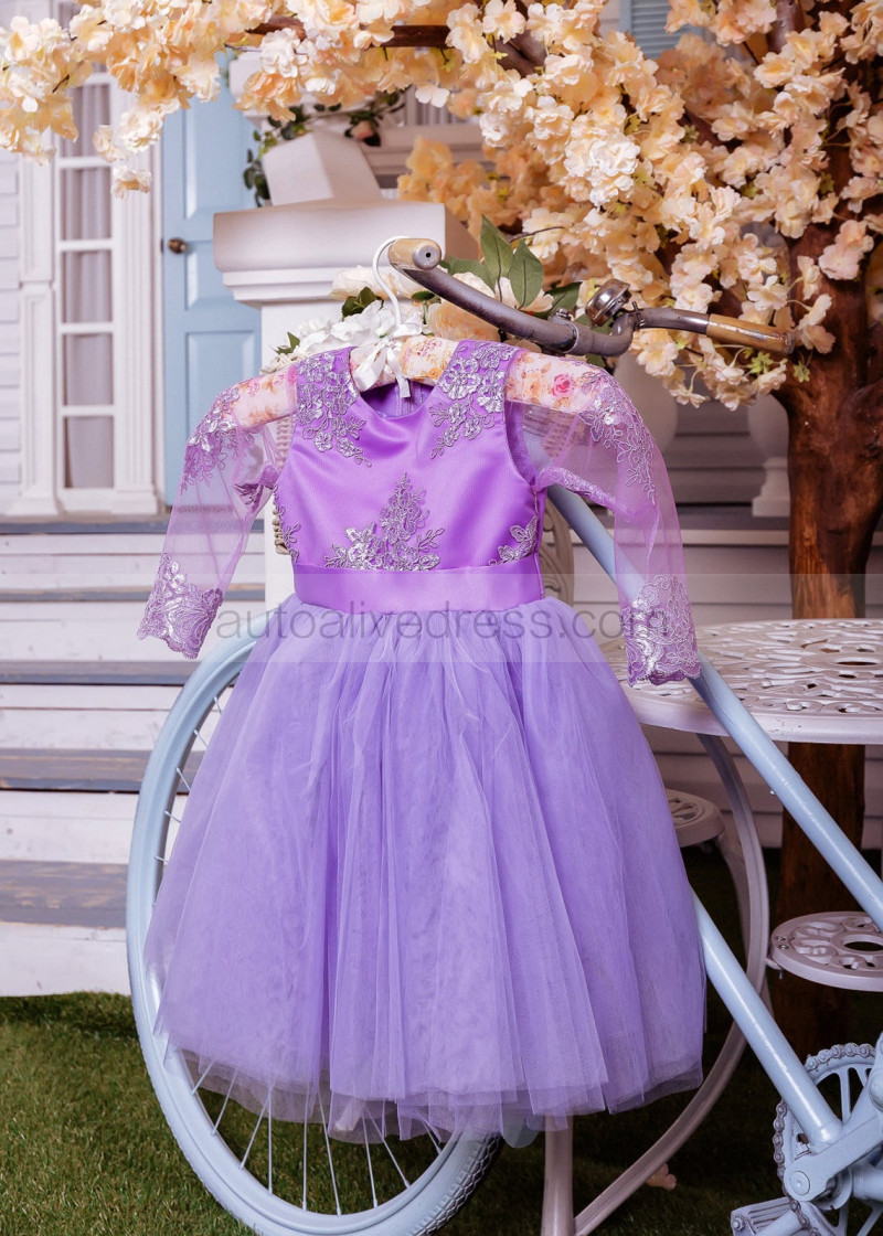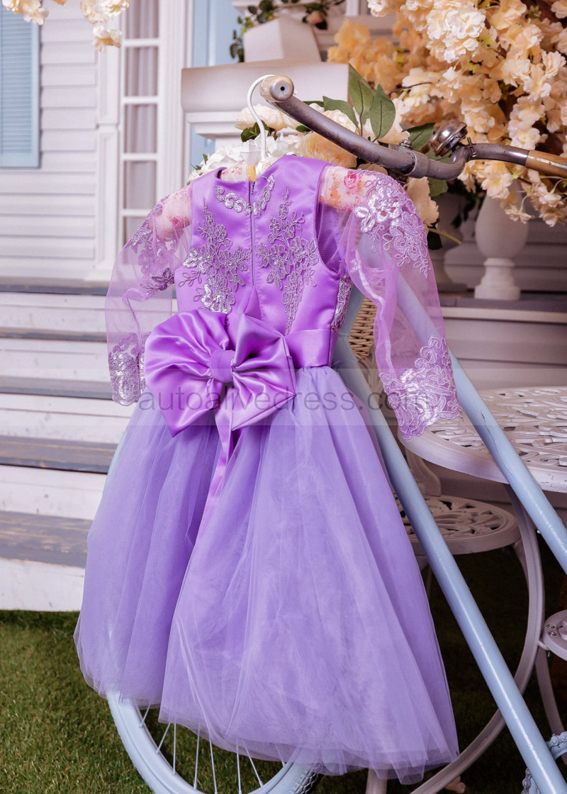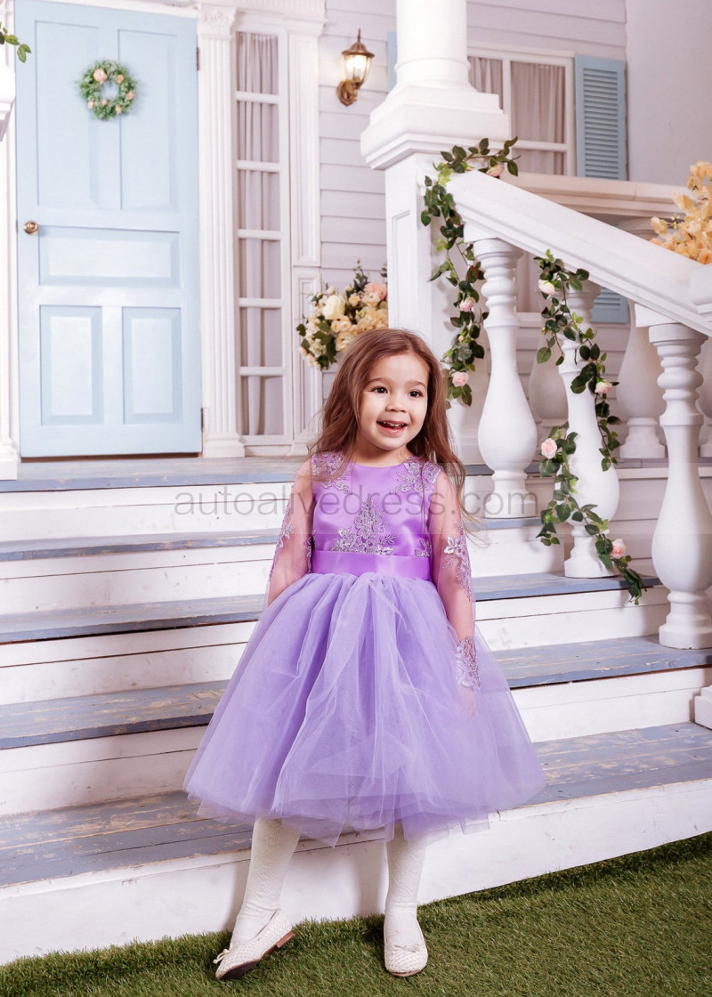 Purple Lace Tulle Flower Girl Dress With Bow Sash
