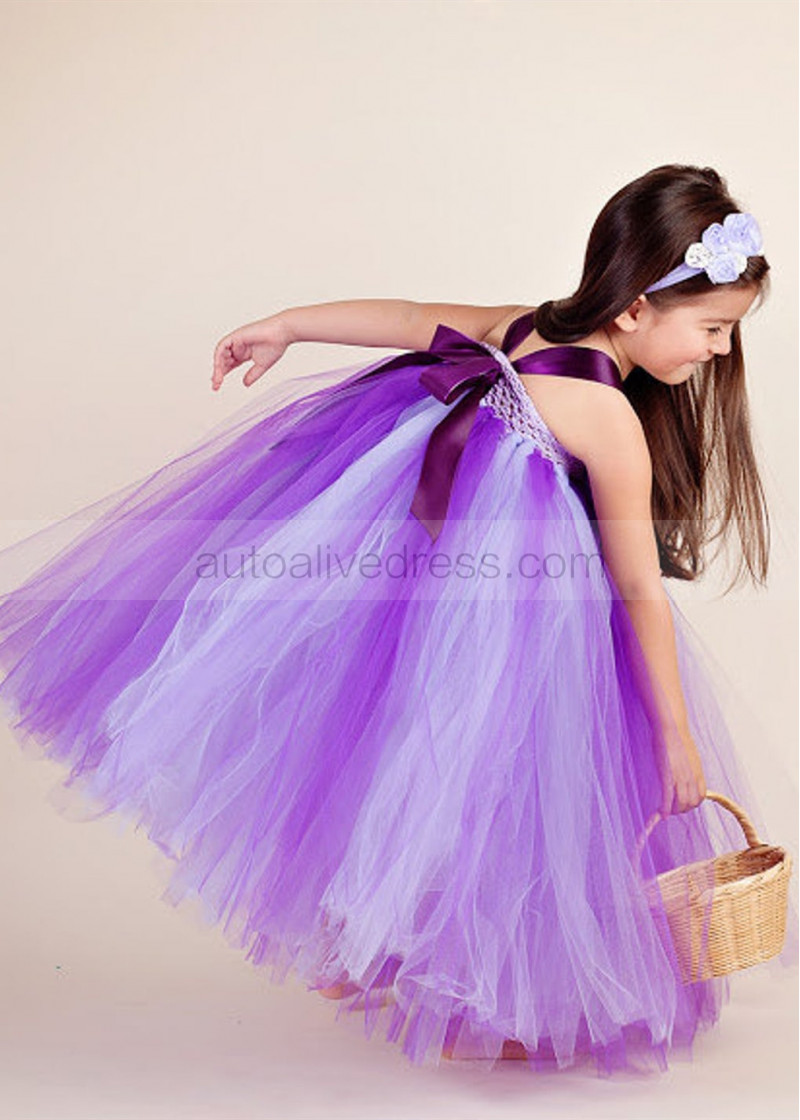 Purple Tulle Flower Girl Dress Birthday Tutu Dress