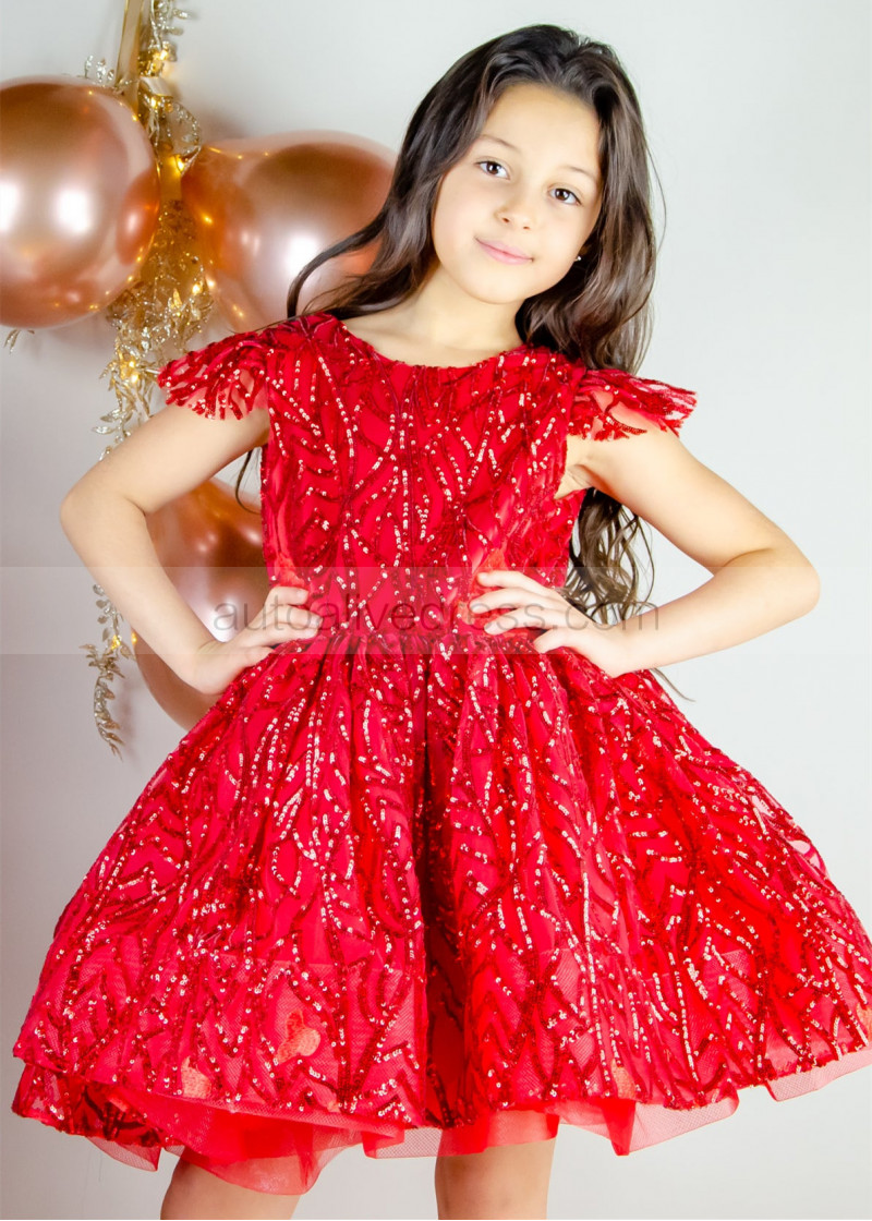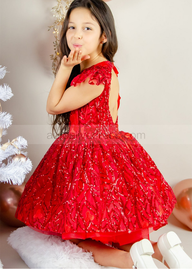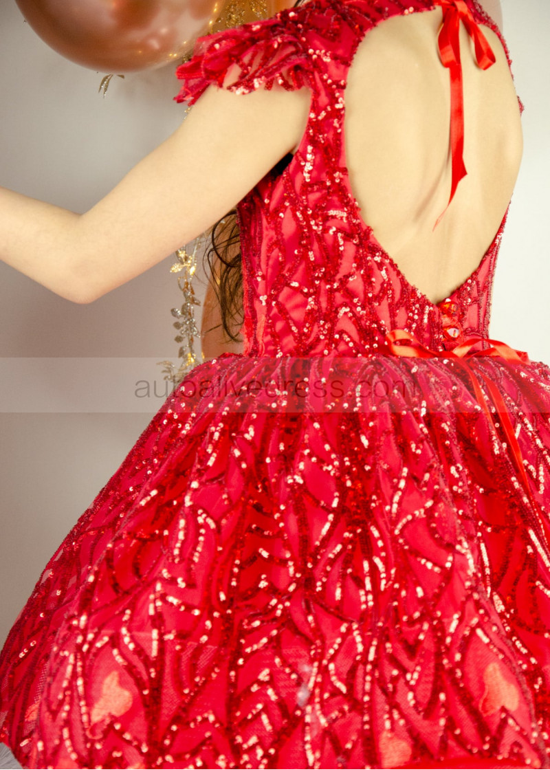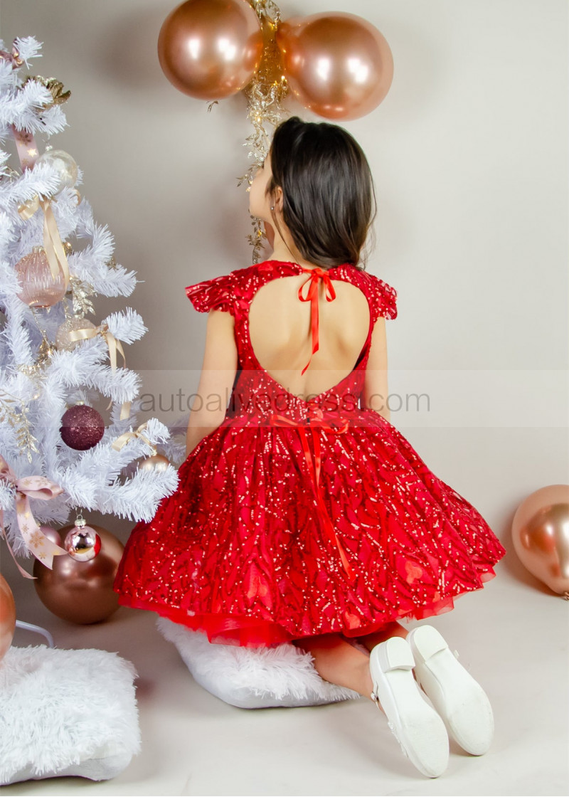 Red Sequins Heart-shaped Back Festival Flower Girl Dress