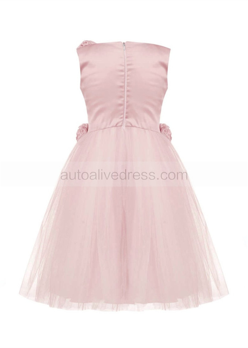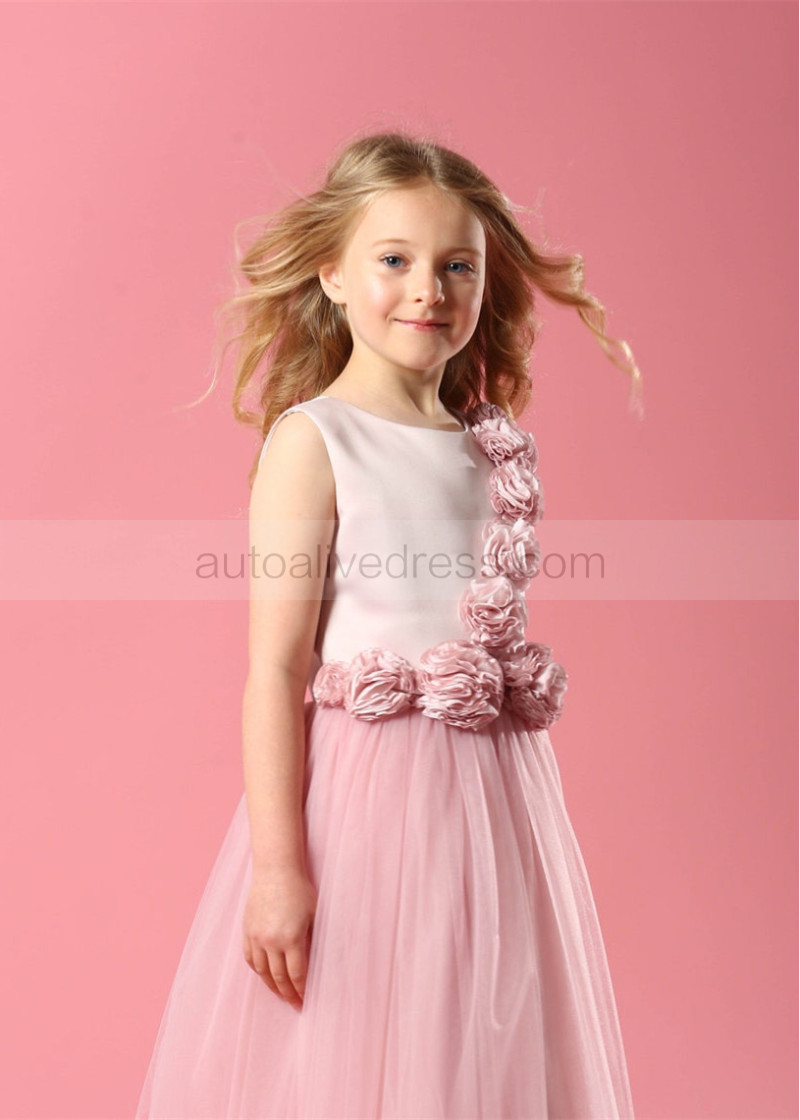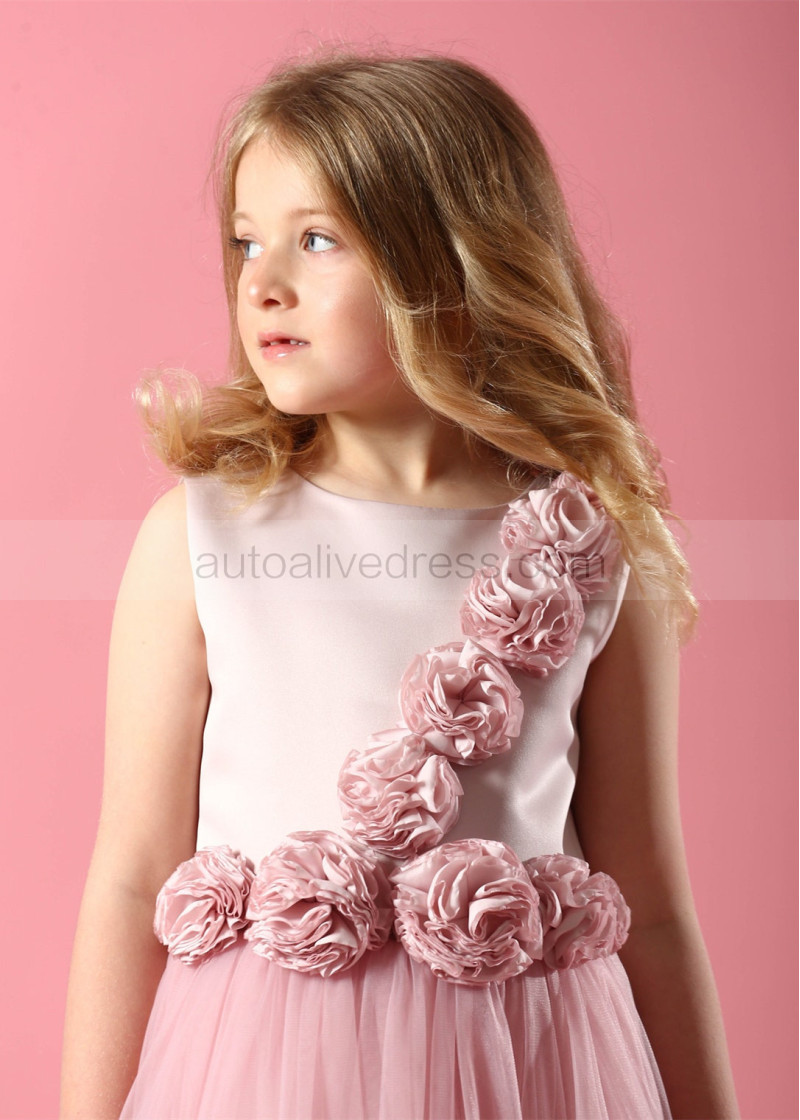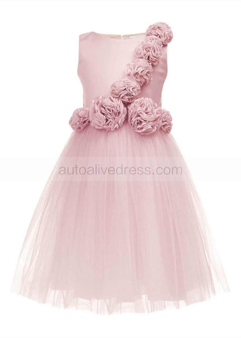 Rose Satin Tulle Flower Girl Dress Birthday Dress