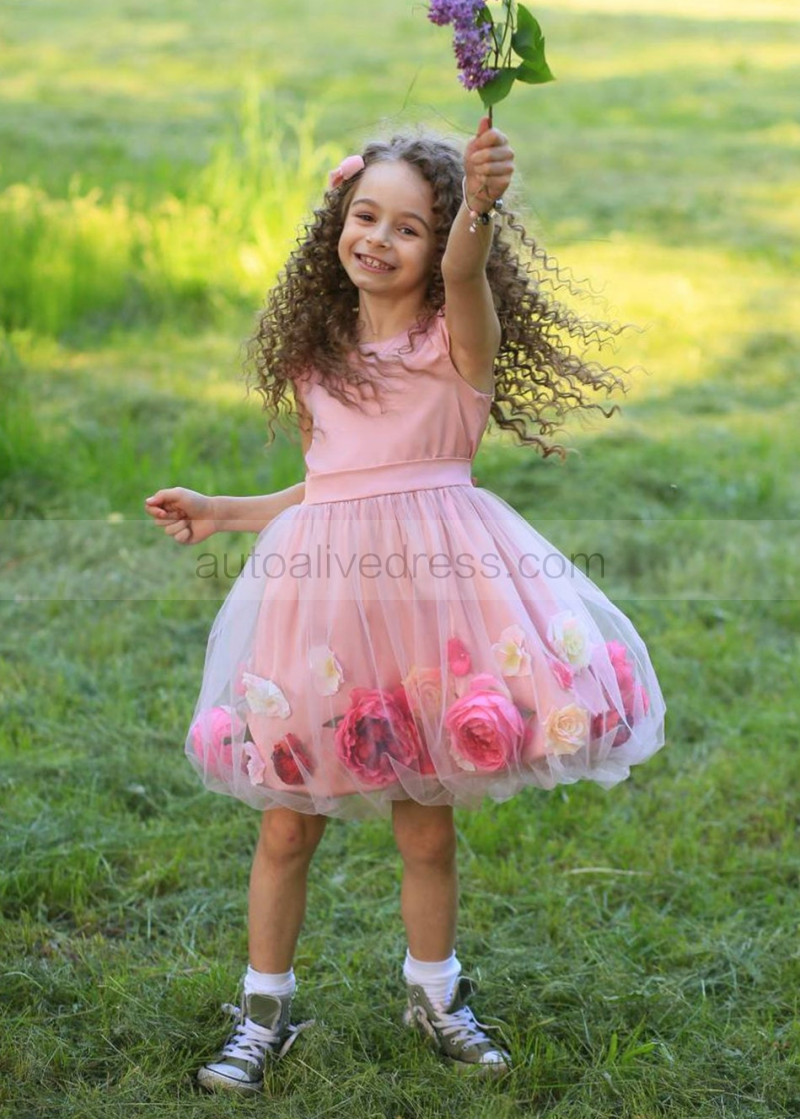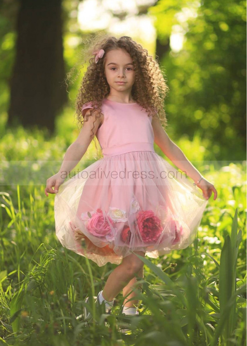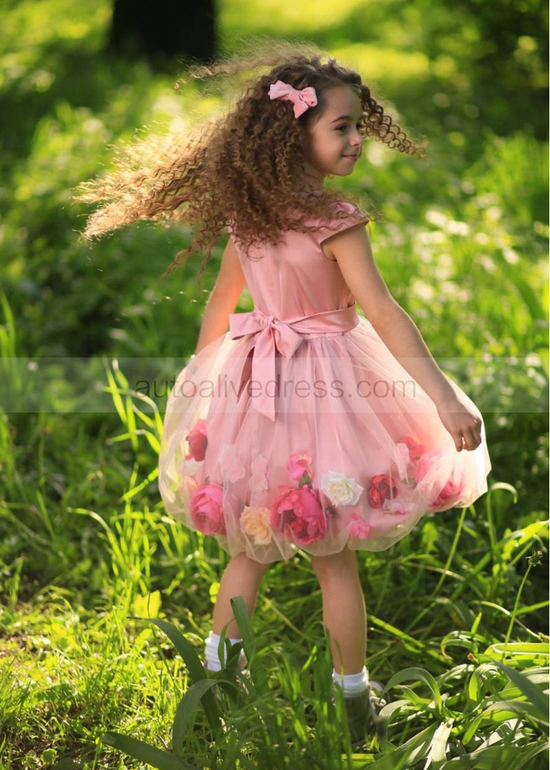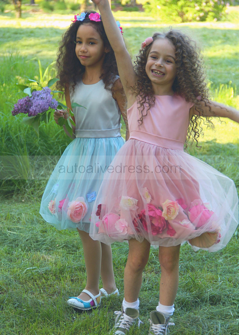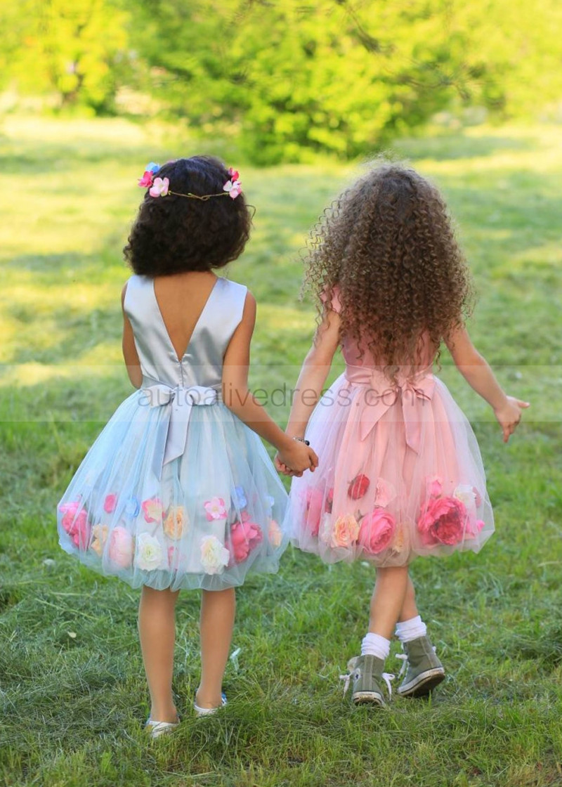 Satin Tulle Flower Girl Dress With Handmade Flowers
