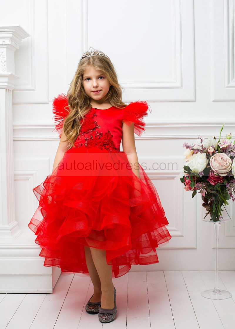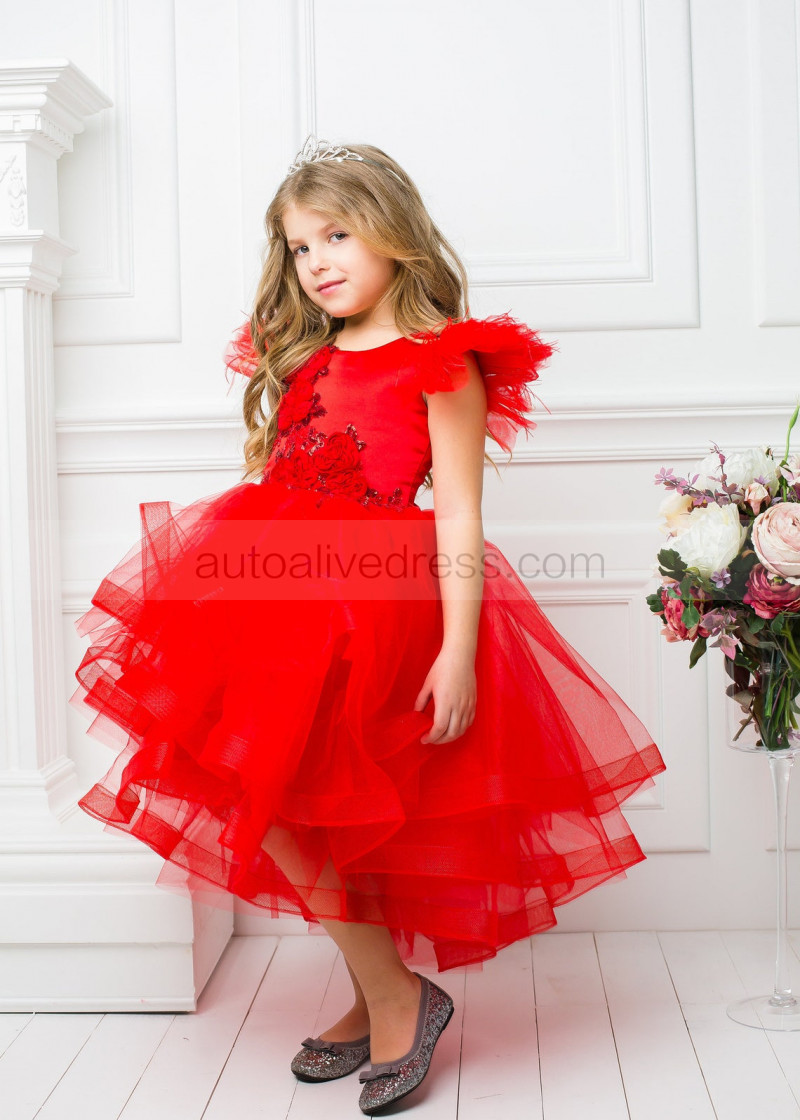 Satin Tulle Tutu High Low Flower Girl Dress
