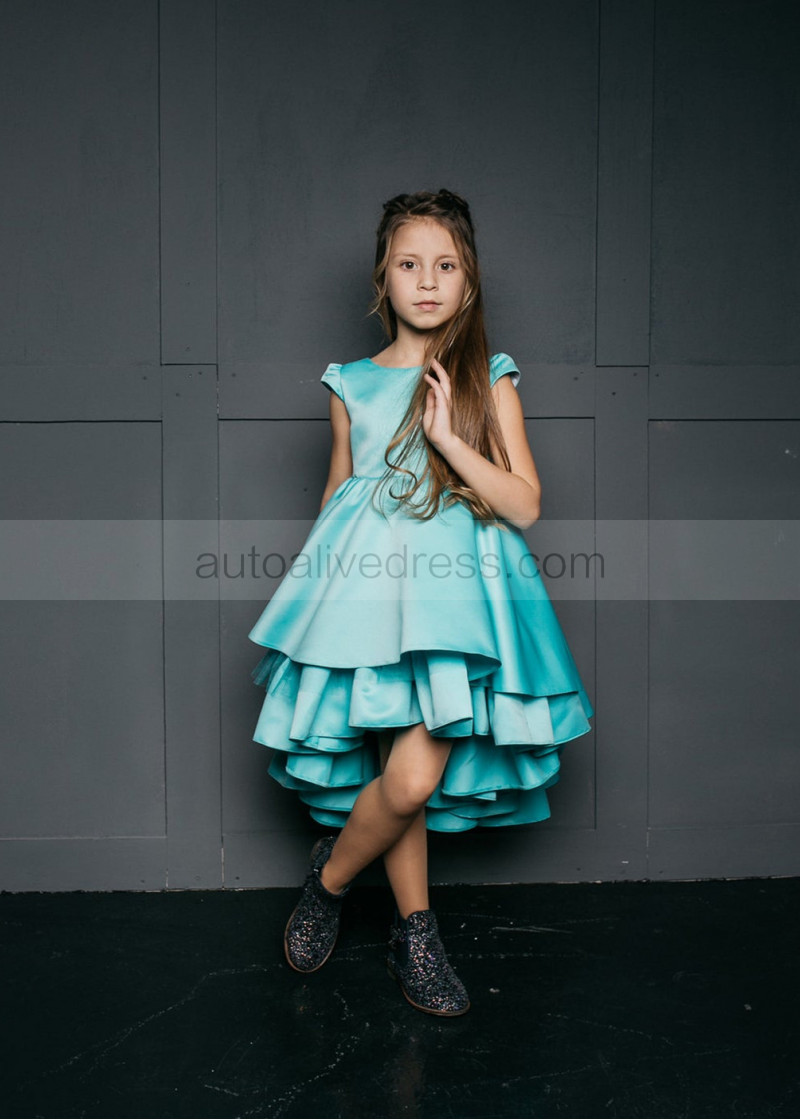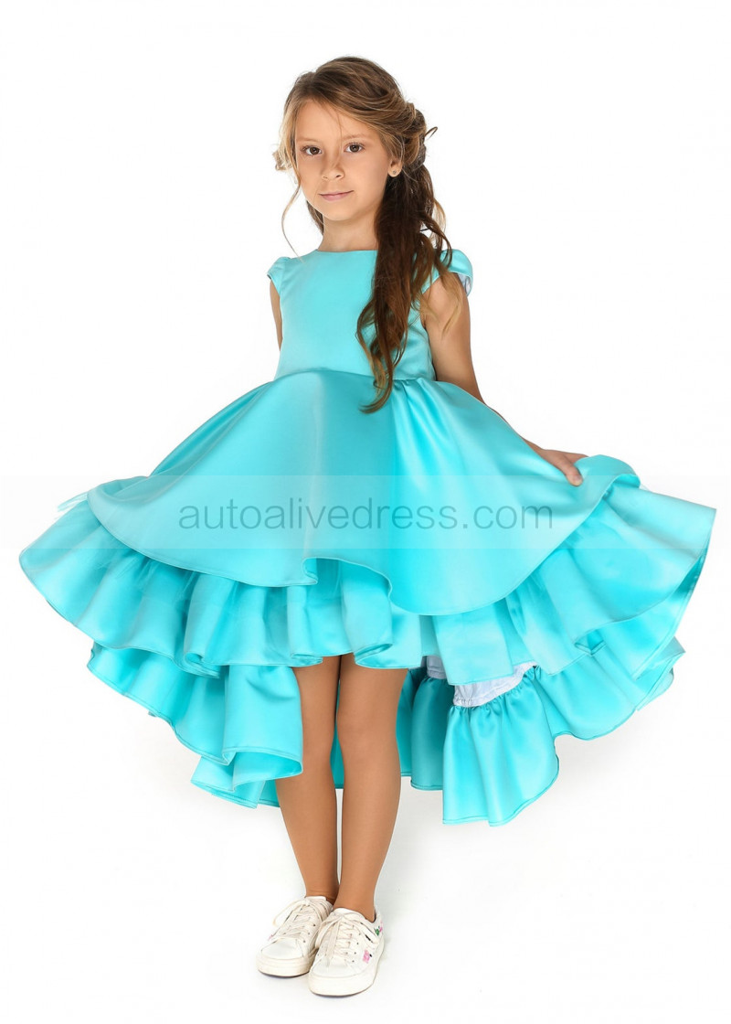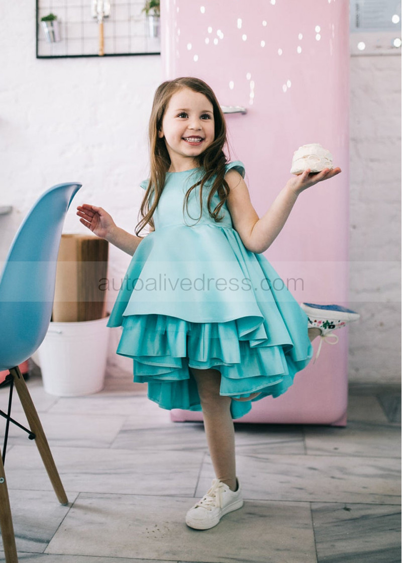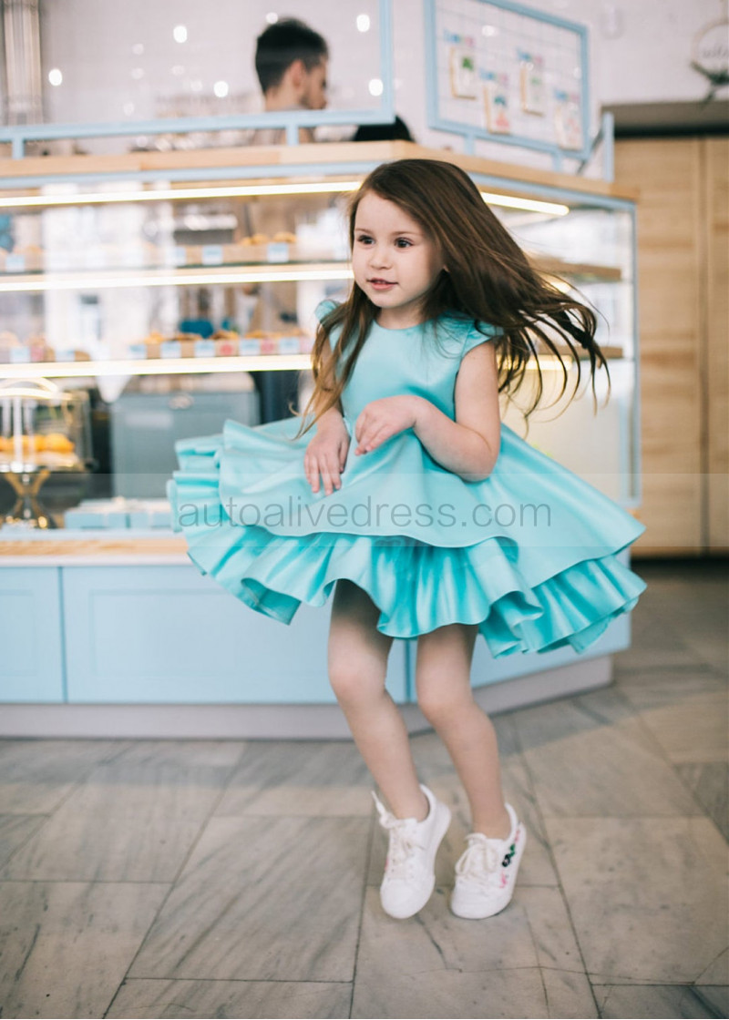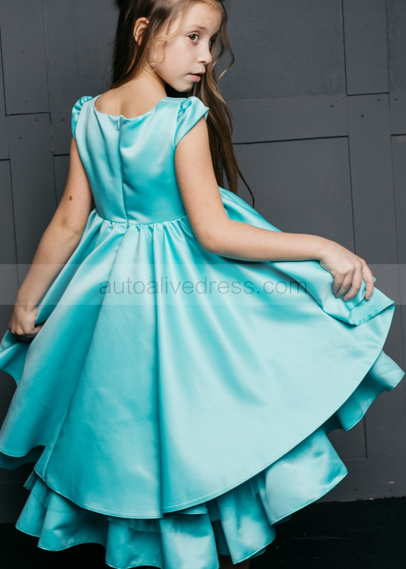 Sea Blue Satin Twirl Flower Girl Dress