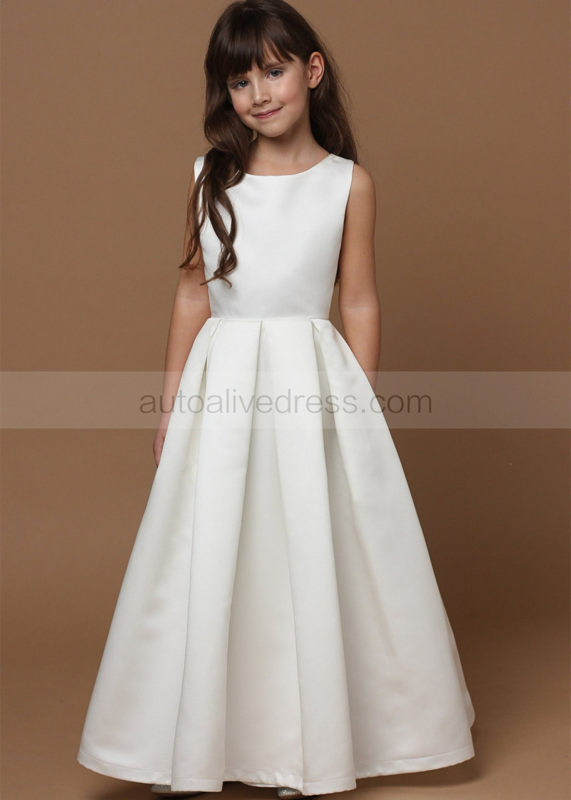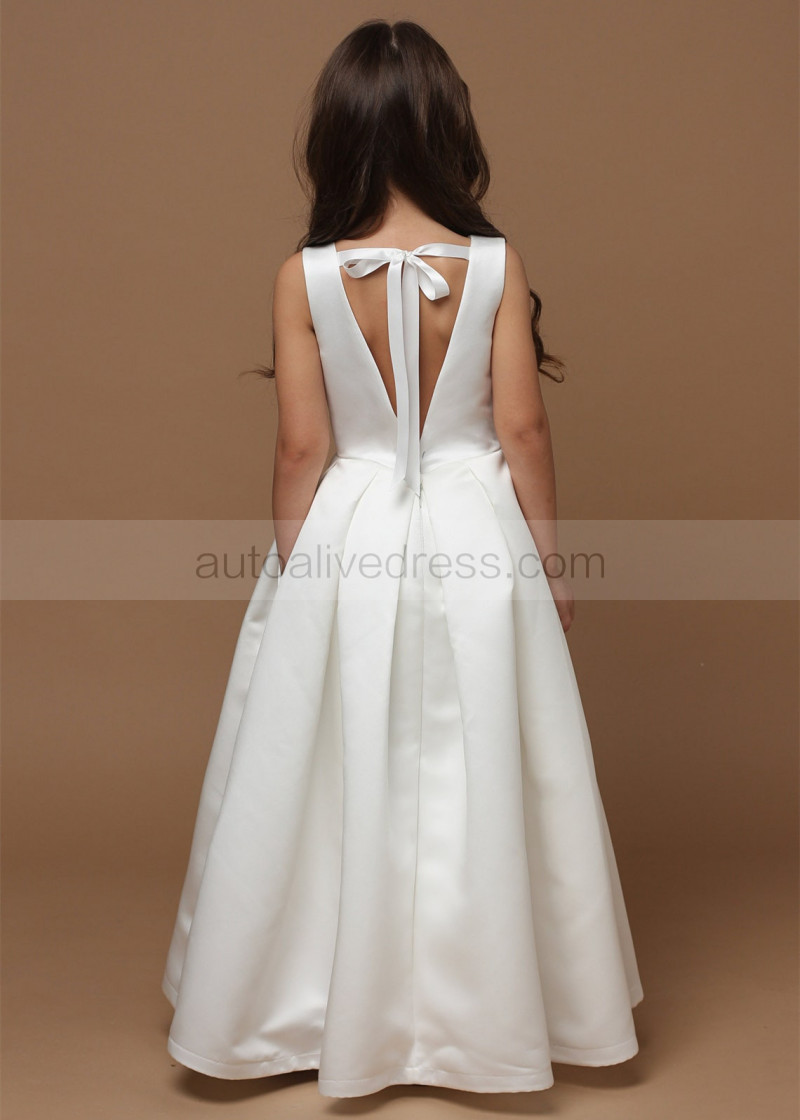 Simple Satin V Back Flower Girl Dress