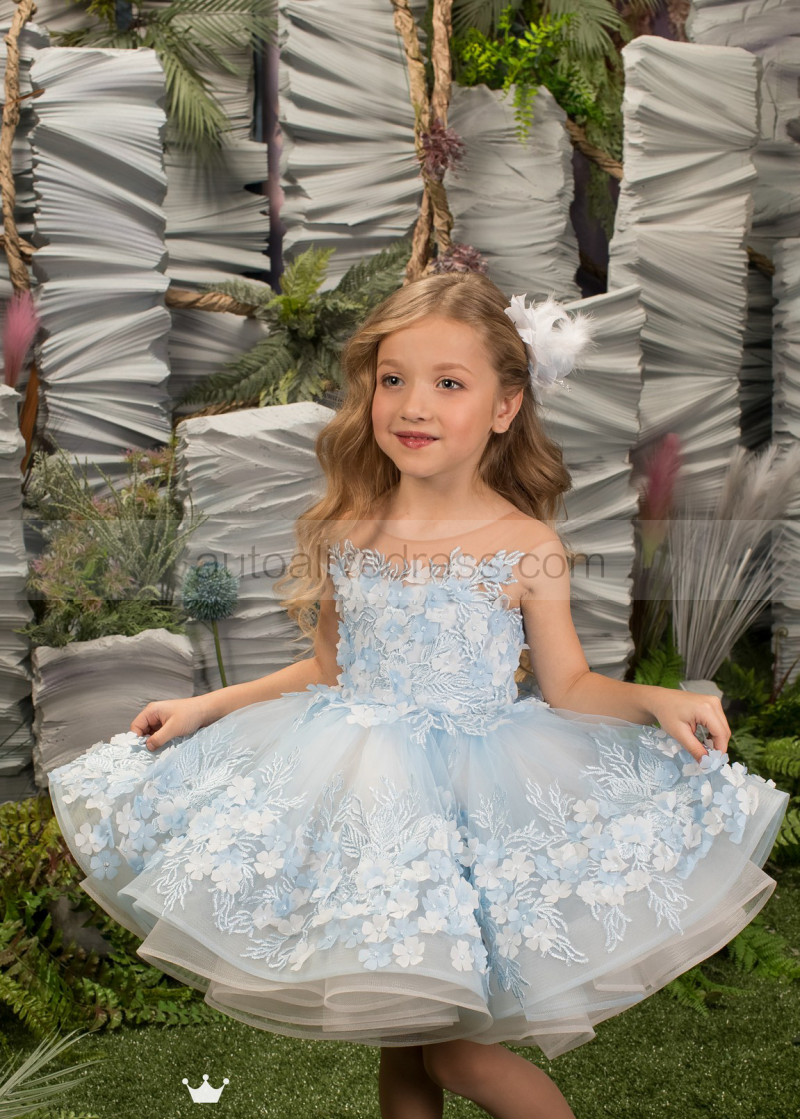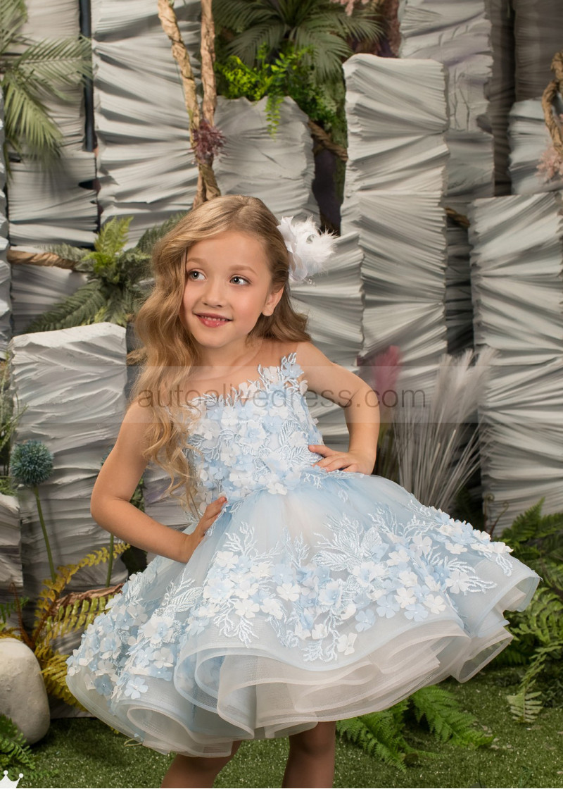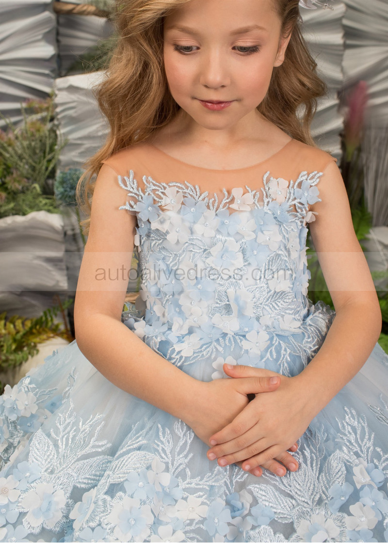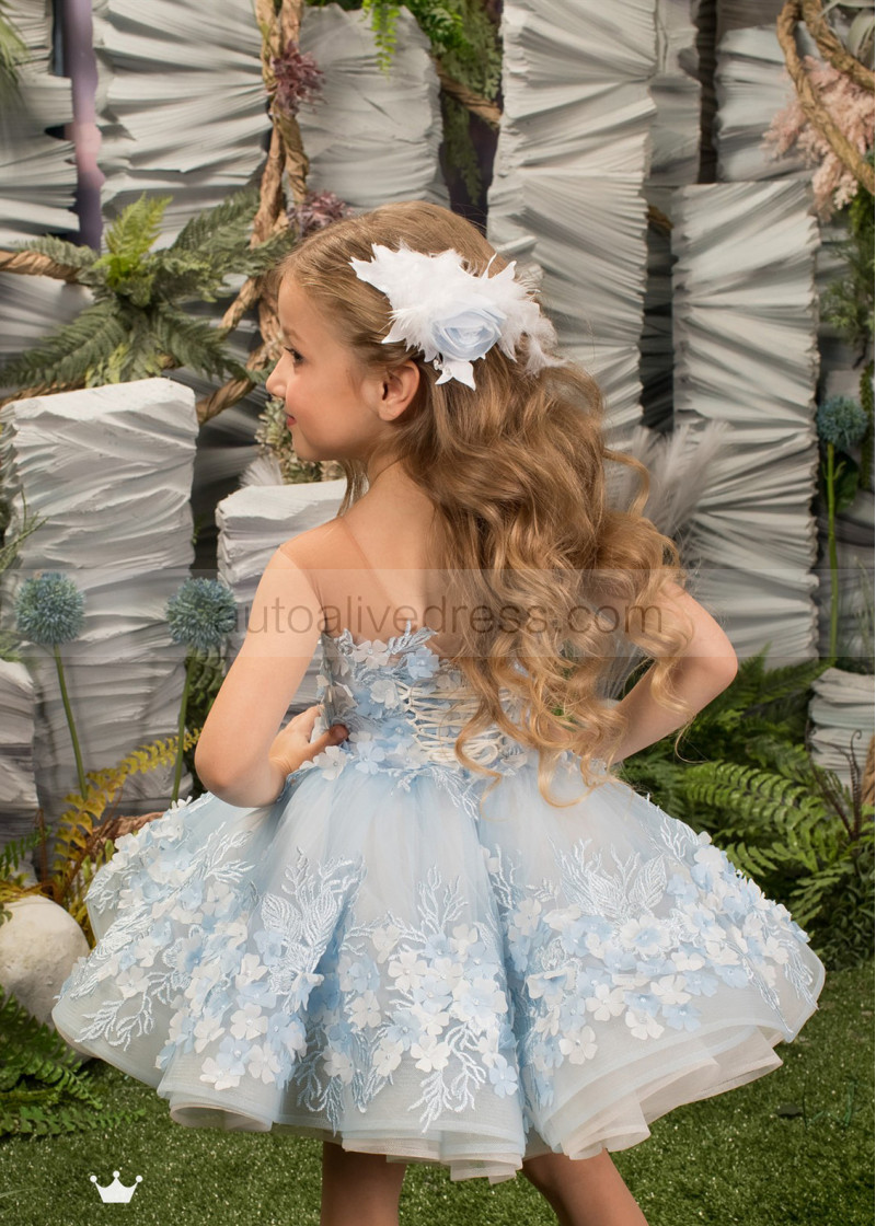 Sky Blue Lace Tulle Knee Length Flower Girl Dress