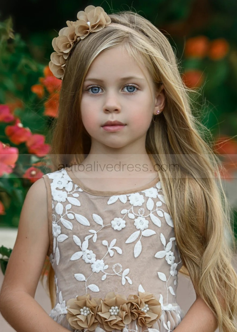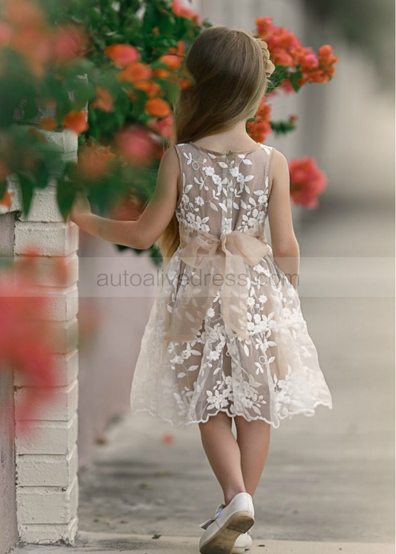White Embroidered Organza Short Rustic Flower Girl Dress