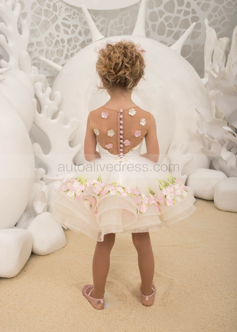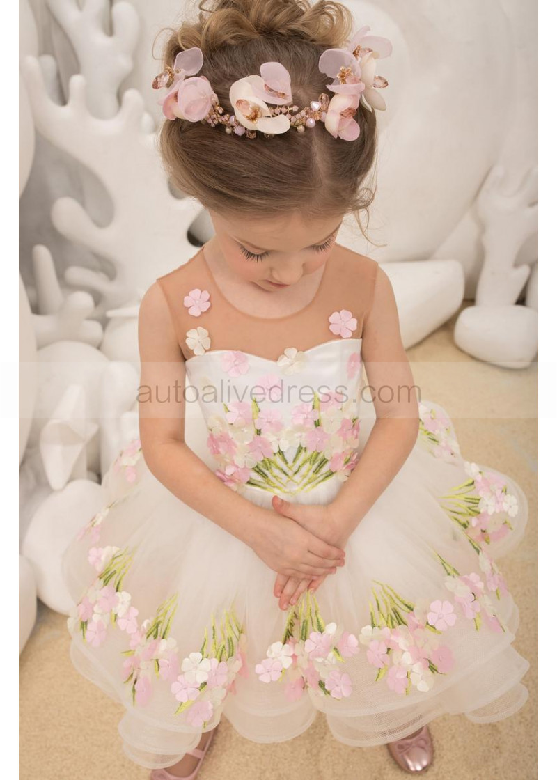 3D Floral Embroidered Tulle Charming Flower Girl Dress