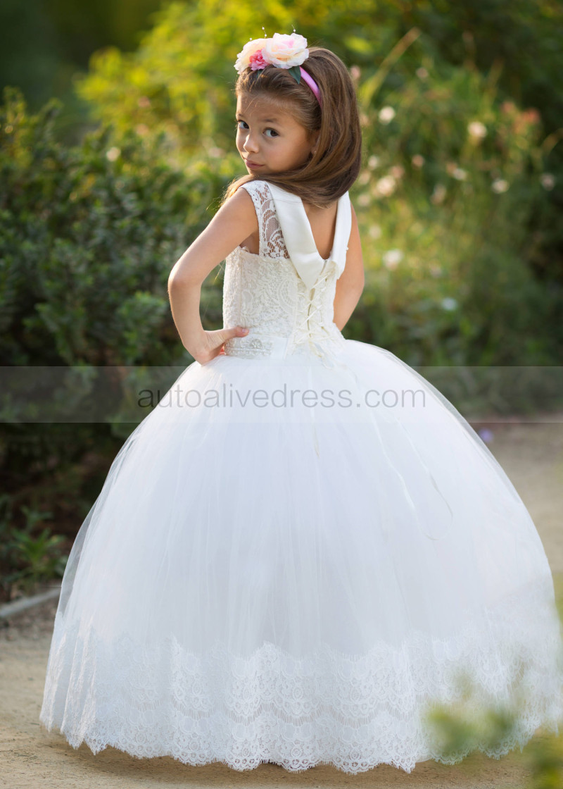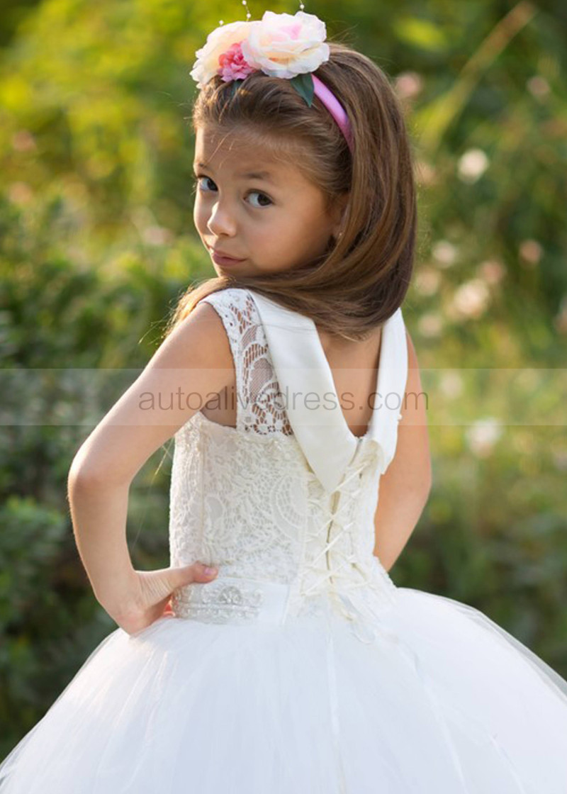 Beaded Ivory Lace Tulle Floor Length Flower Girl Dress