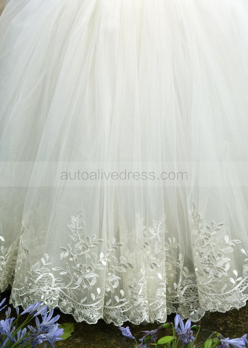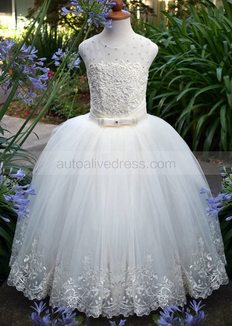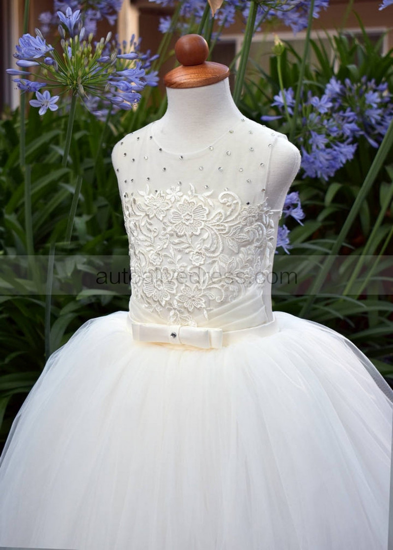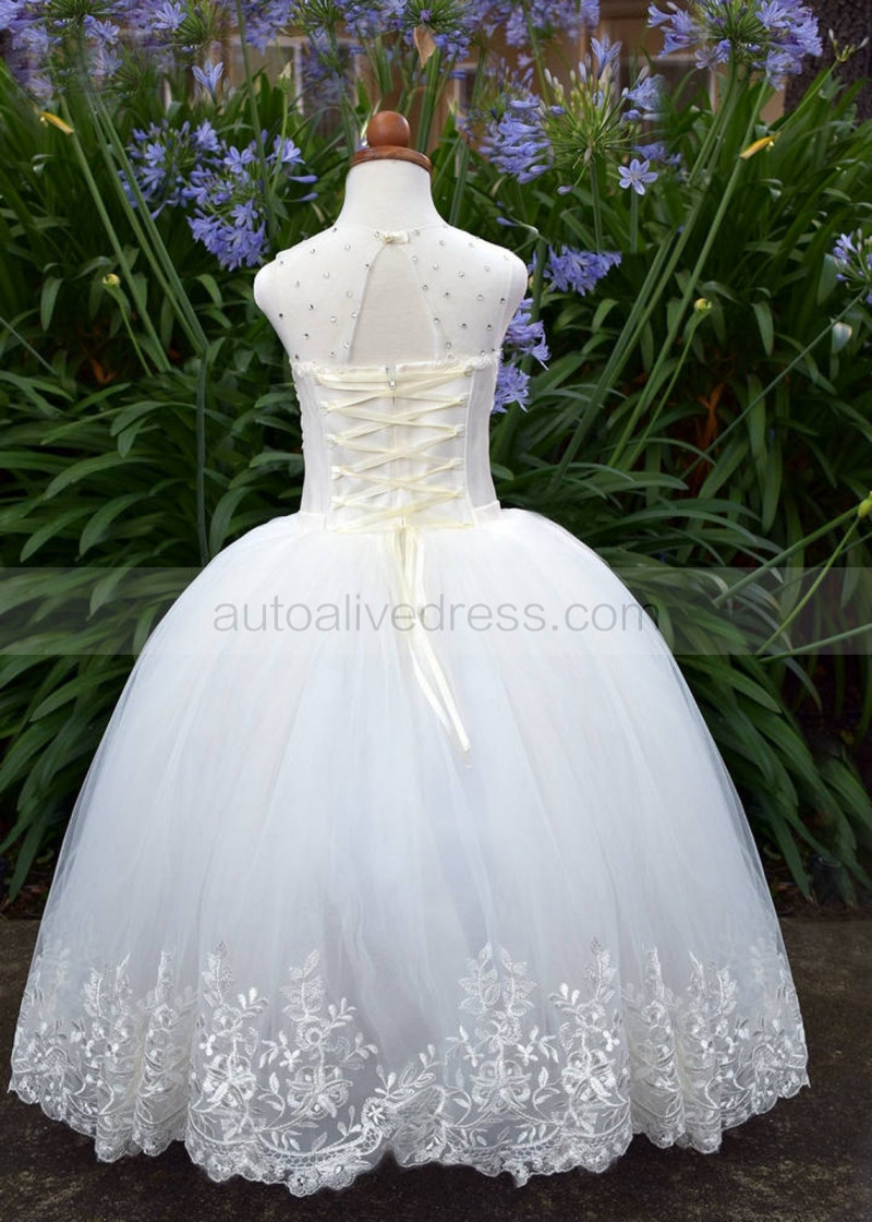 Beaded Ivory Lace Tulle Keyhole Back Flower Girl Dress