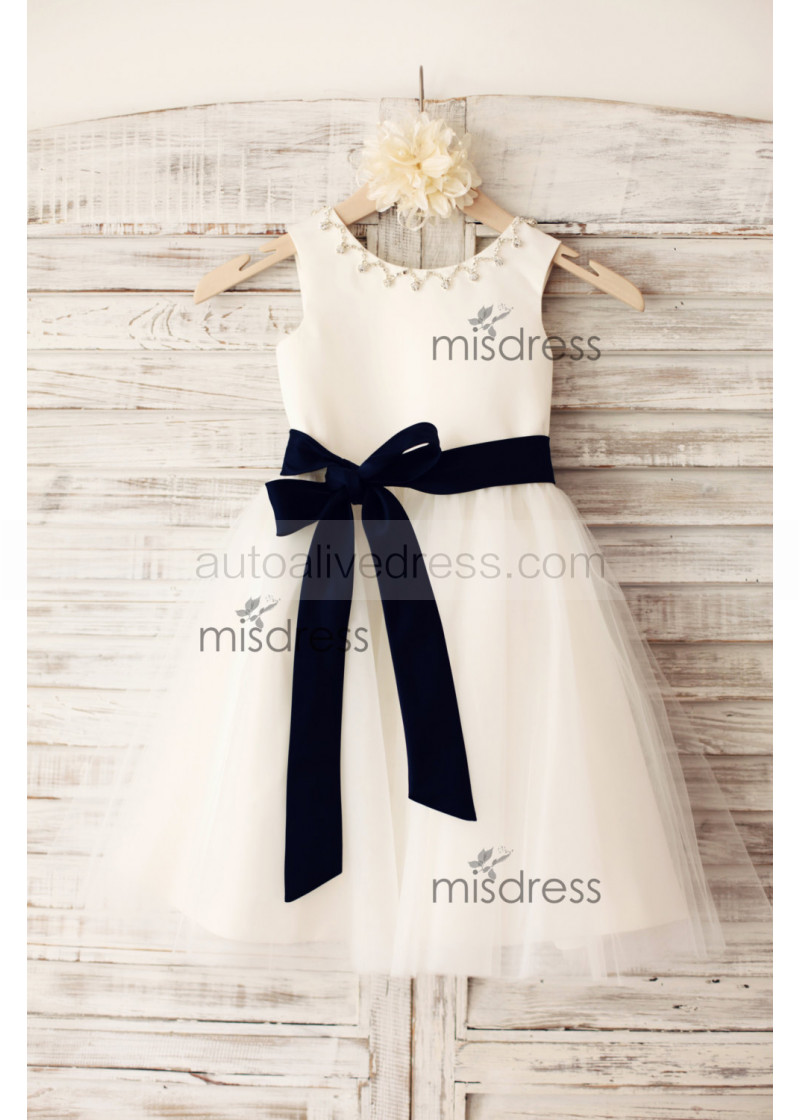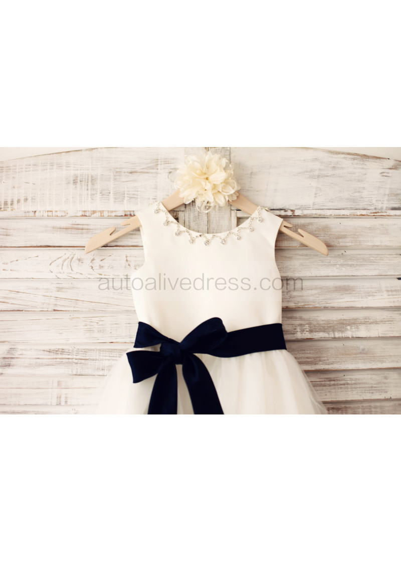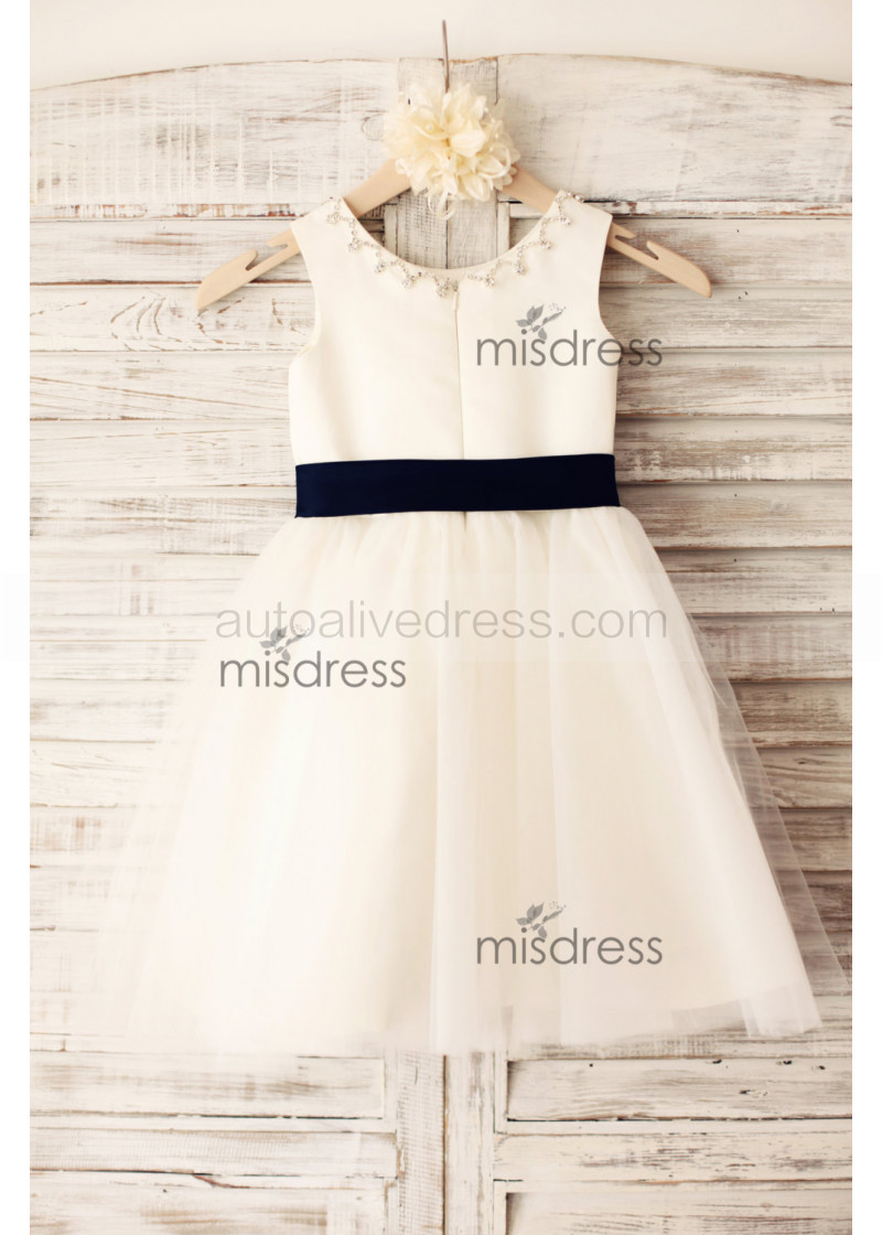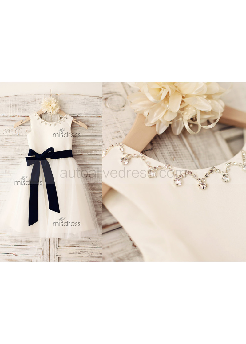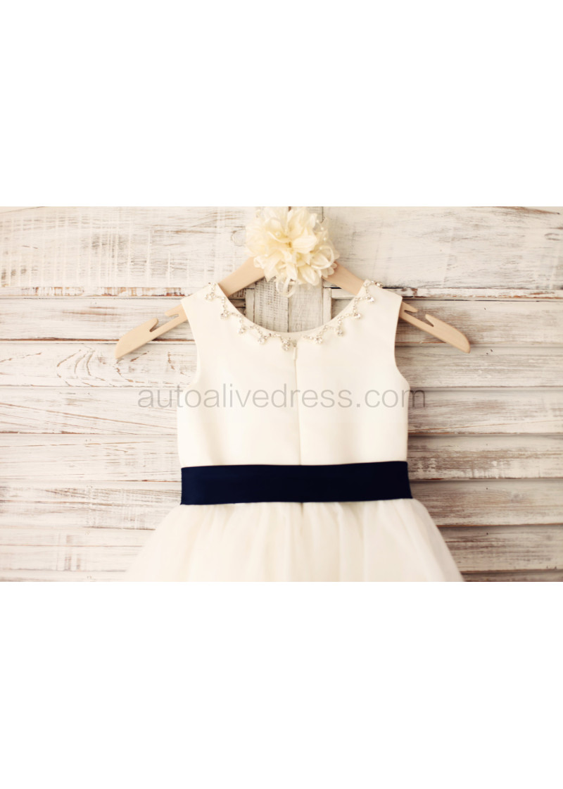Beaded Ivory Satin Tulle Flower Girl Dress