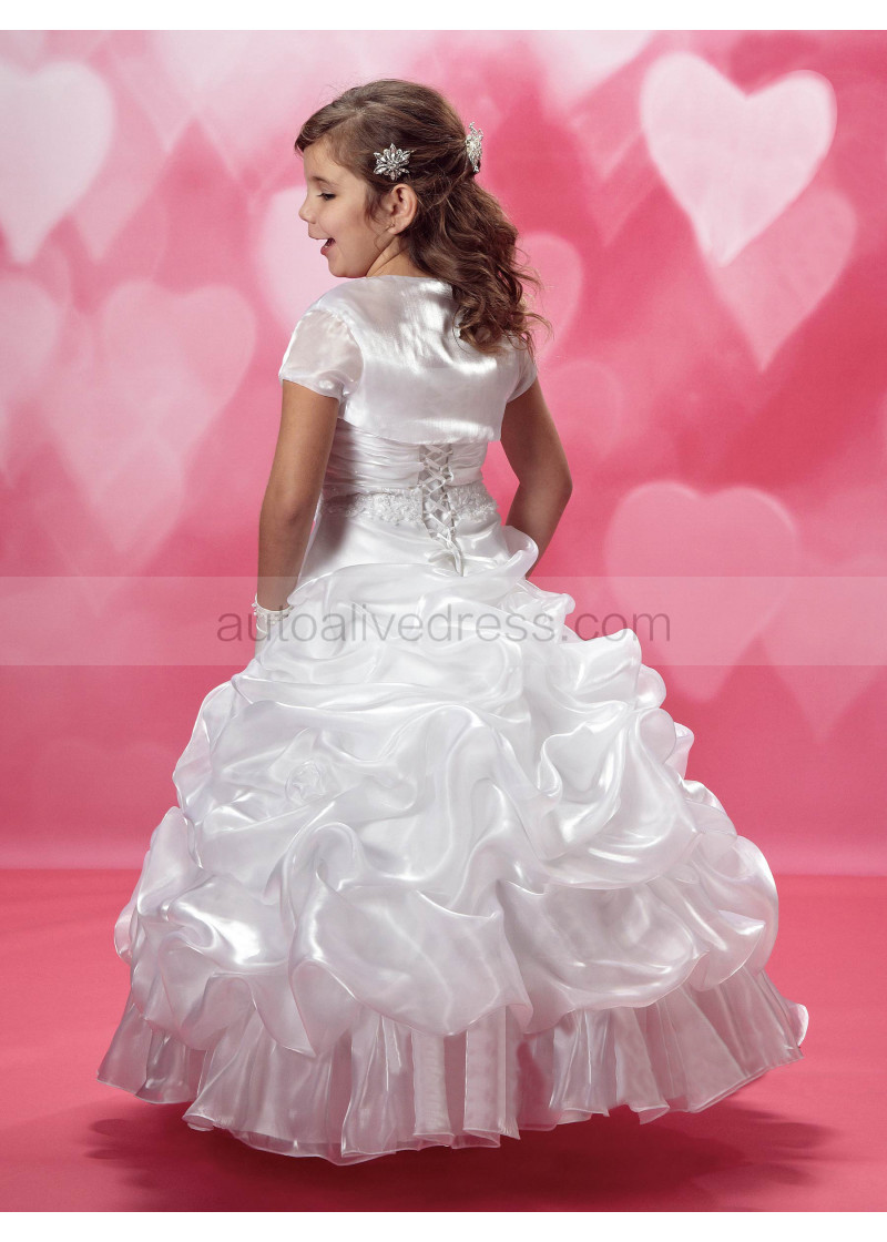 Beaded Luxury Organza Lace Flower Girl Dress With Cape