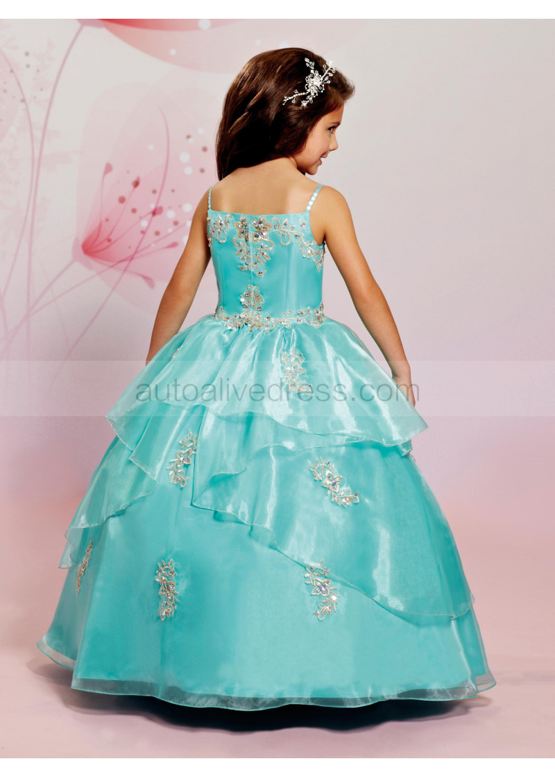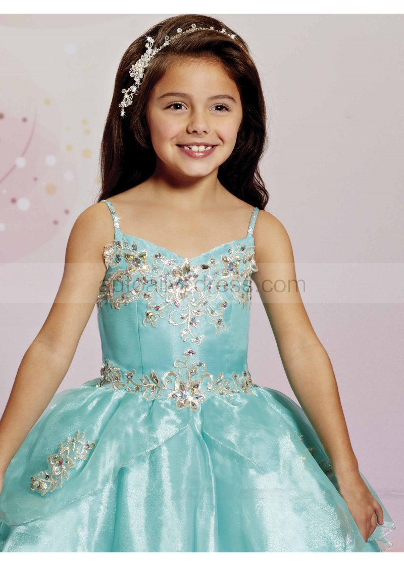 Beaded Organza Embroidery Lace Flower Girl Dress With Cape