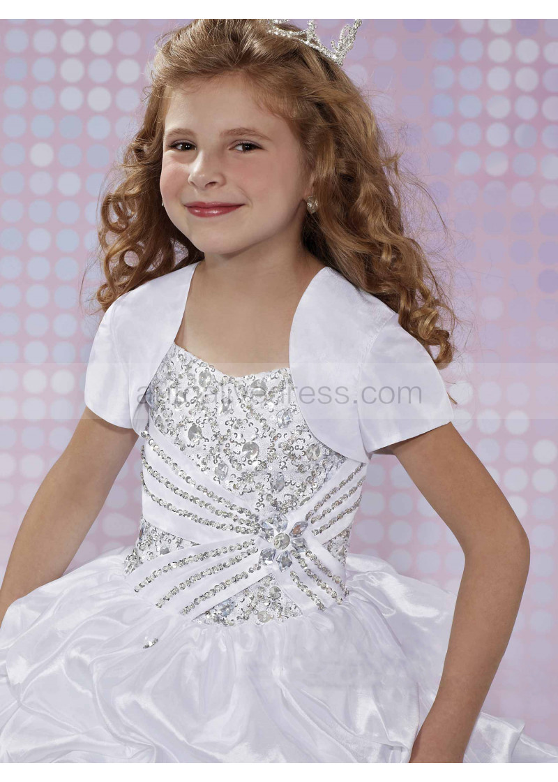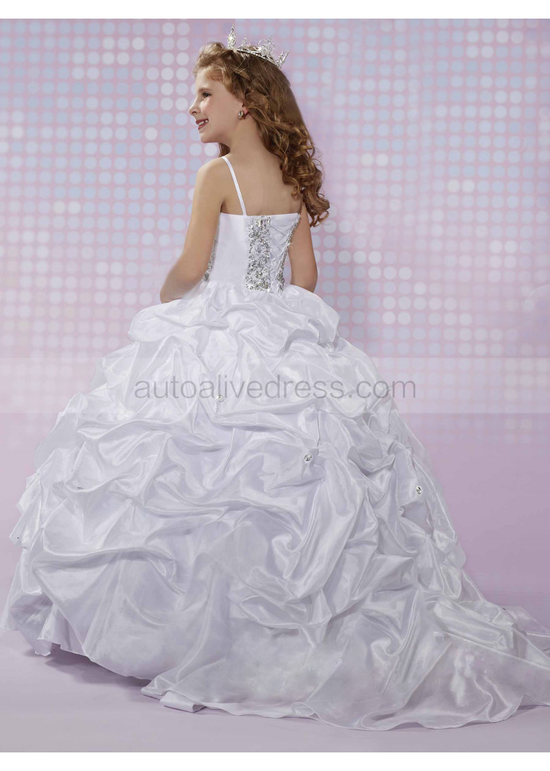 Beaded Organza Pick Ups Skirt Flower Girl Dress With Cape