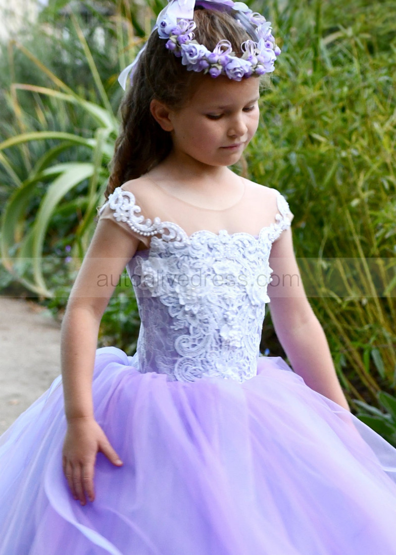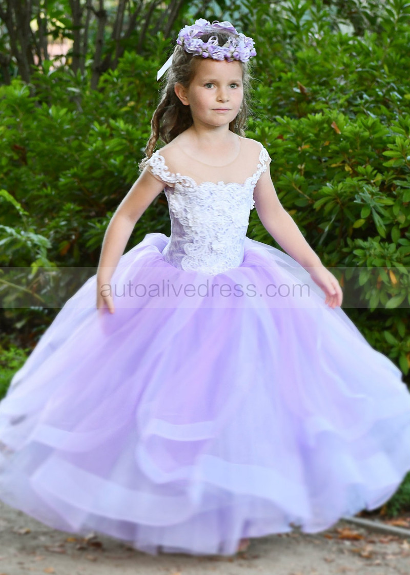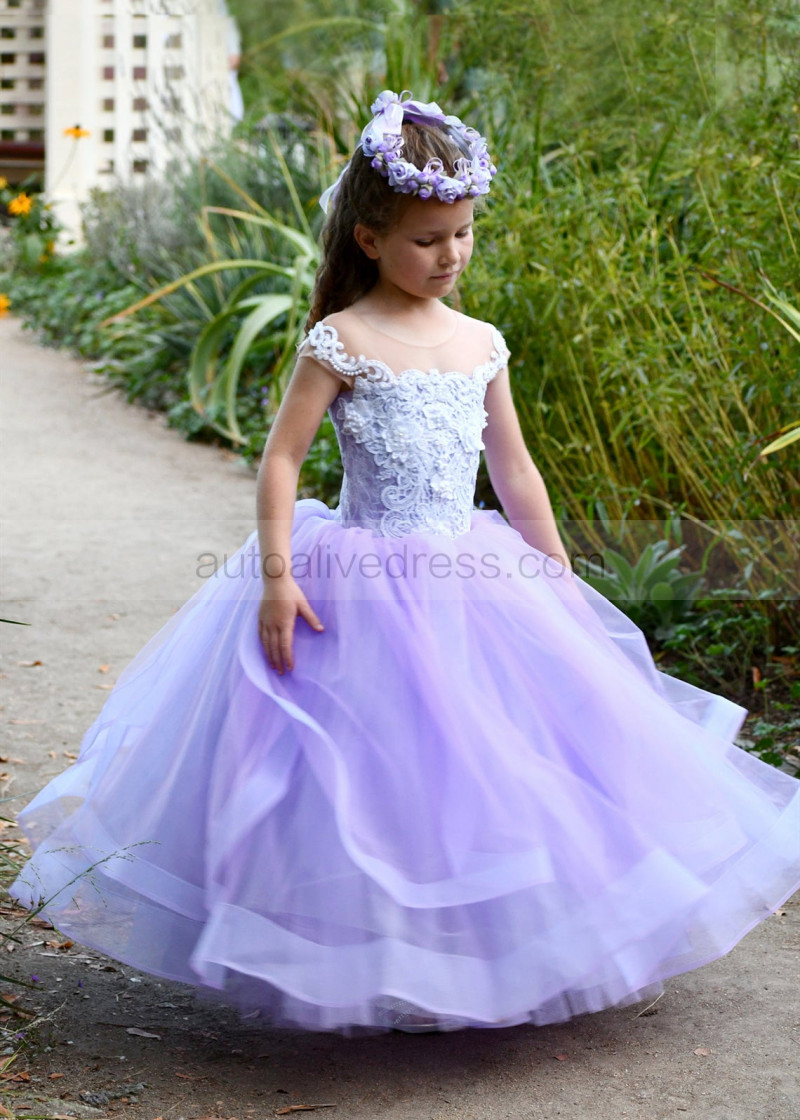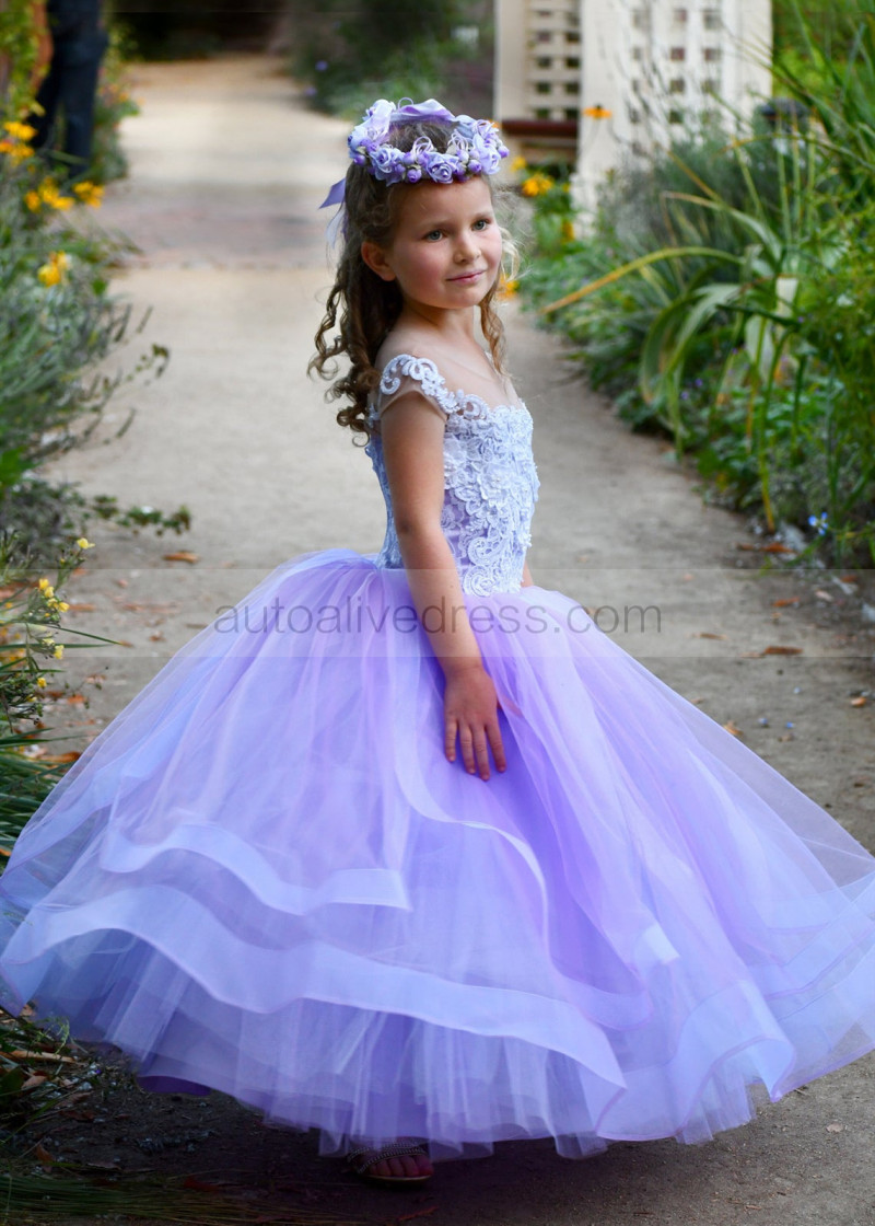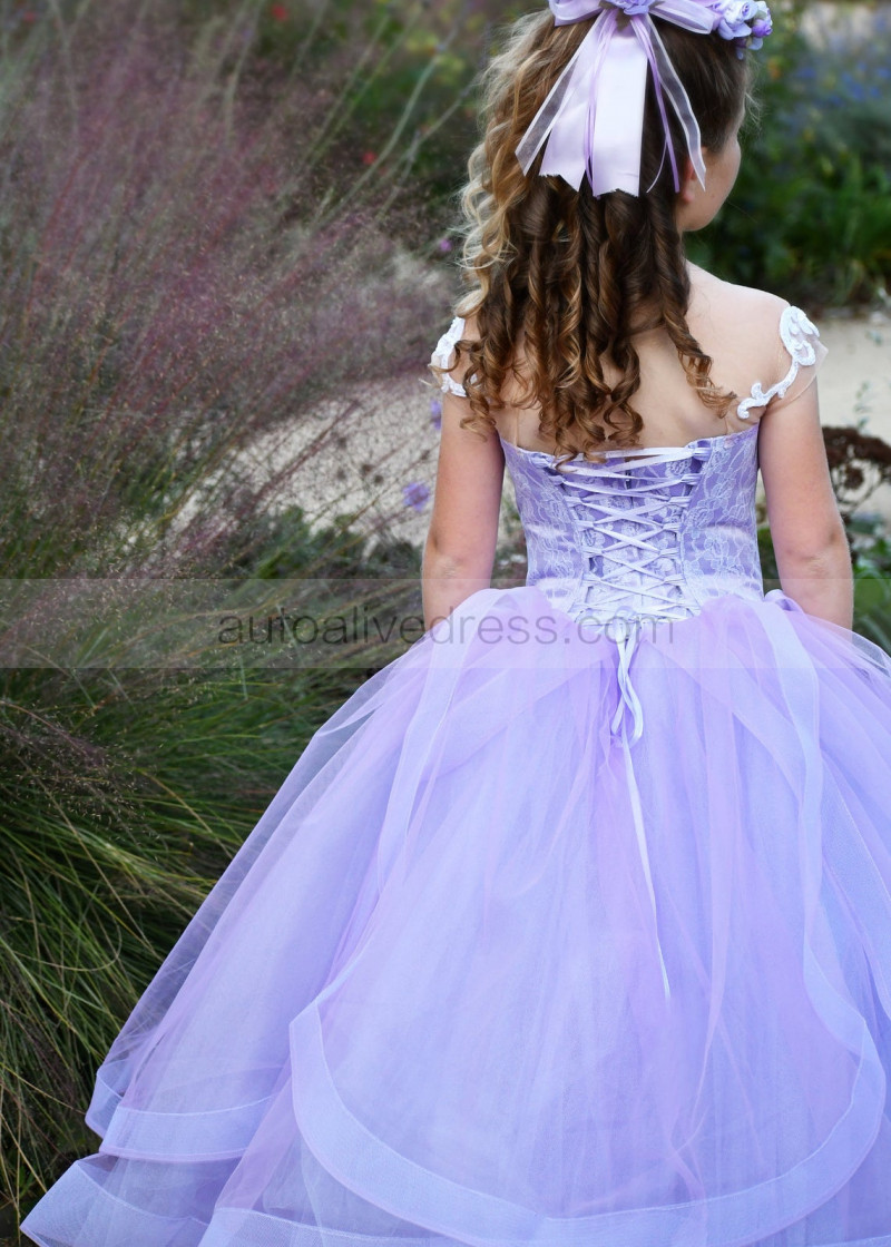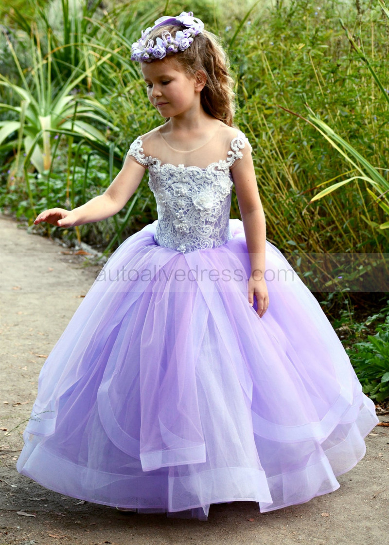 Beaded Purple Tulle Lace Fancy Flower Girl Dress