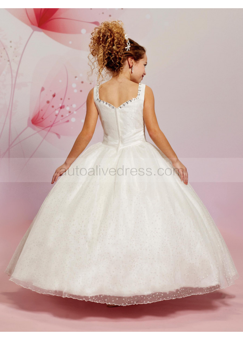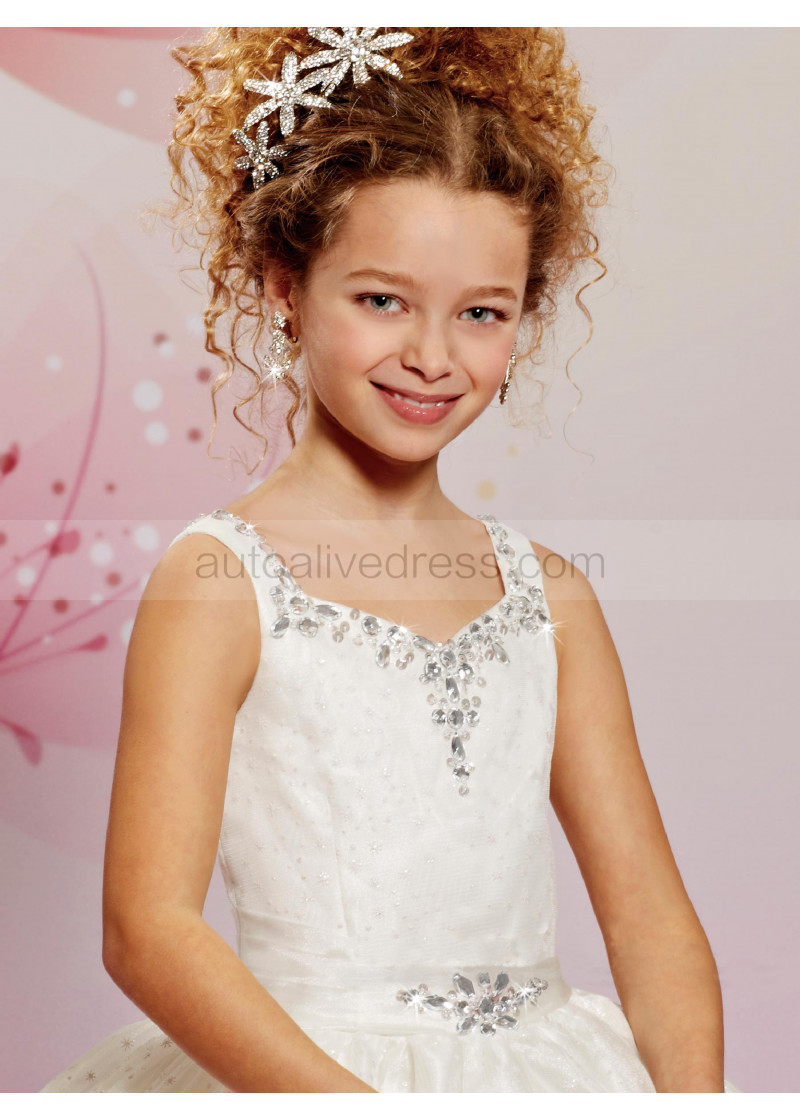 Beaded Queen Anne Neck Glittering Tulle Flower Girl Dress
