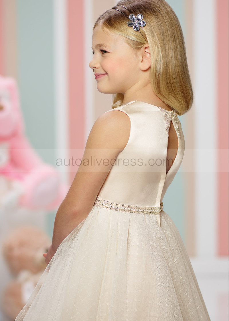 Beaded Satin Tulle Tea Length Wedding Flower Girl Dress