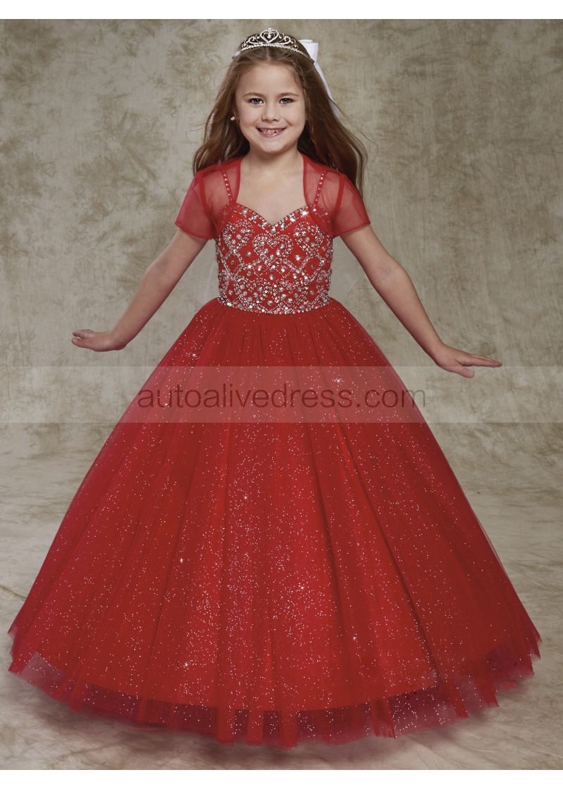 Beaded Shimmering Tulle Flower Girl Dress With Bolero
