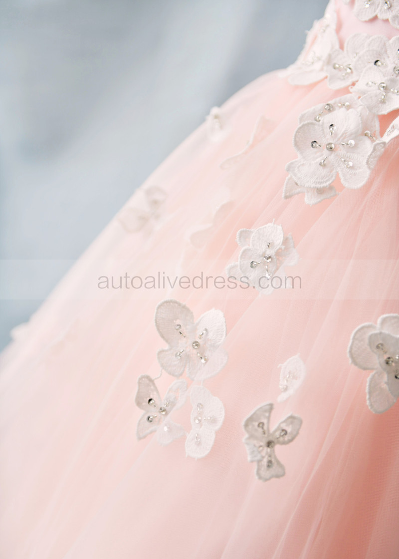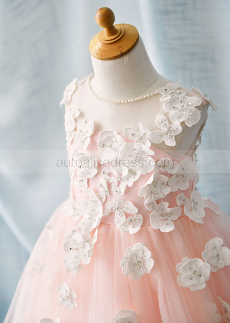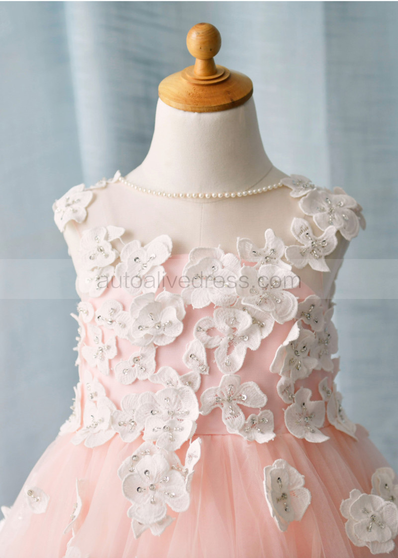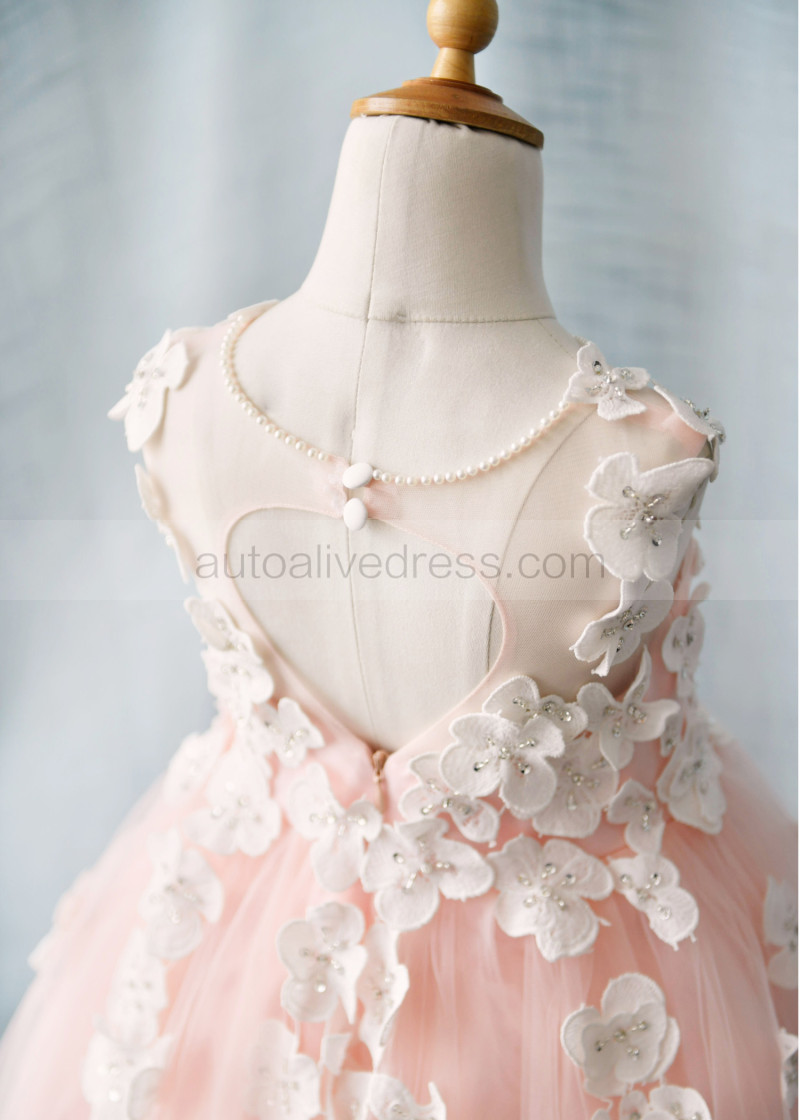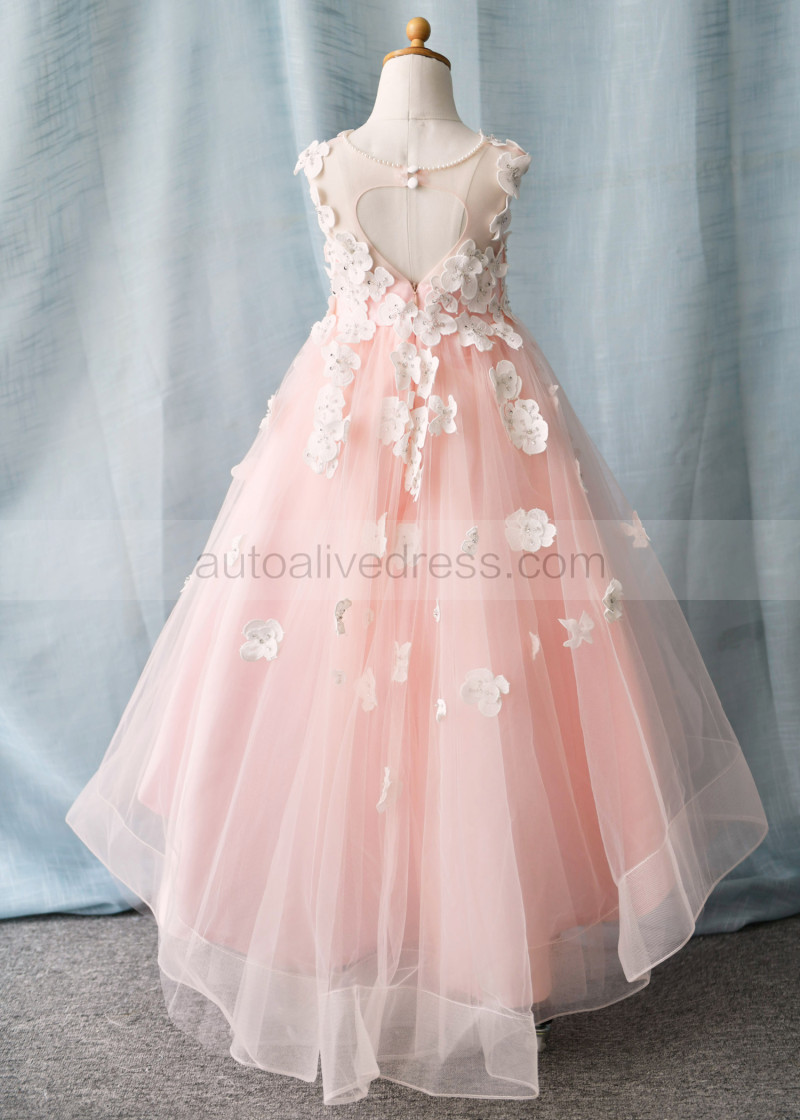 Beaded Tulle 3D Flowers Keyhole Back Flower Girl Dress