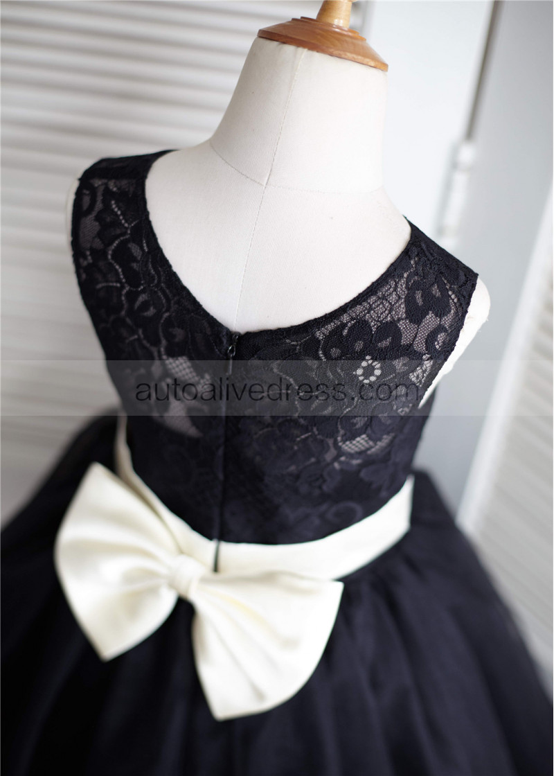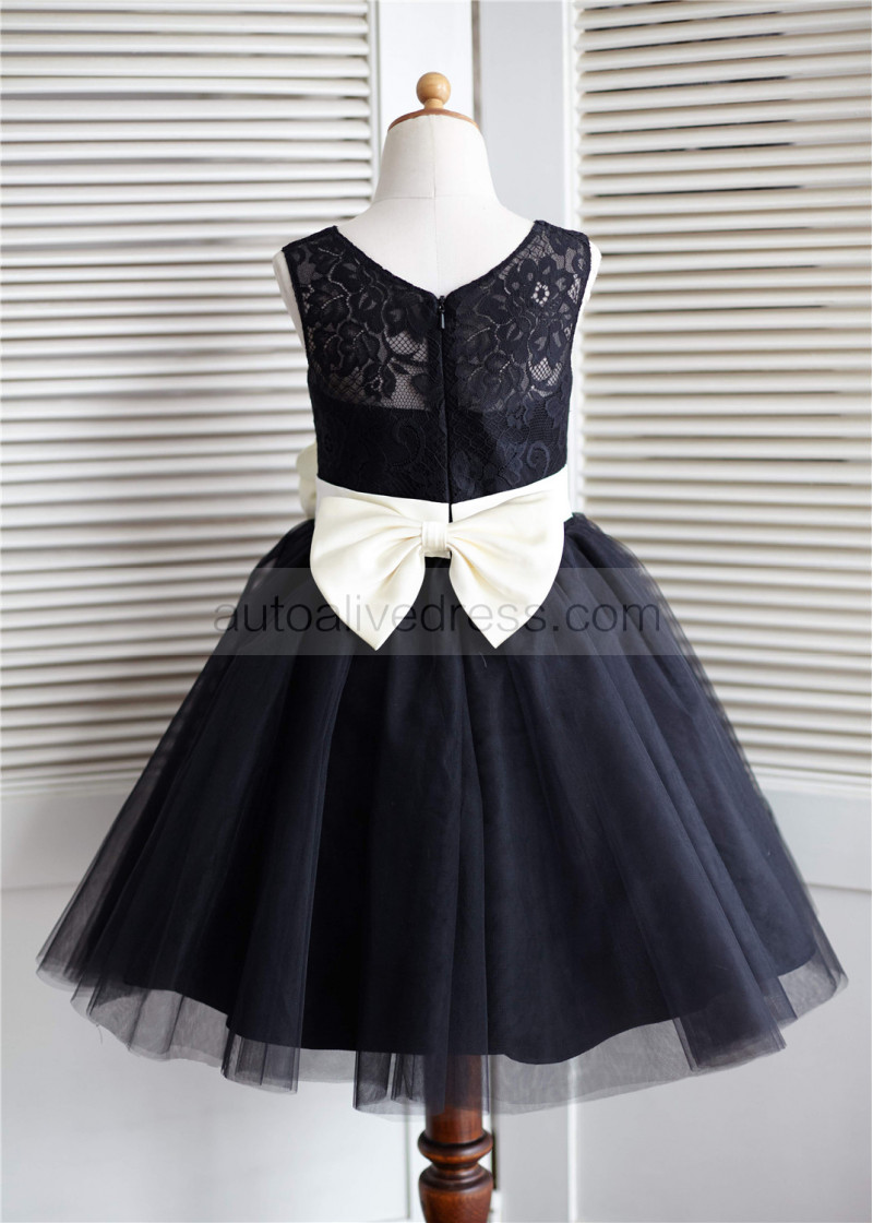 Black Lace Tulle Knee Length Elegant Flower Girl Dress