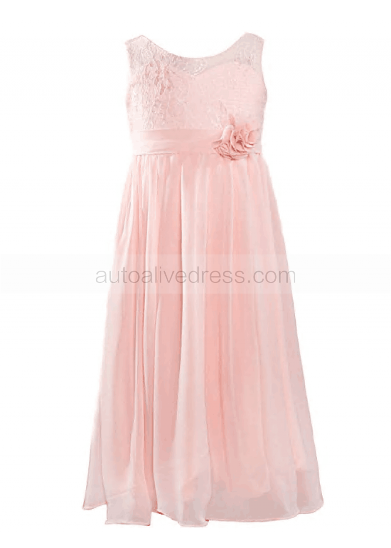 Blush Pink Lace Chiffon Floor Length Flower Girl Dress Junior Girl Dress