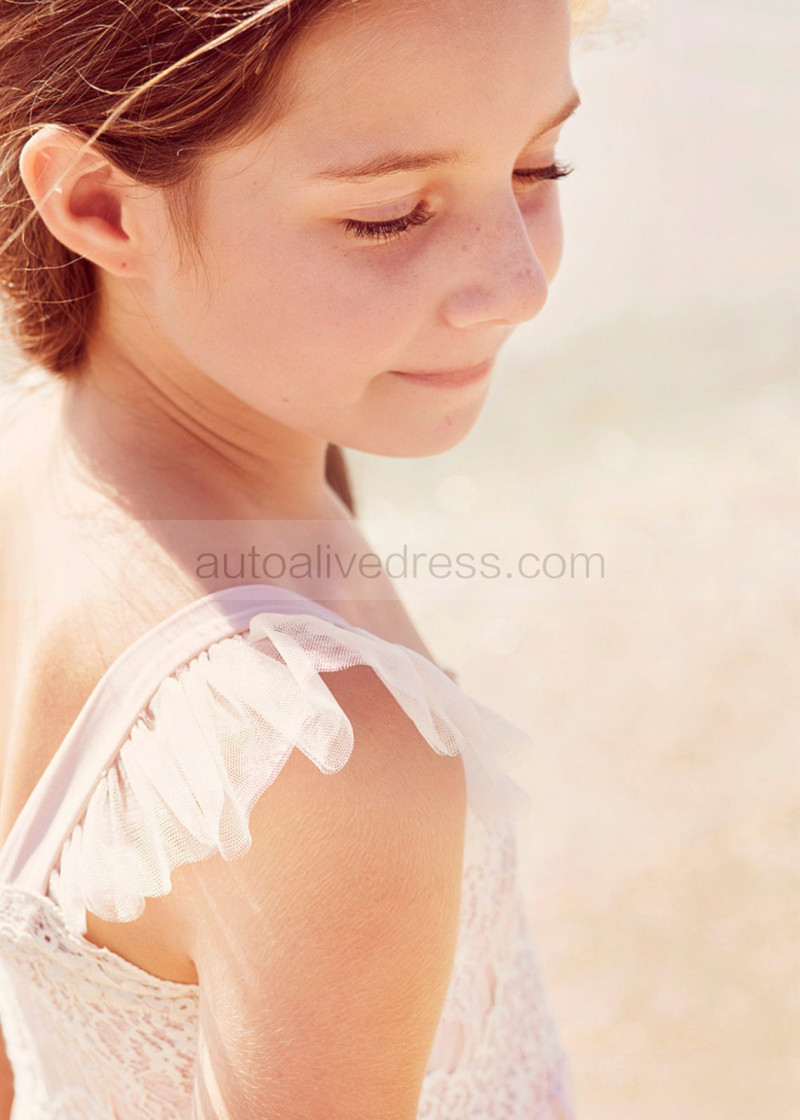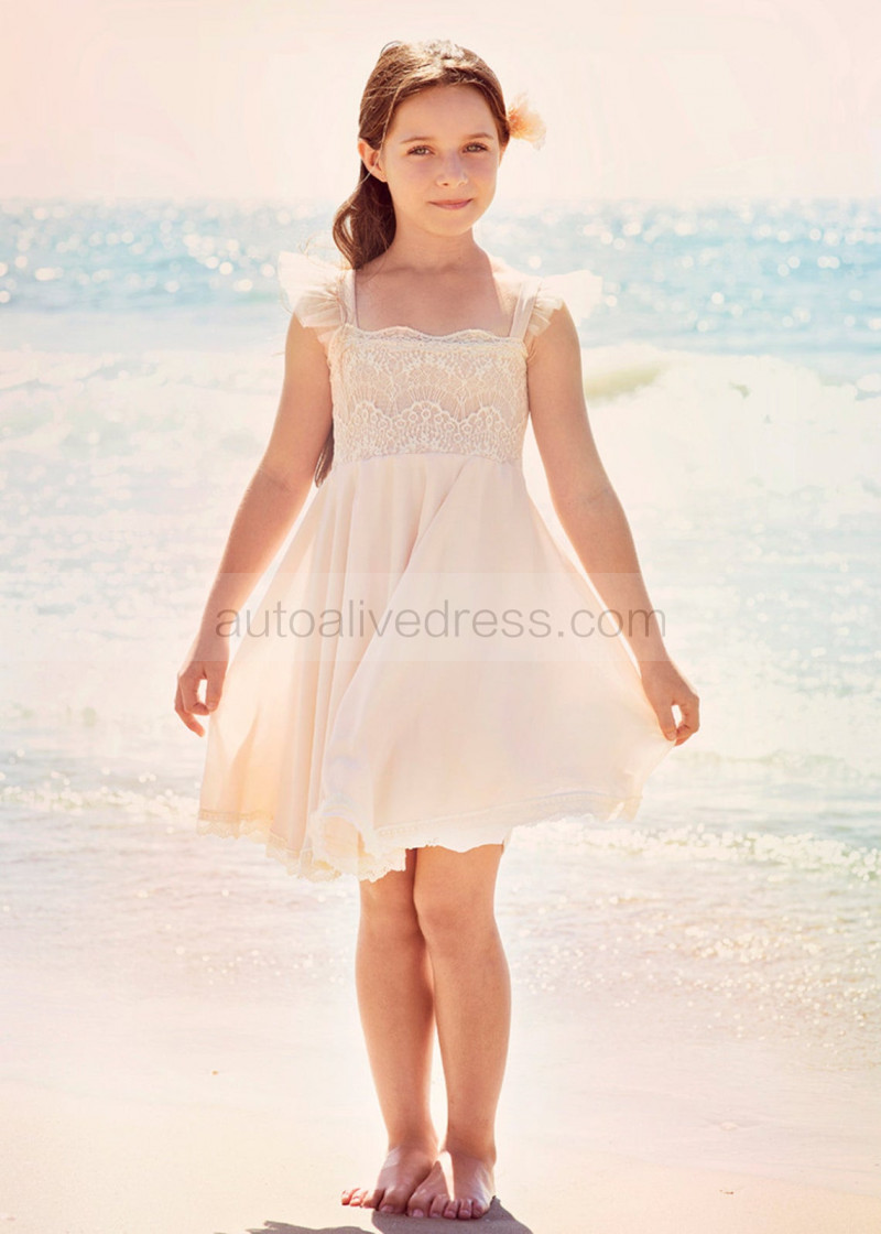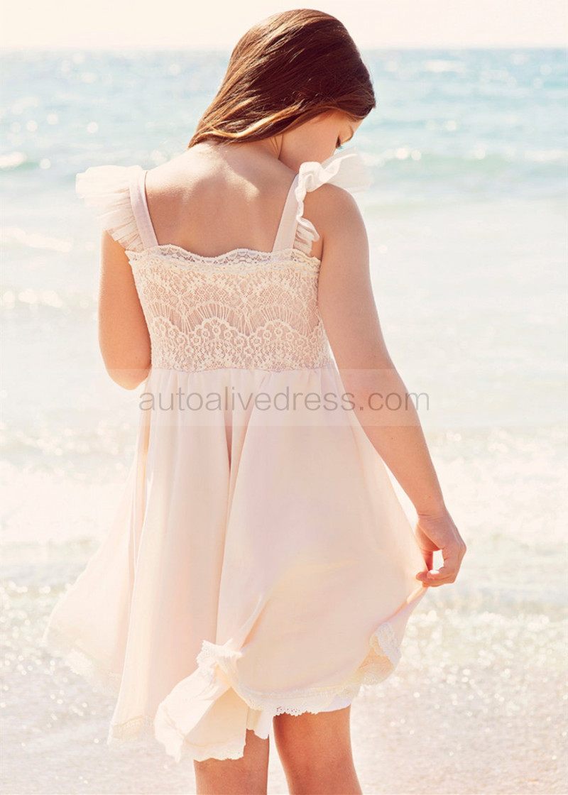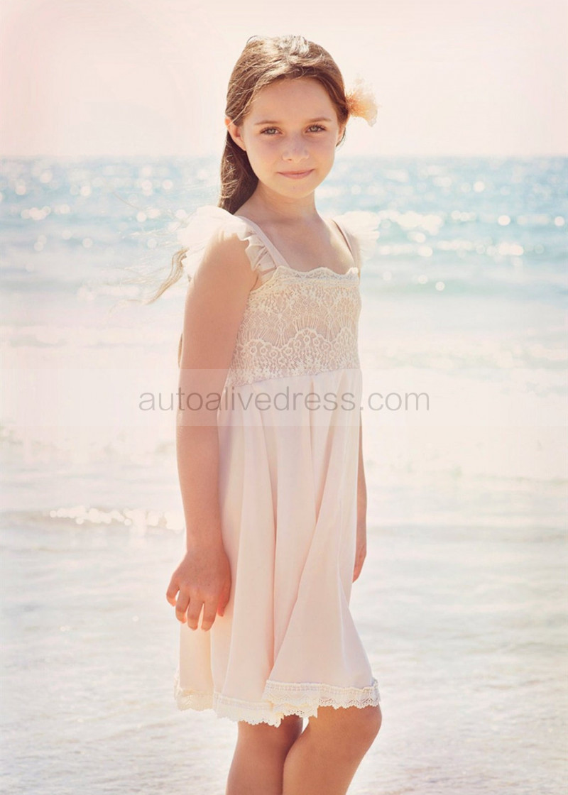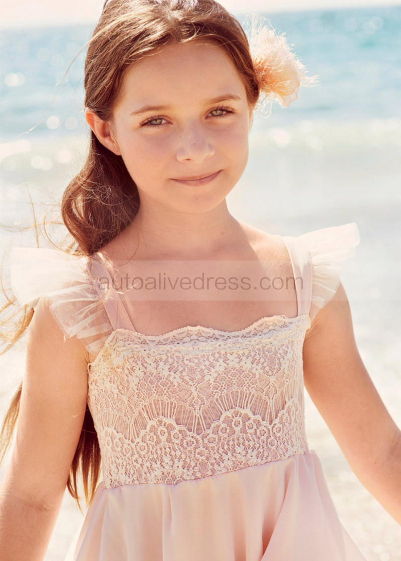 Blush Pink Lace Chiffon Knee Length Flower Girl Dress