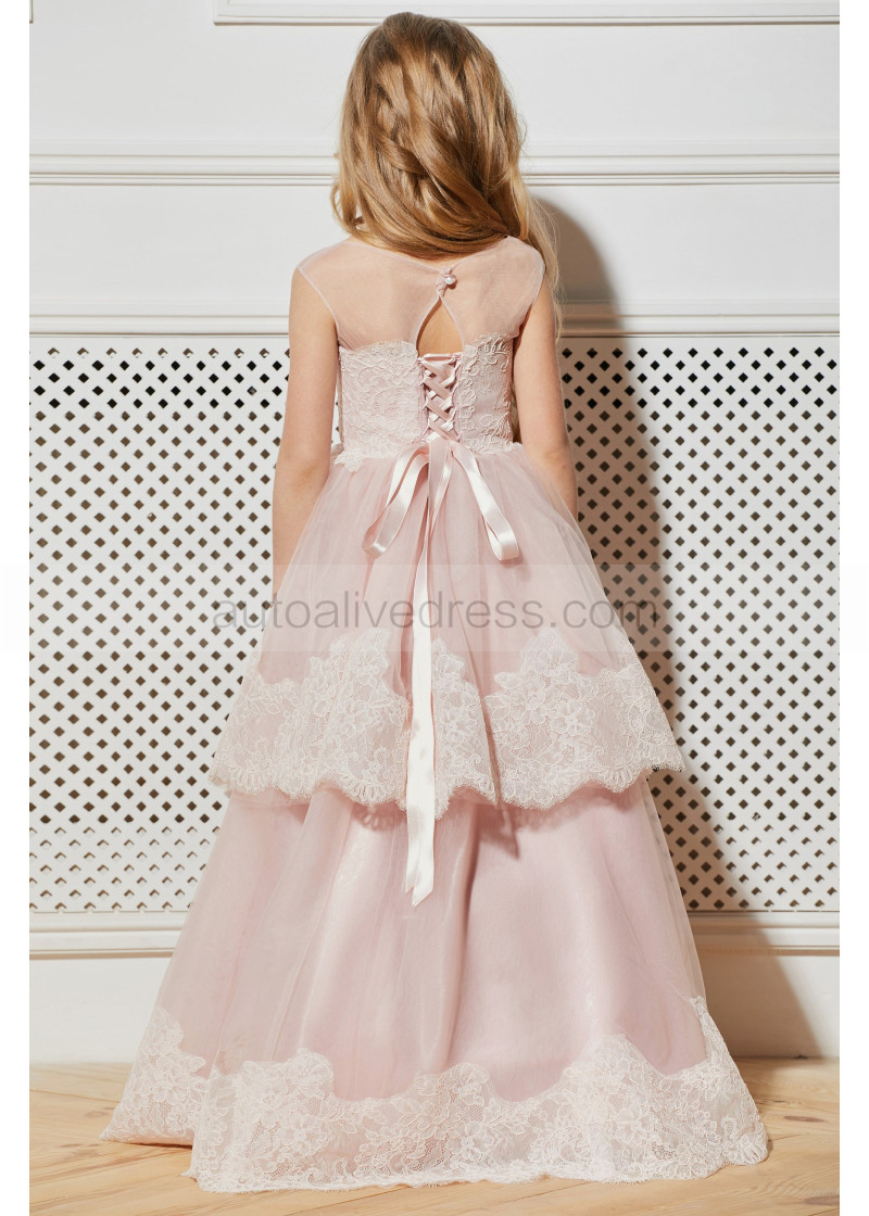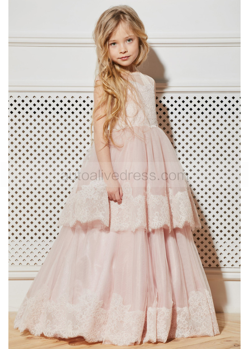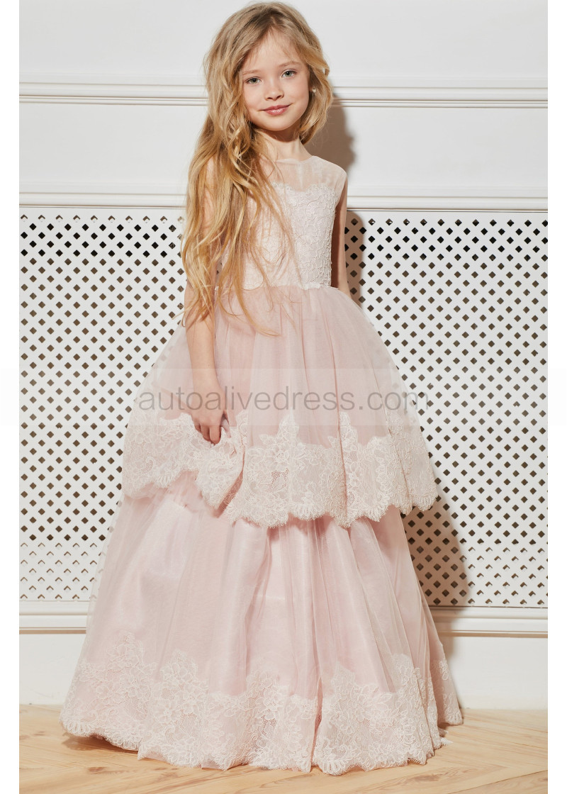 Blush Pink Lace Tulle Tiered Sweet Flower Girl Dress