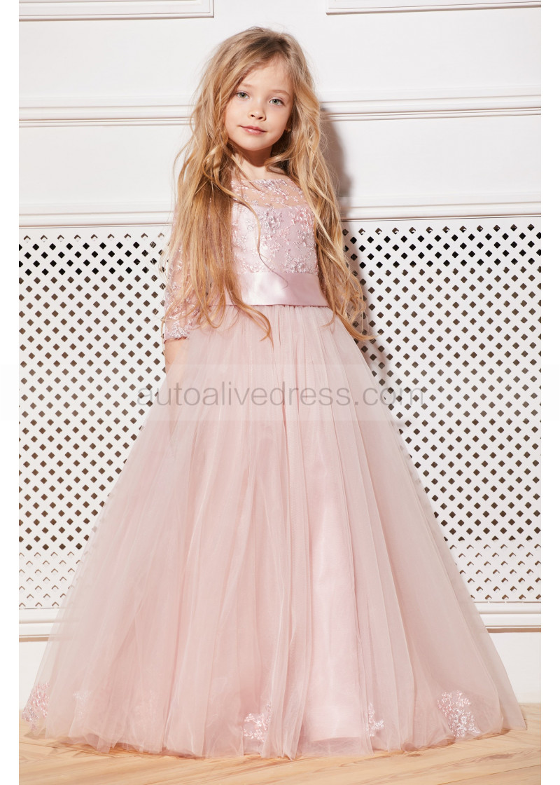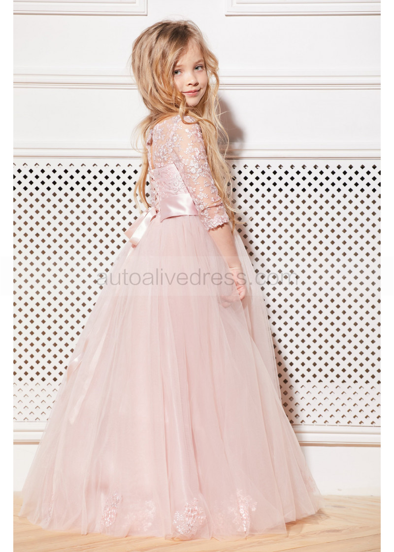 Blush Pink Lace Tulle Wedding Flower Girl Dress