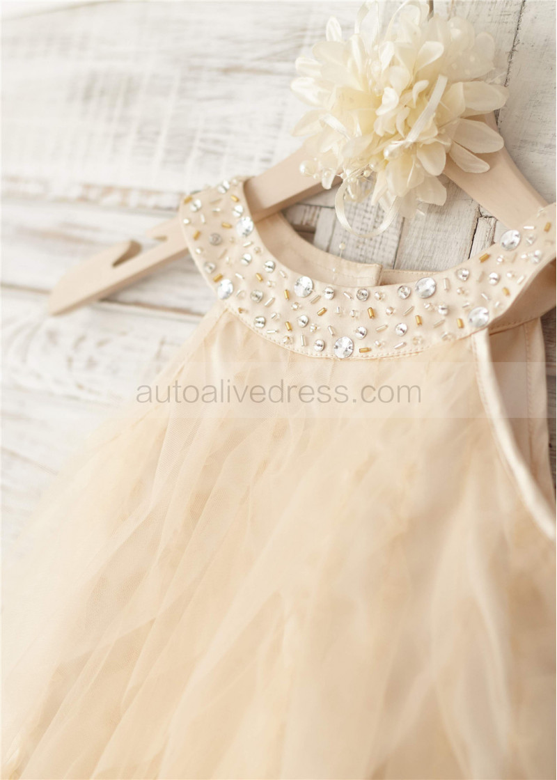 Boho Beach Champagne Tulle Knee Length Flower Girl Dress