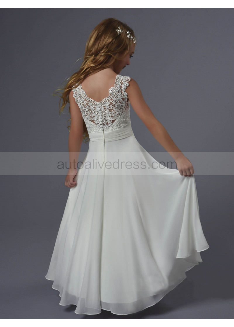 Boho Beach Lace Chiffon Floor Length Wedding Flower Girl Dress