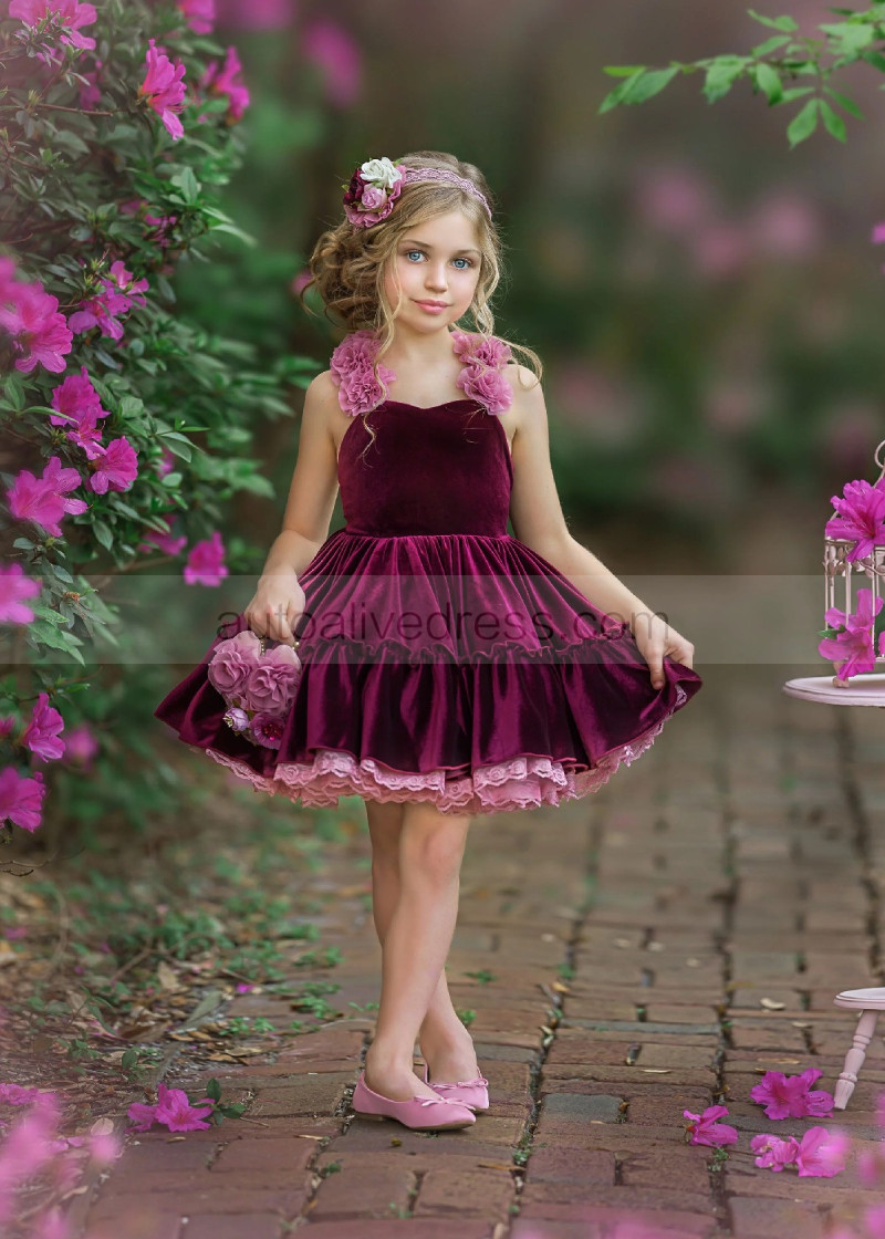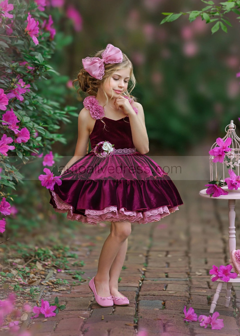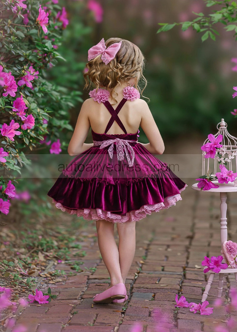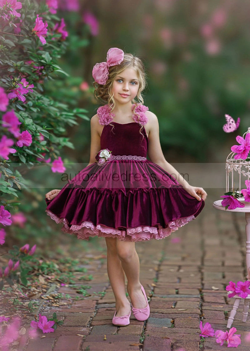 Burgundy Velvet Flower Girl Dress Girl Twirl Dress