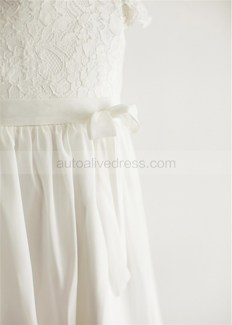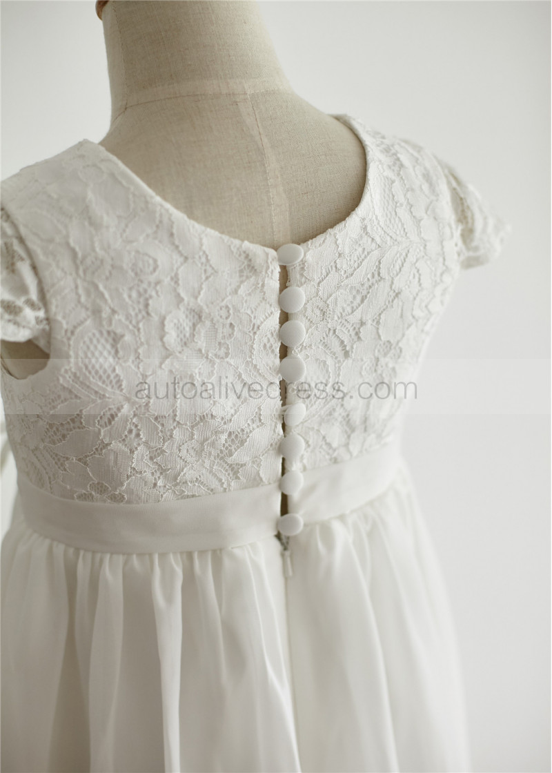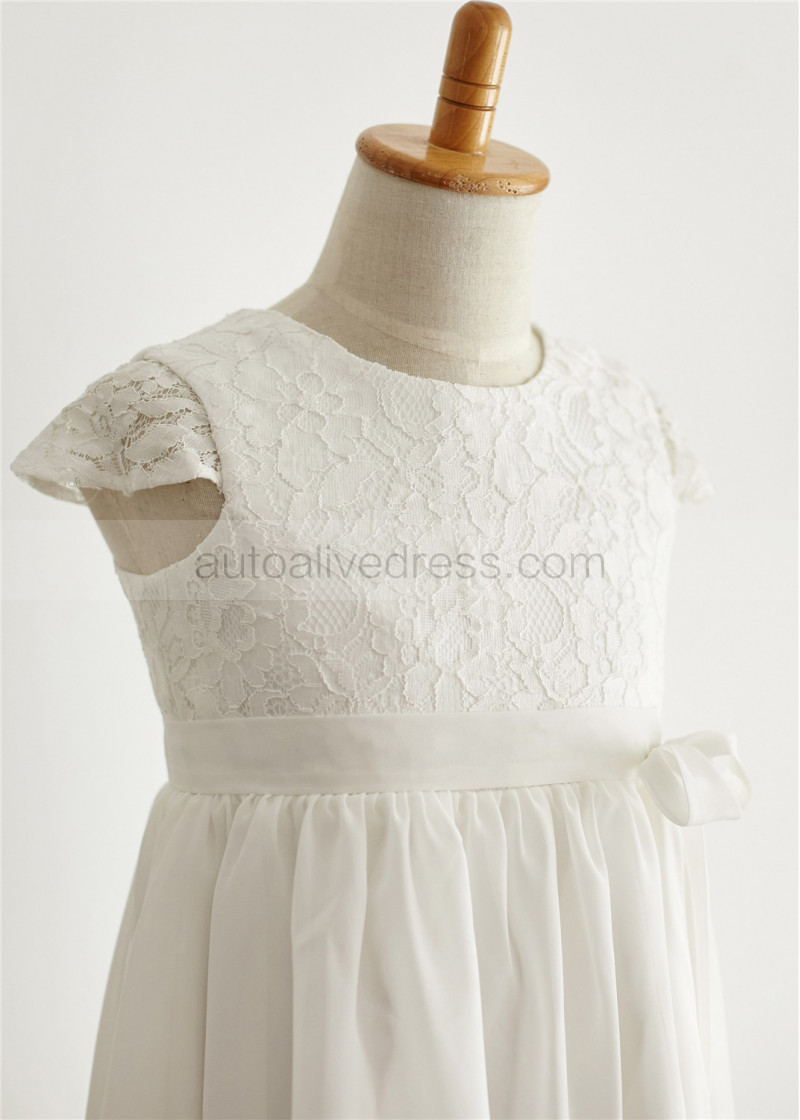 Cap Sleeves Ivory Lace Chiffon Knee Length Flower Girl Dress
