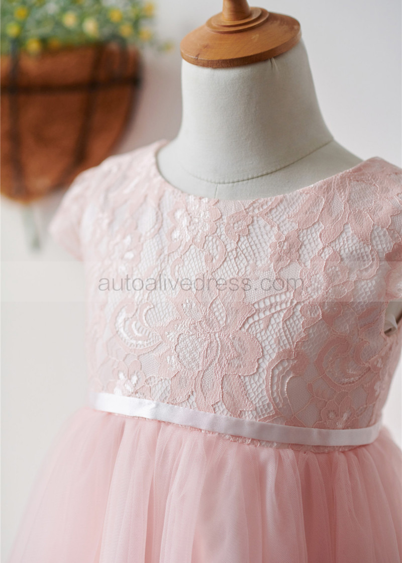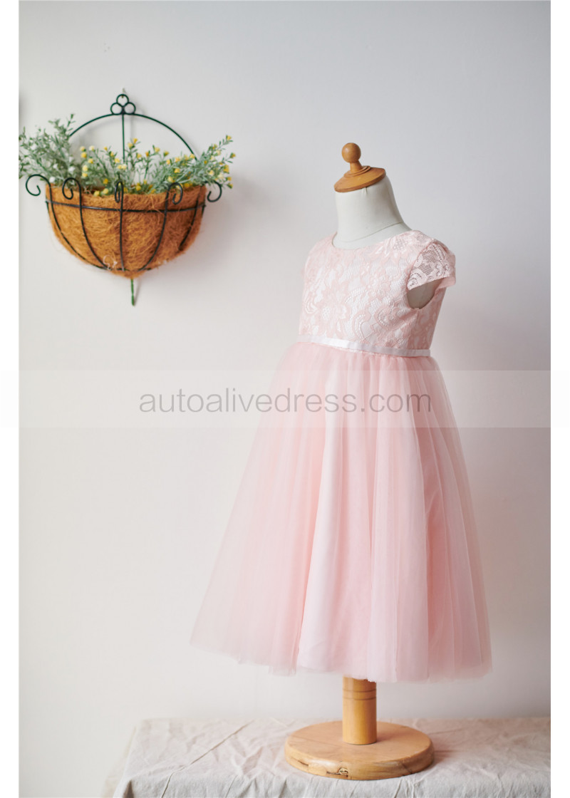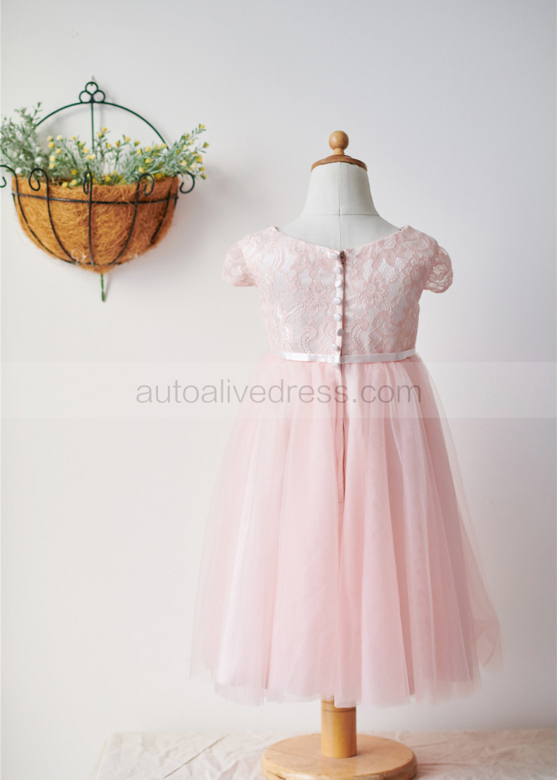 Cap Sleeves Pink Lace Tulle Short Flower Girl Dress