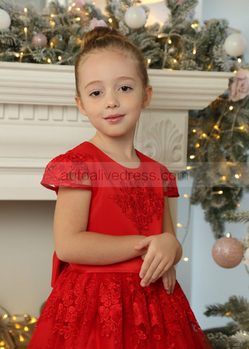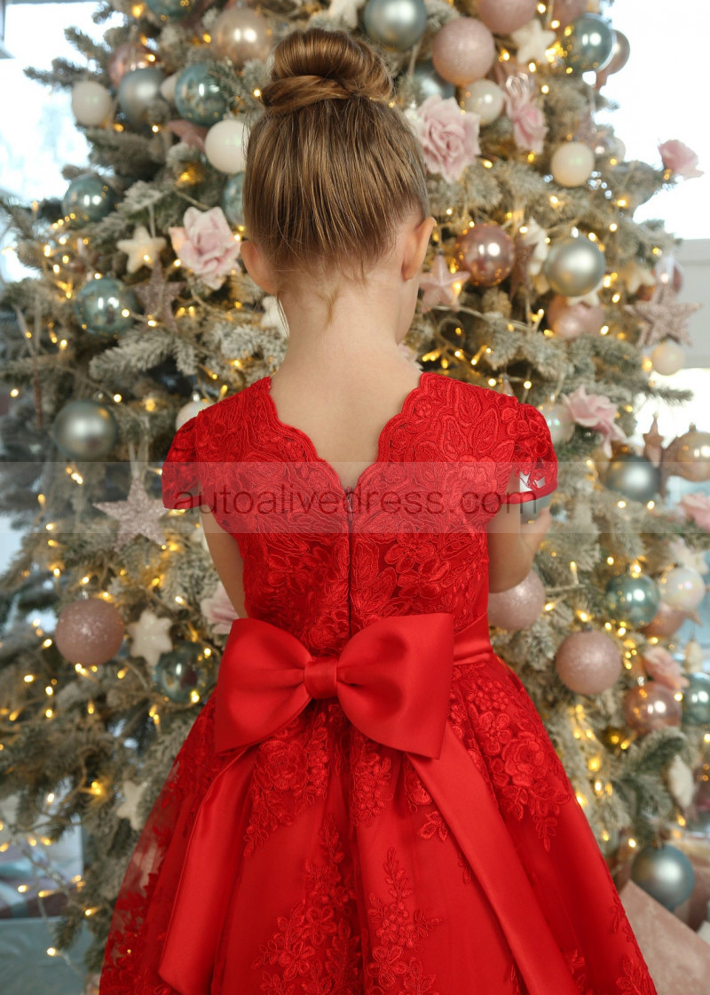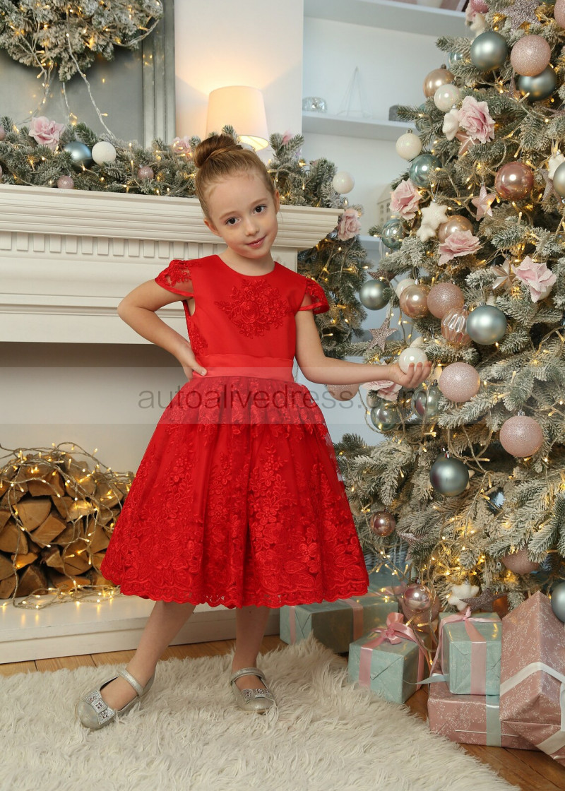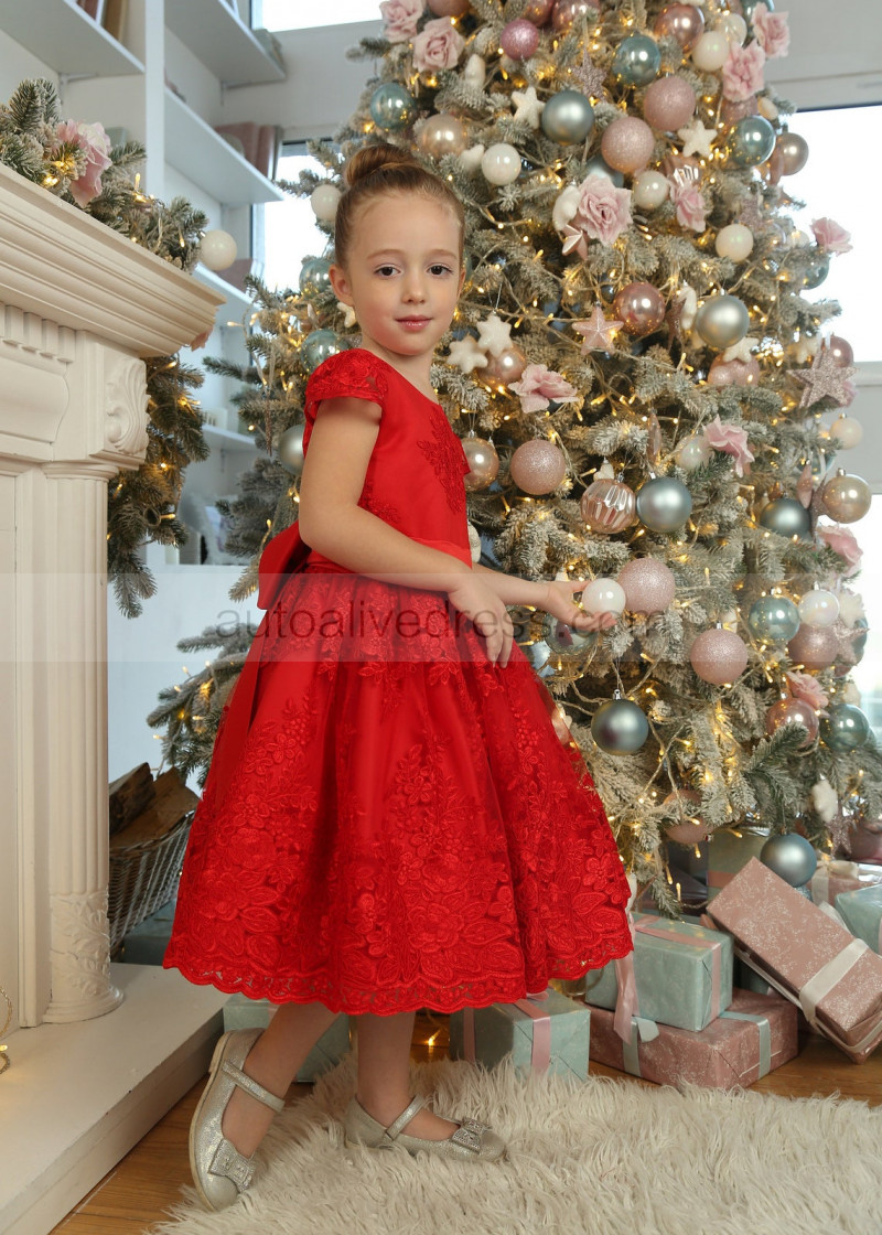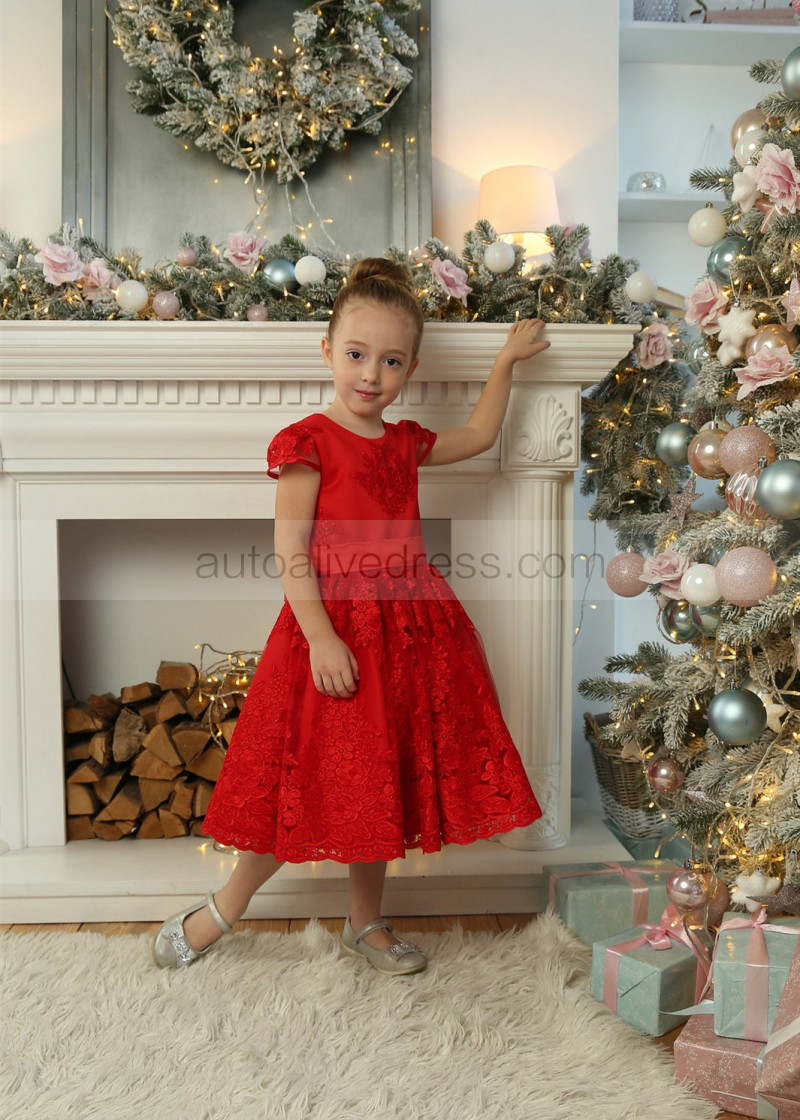 Cap Sleeves Red Lace Flower Girl Dress Christmas Dress