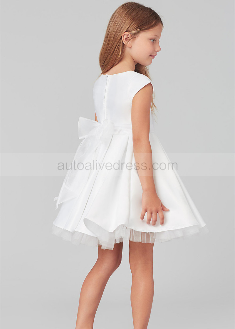 Cap Sleeves White Satin Tulle Short Flower Girl Dress