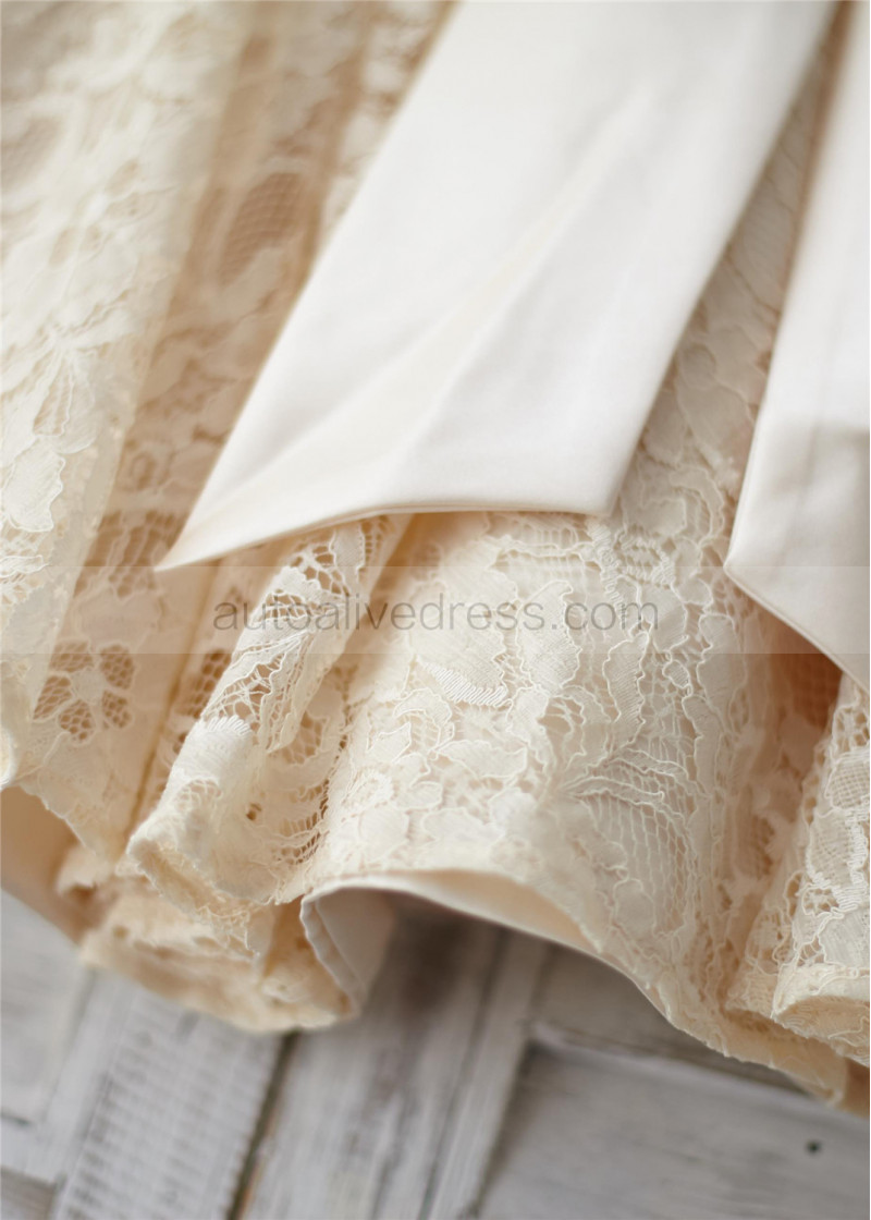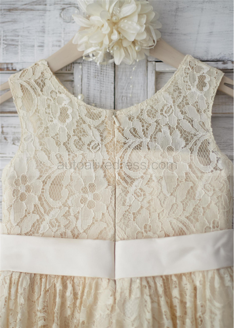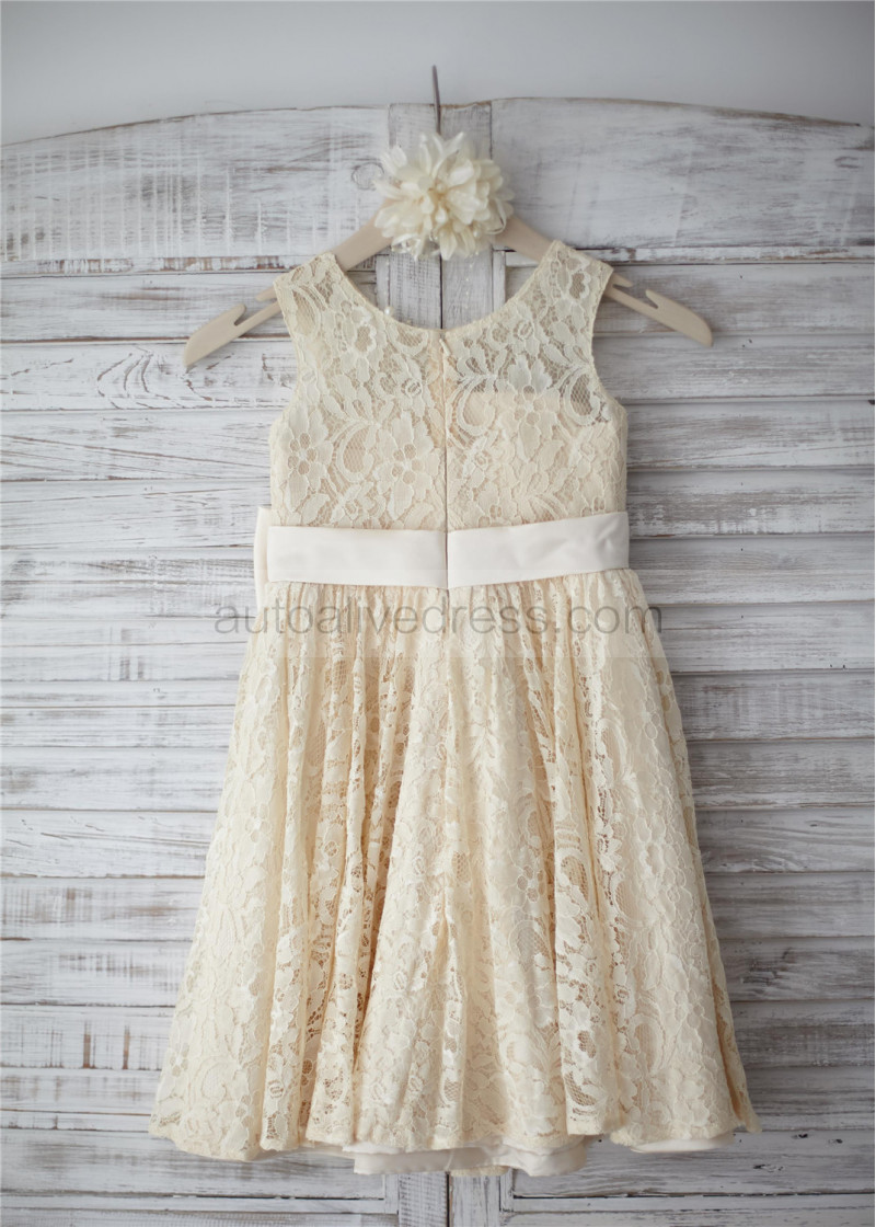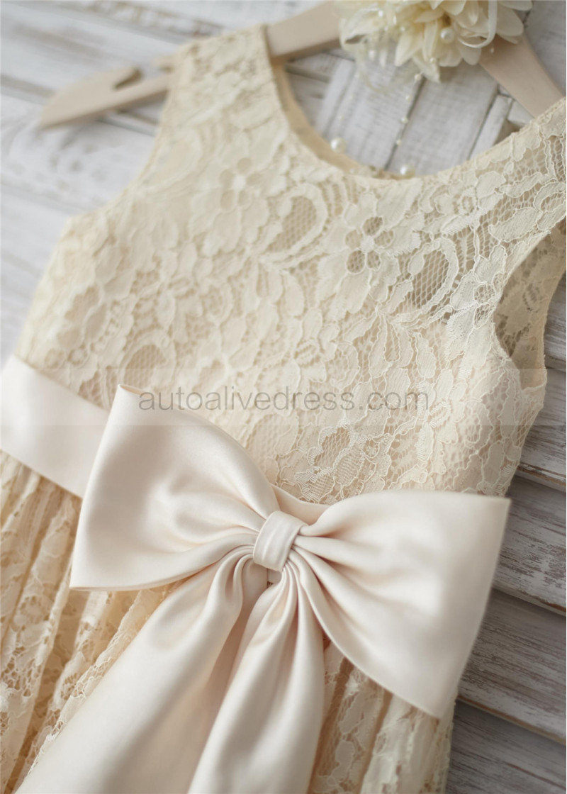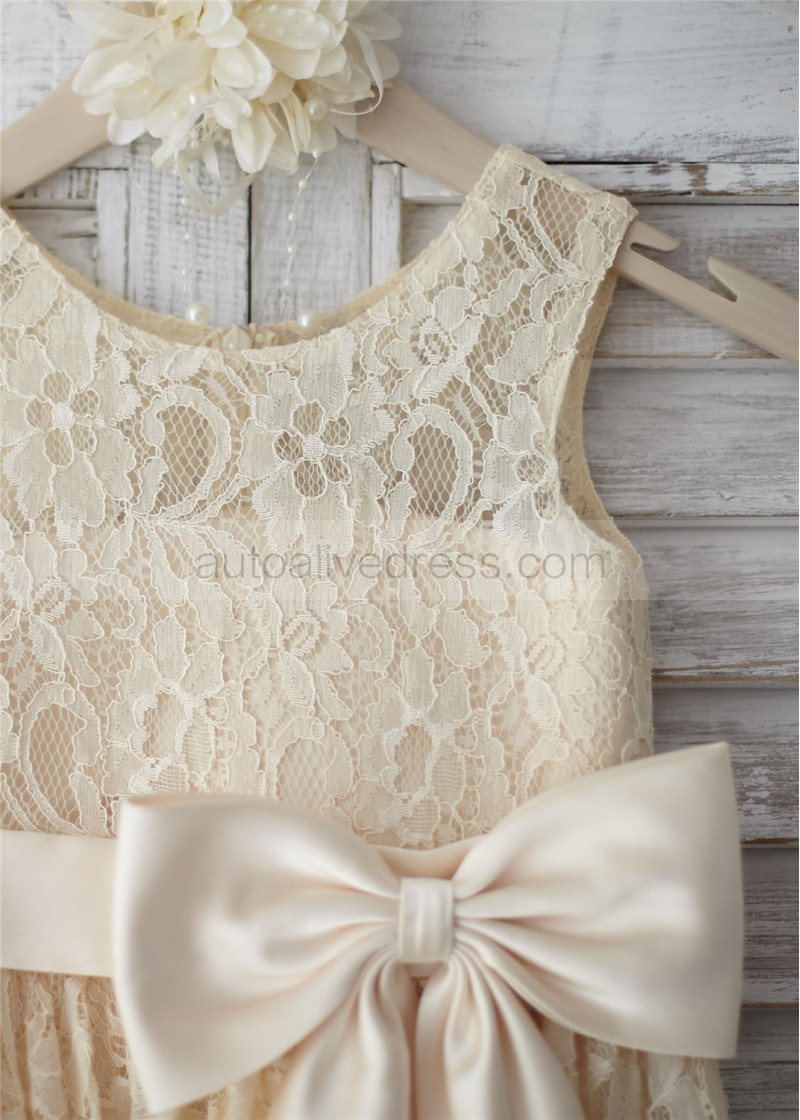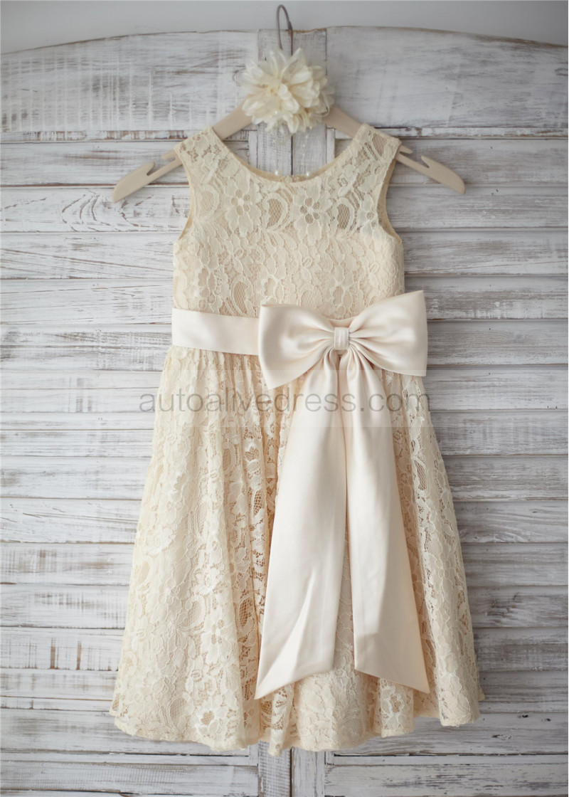 Champagne Lace Big Bow Knee Length Flower Girl Dress