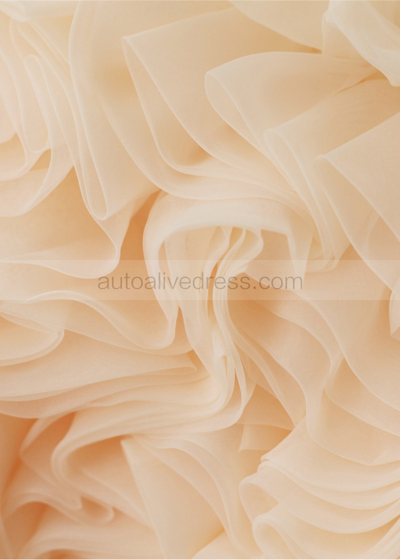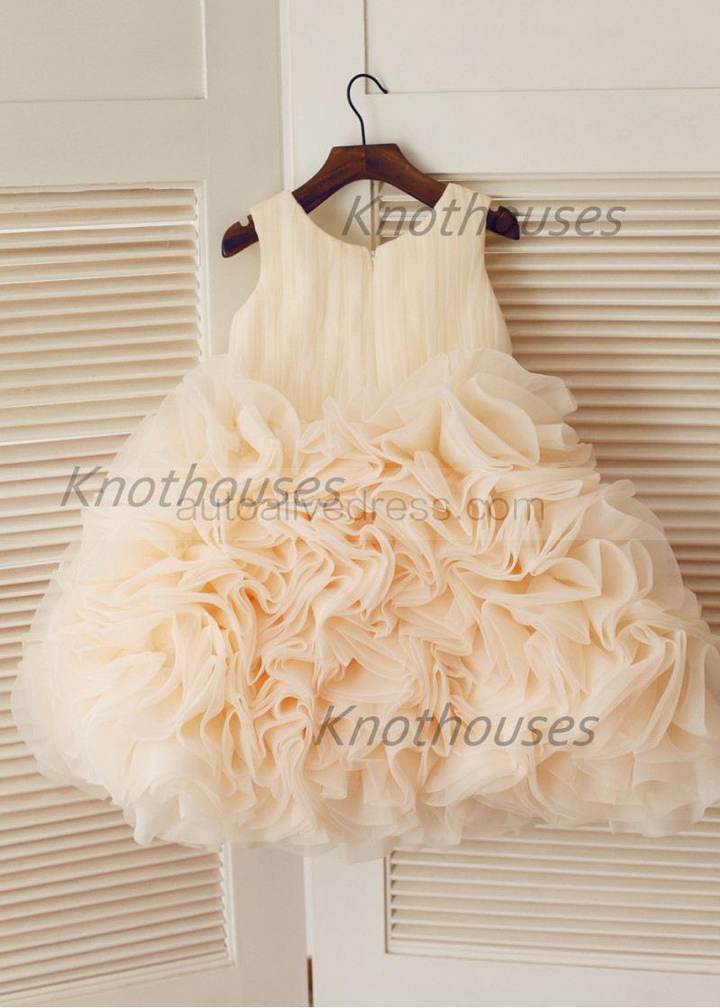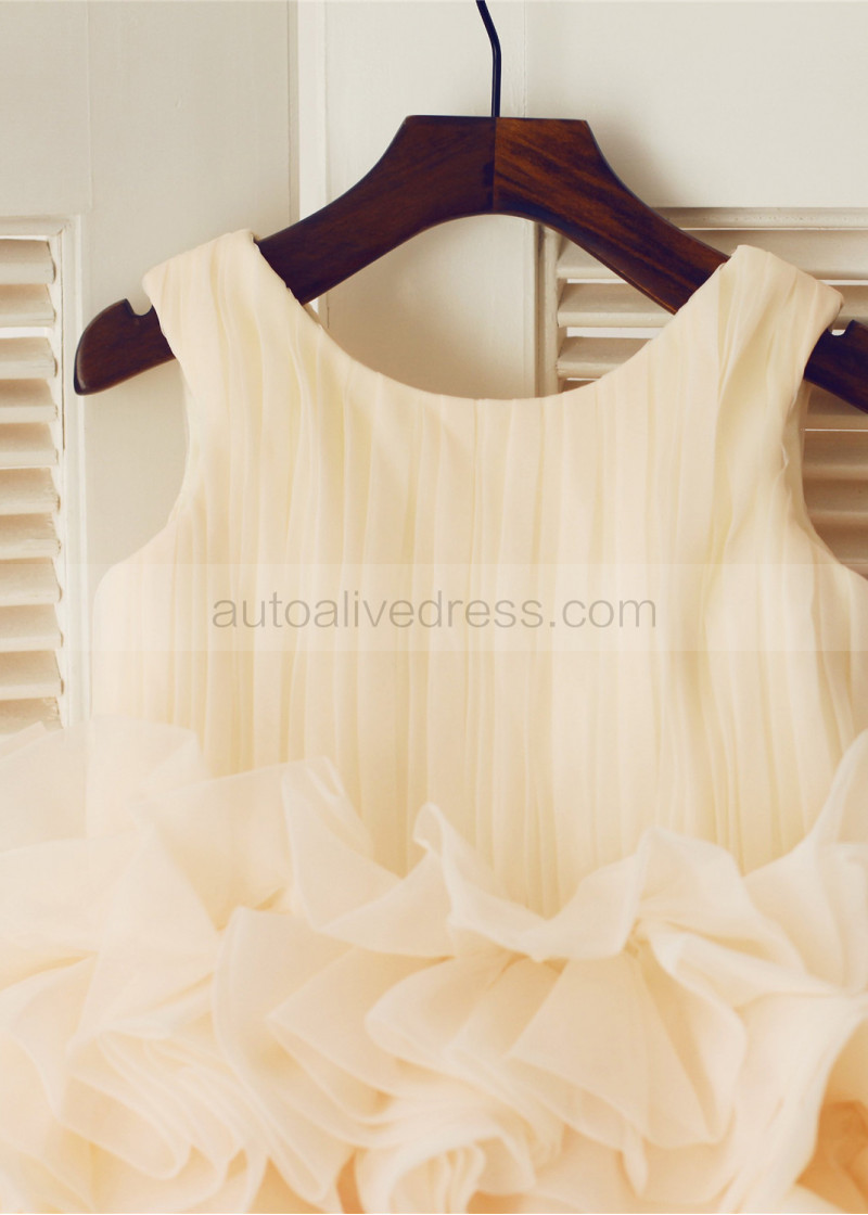 Champagne Pleated Organza Ruffled Knee Length Flower Girl Dress