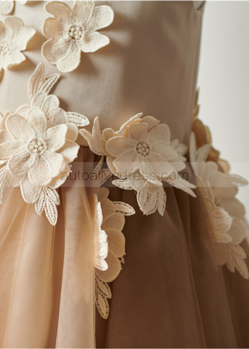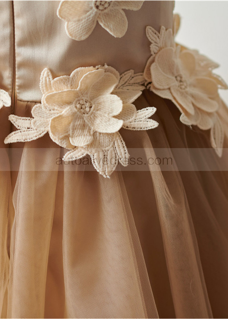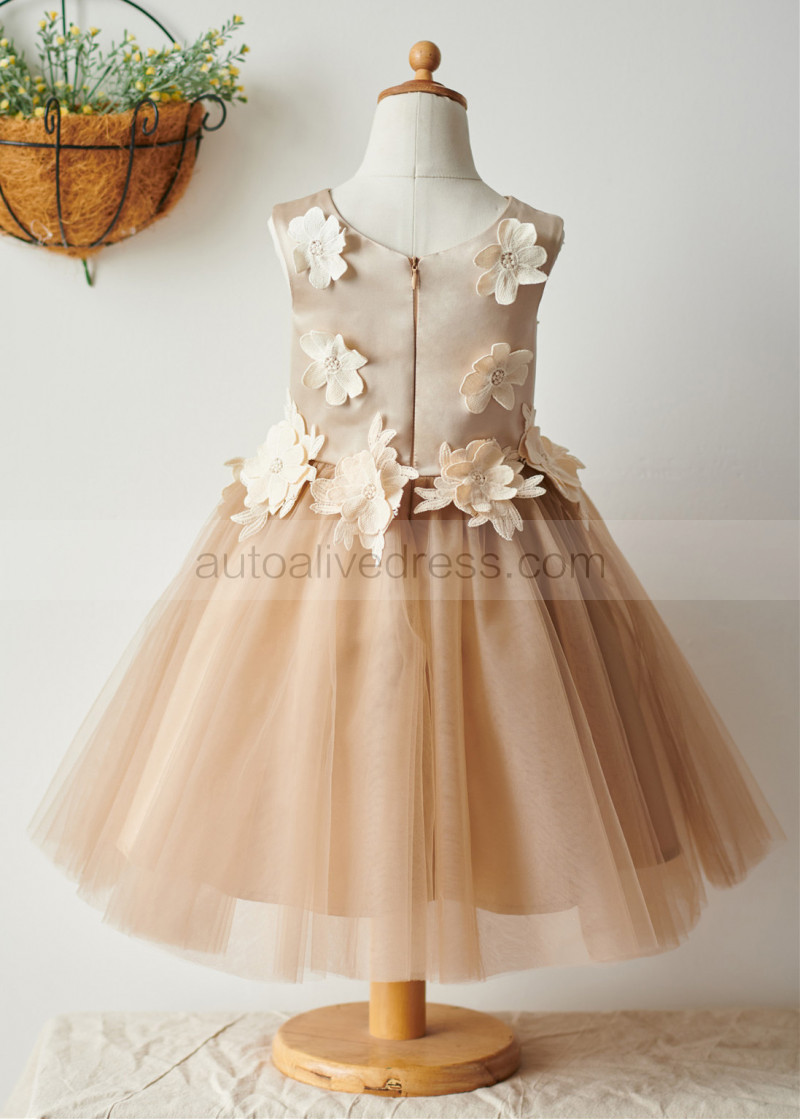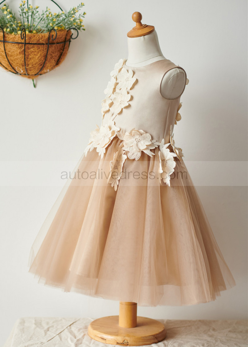 Champagne Satin Tulle Knee Length Flower Girl Dress