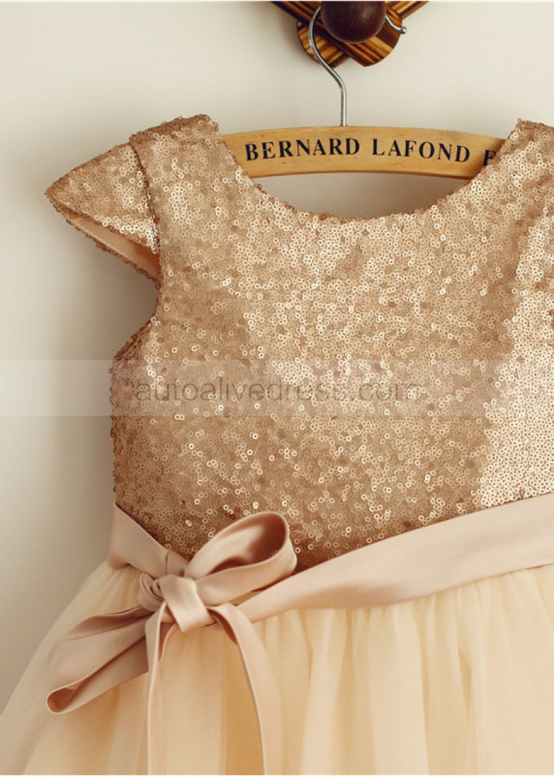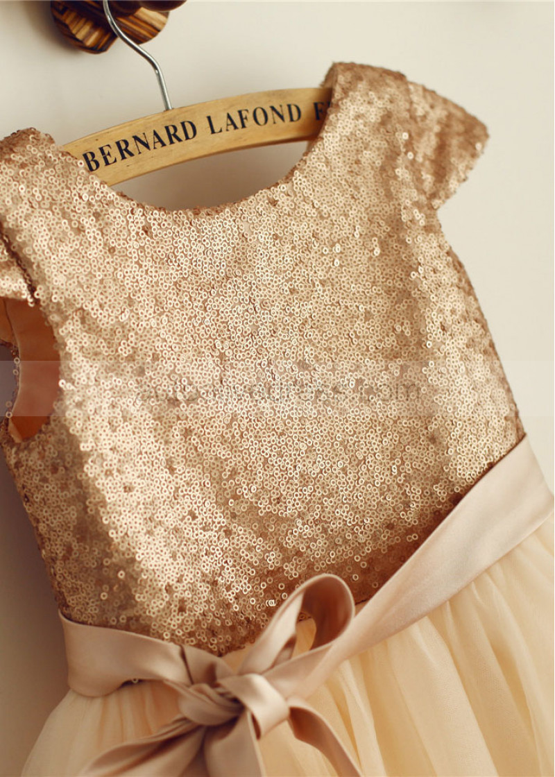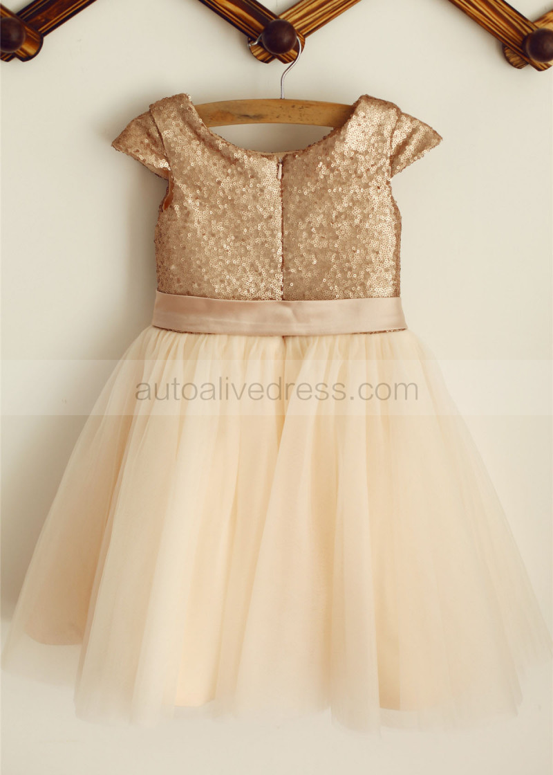 Champagne Sequin Tulle Knee Length Flower Girl Dress