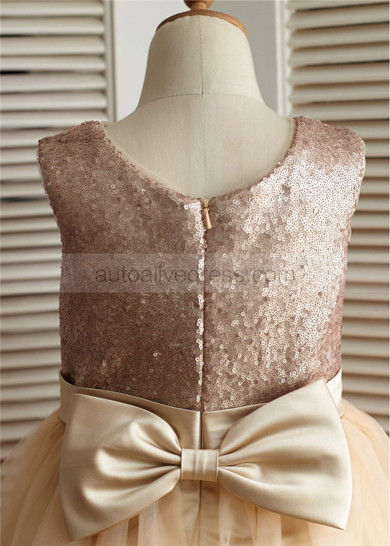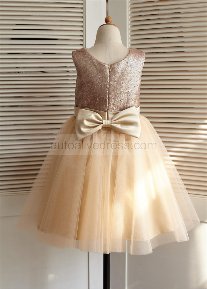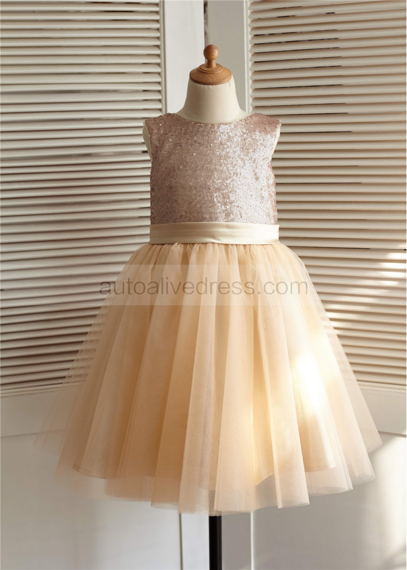 Champagne Sequin Tulle Knee Length Modern Flower Girl Dress