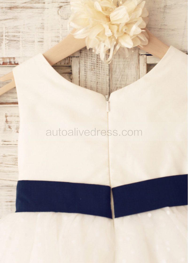 Cotton Polka Dots Tulle Layered Flower Girl Dress