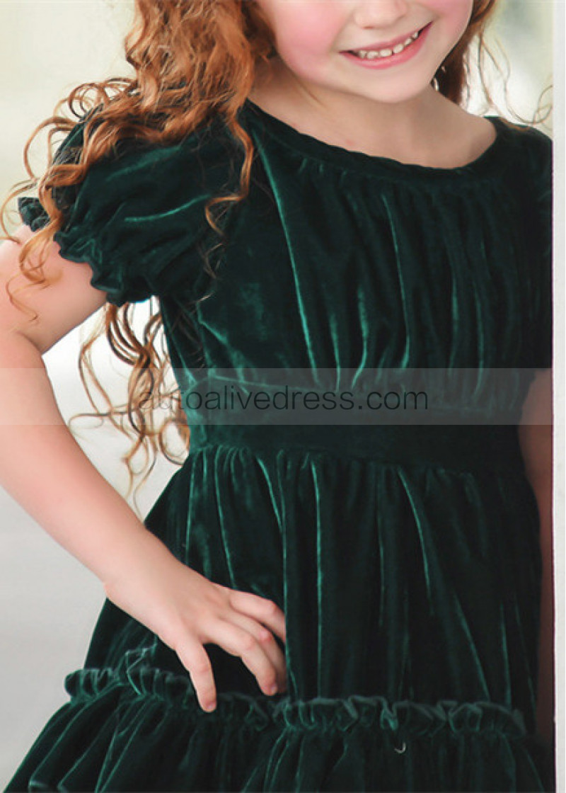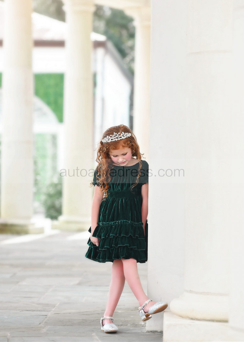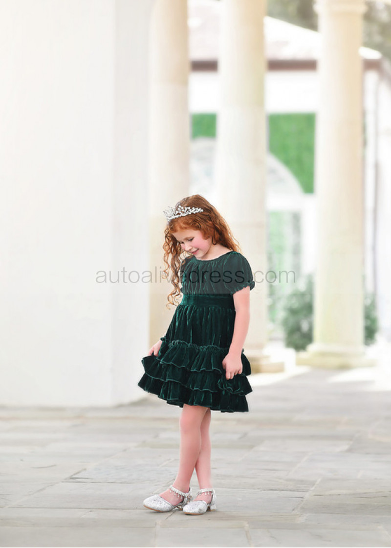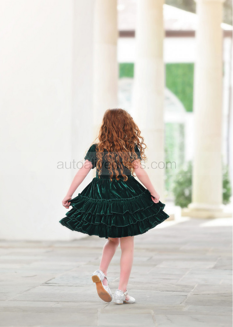 Emerald Velvet Twirl Flower Girl Dress