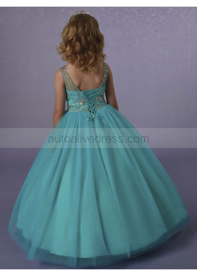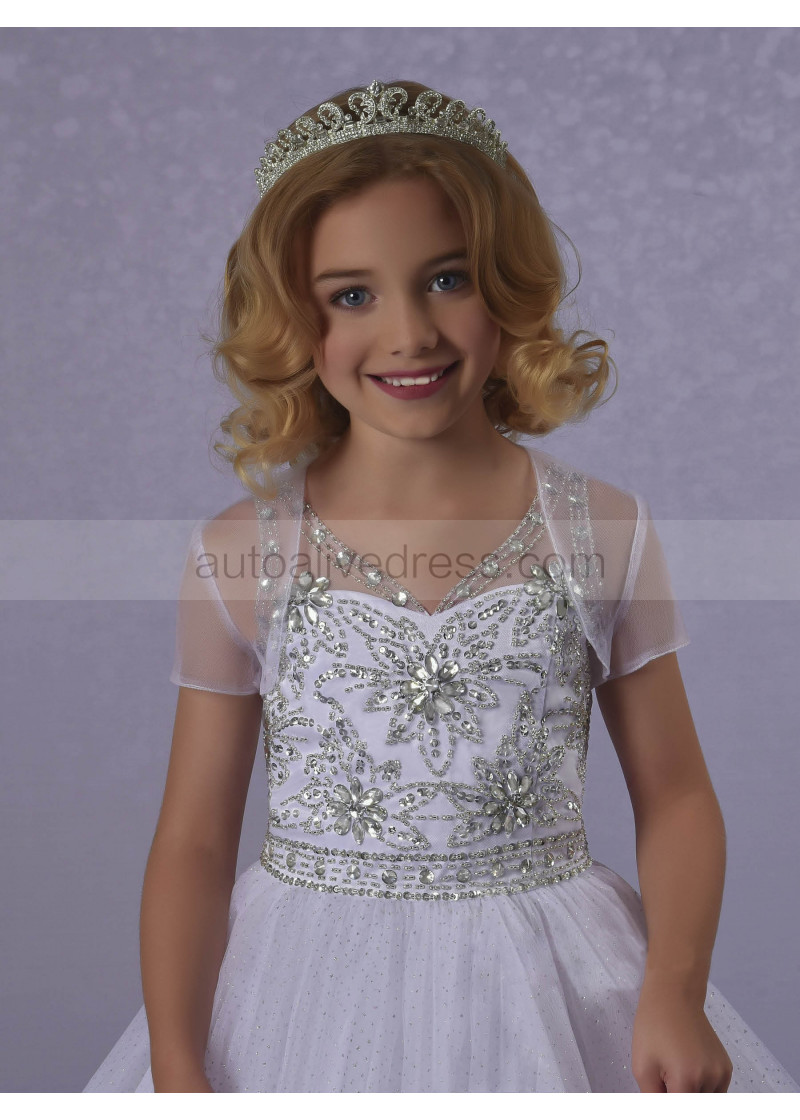 V Neck Beaded Glittering Tulle Corset Back Flower Girl Dress With Bolero