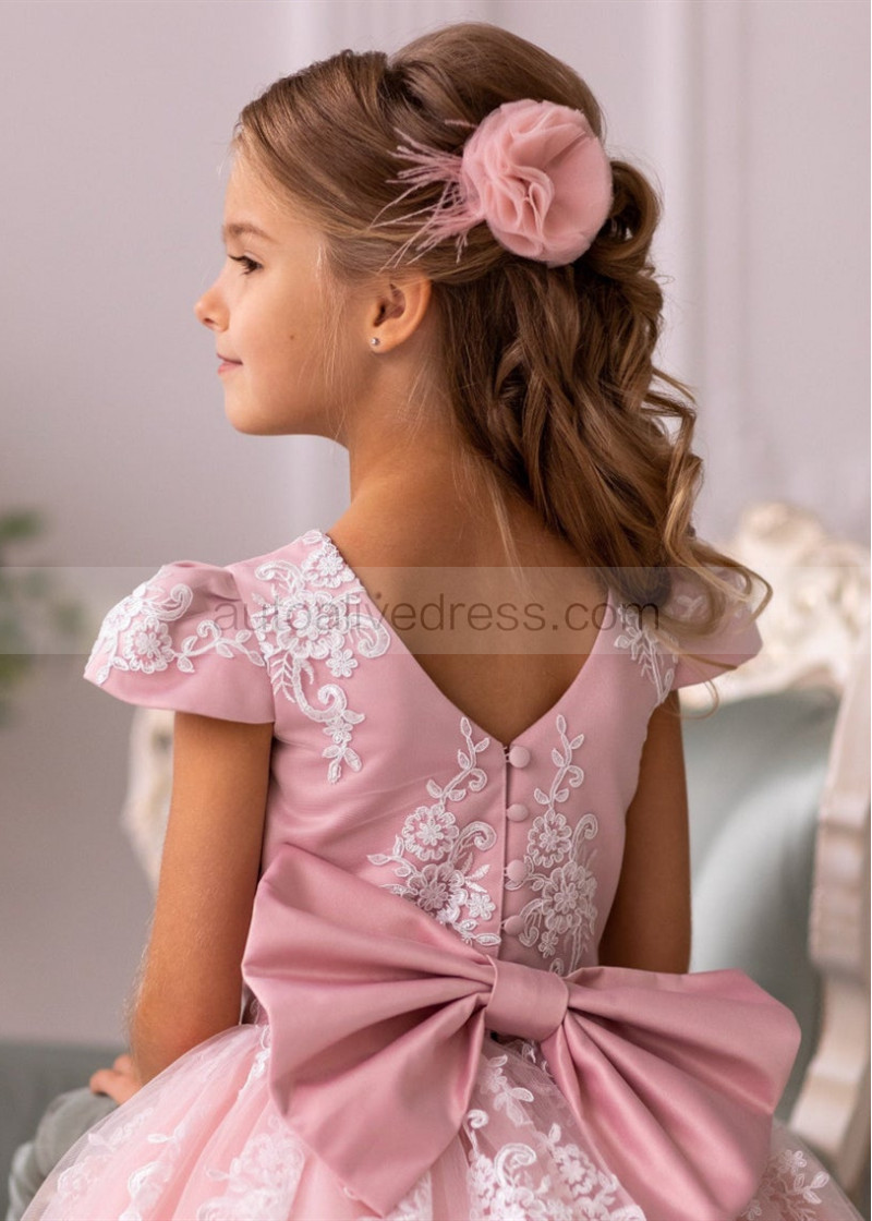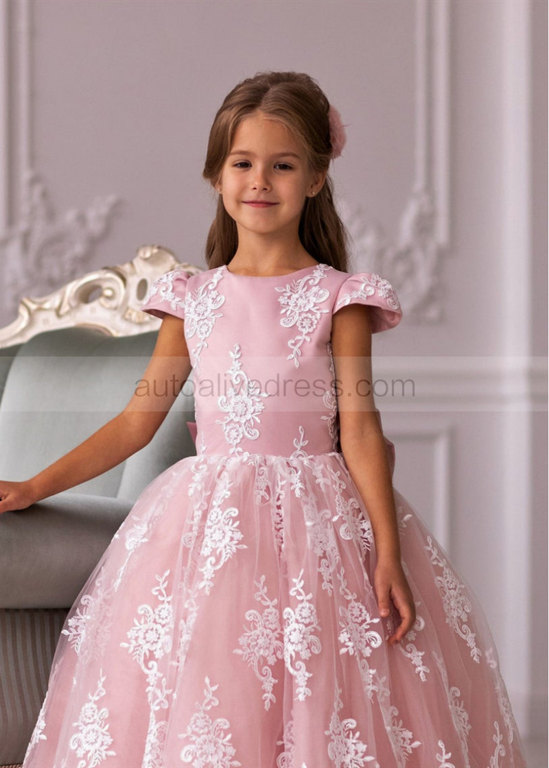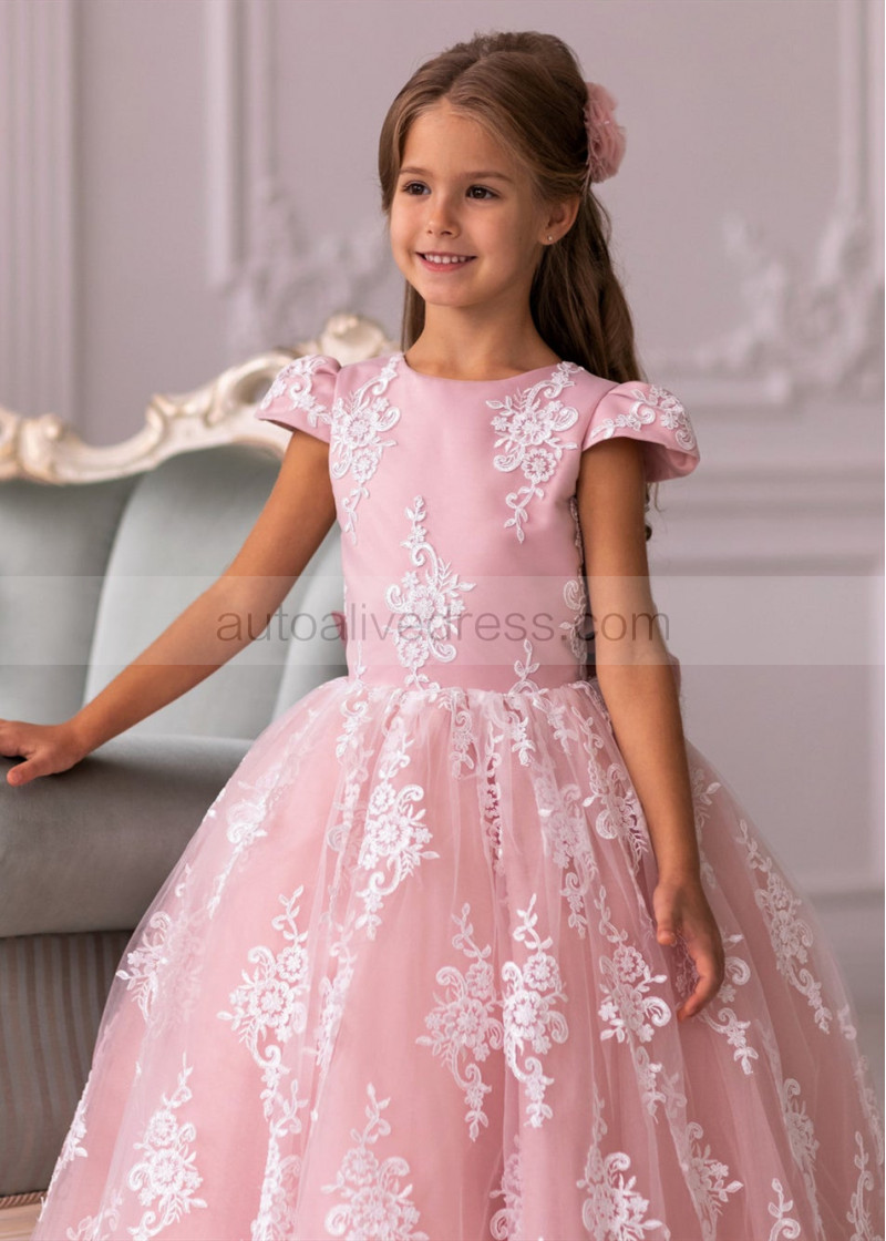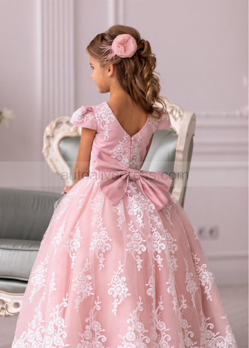 Ivory Lace Blush Pink Tulle V Back Flower Girl Dress