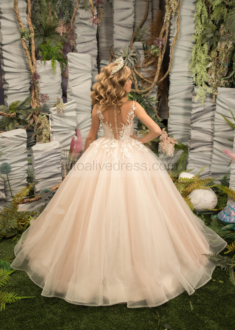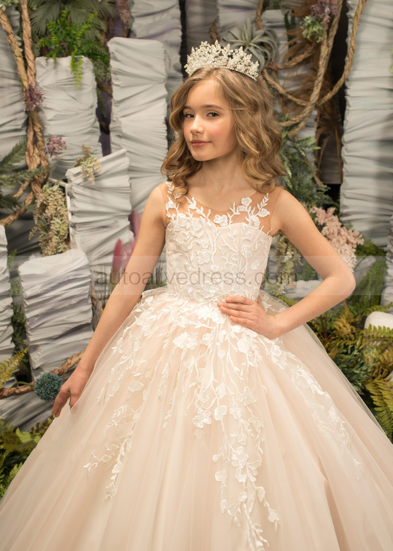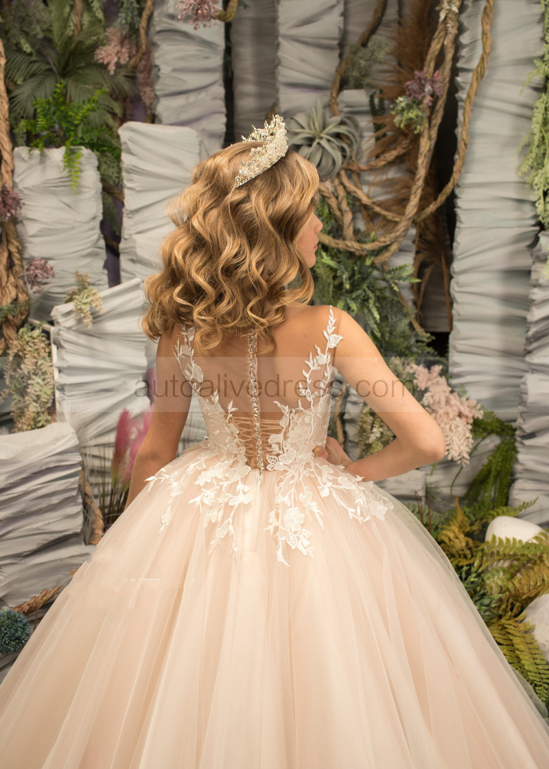 Ivory And Blush Pink Lace Tulle Timeless Flower Girl Dress