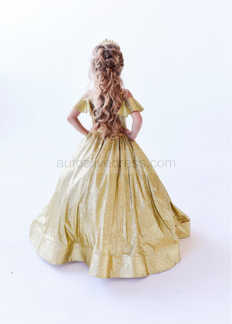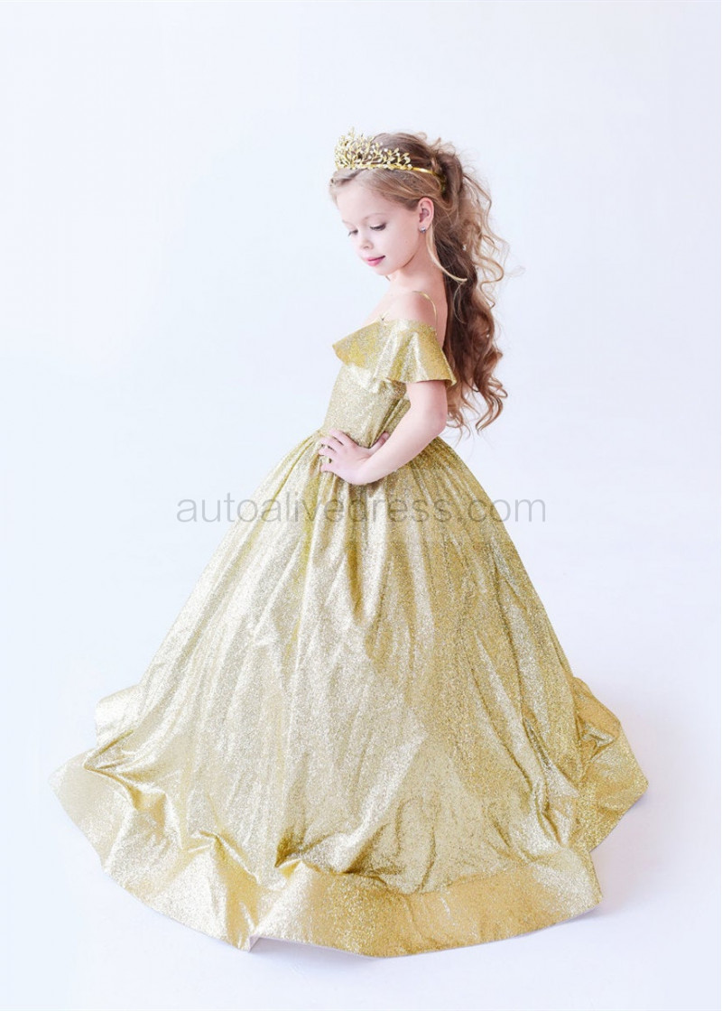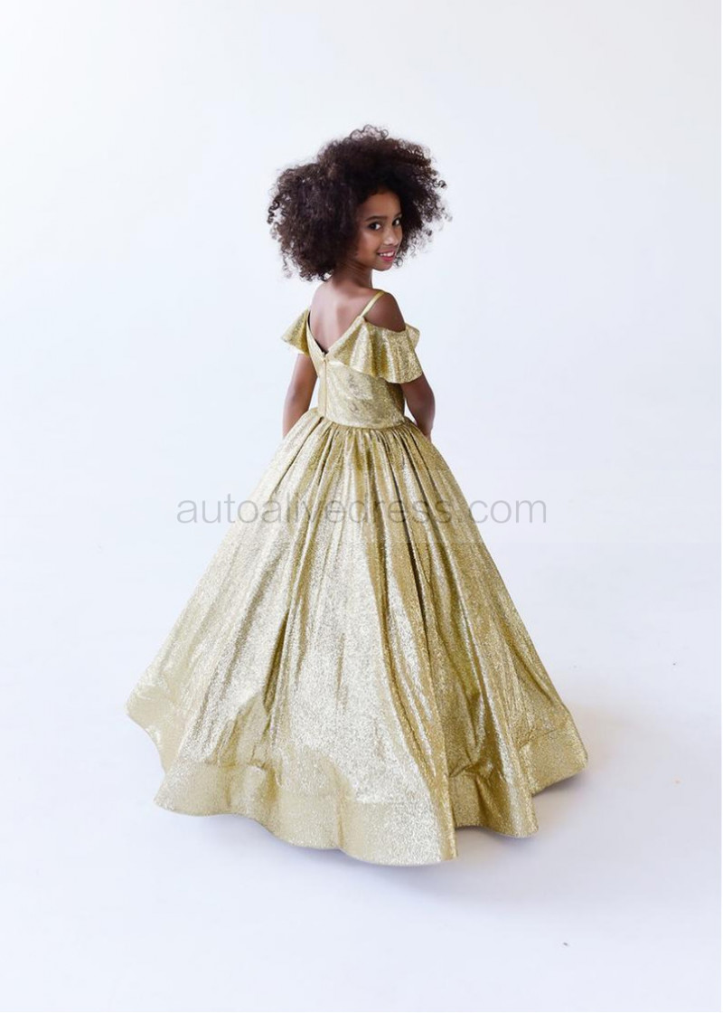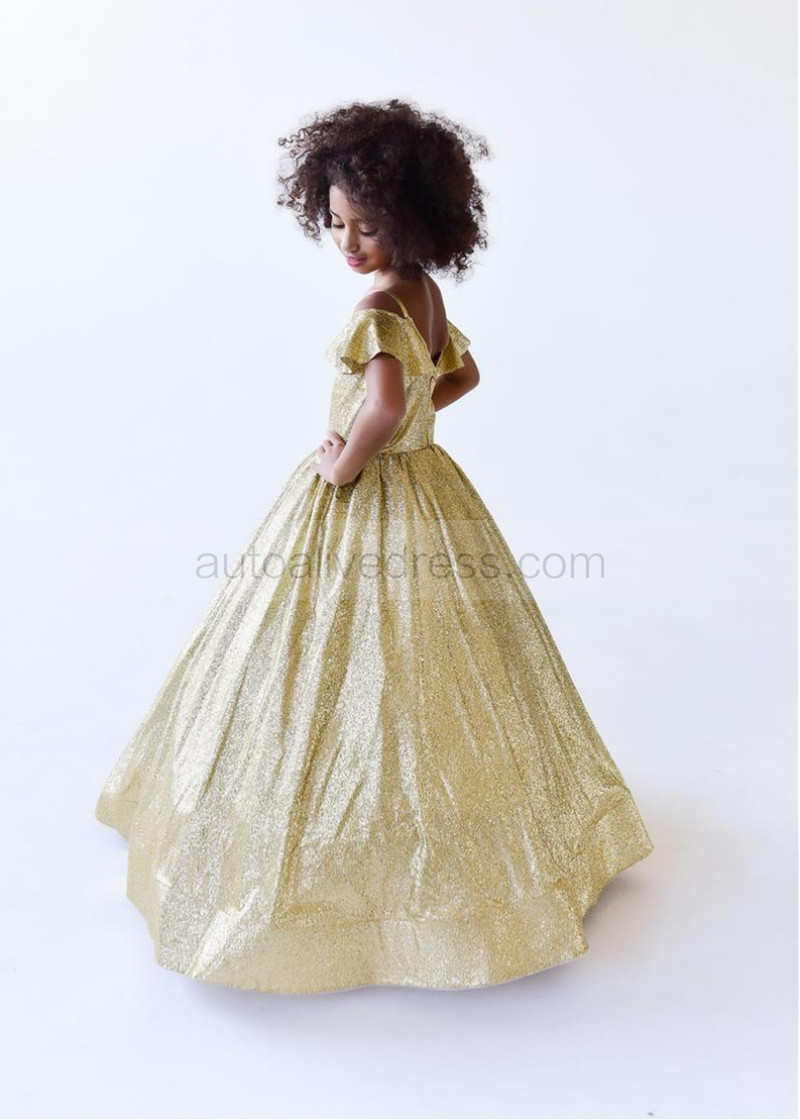 Gold Sequin V Back Floor Length Flower Girl Dress Little Girl Sparkle Dress